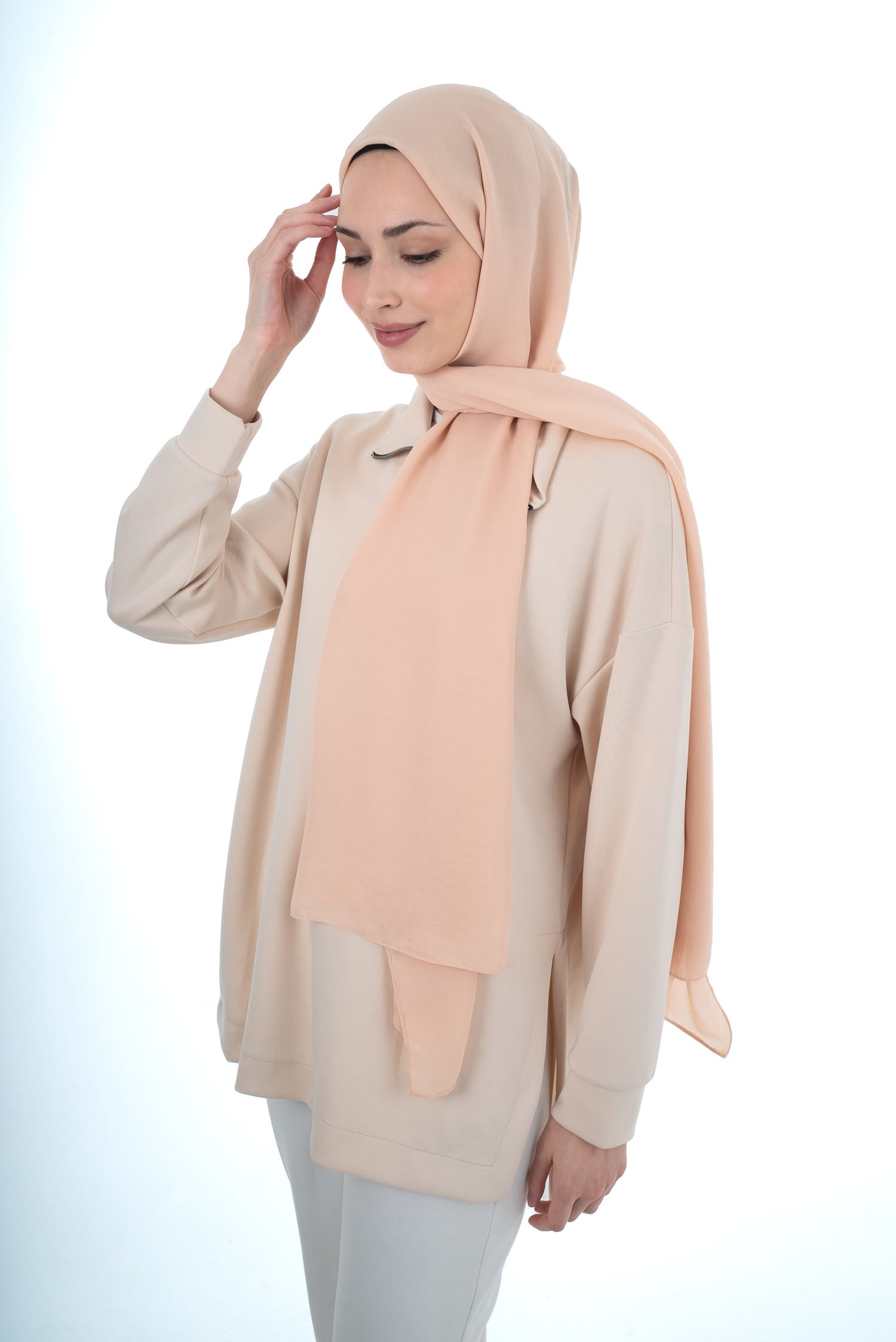 - Hafif ve kırışık/dokulu tuşeye sahiptir.