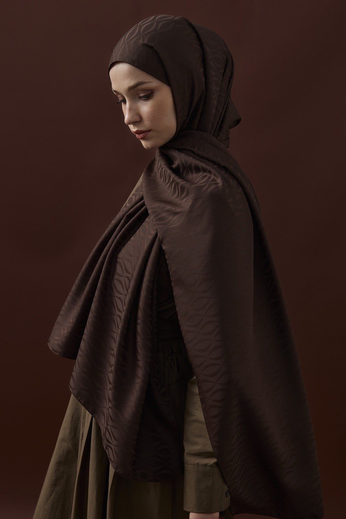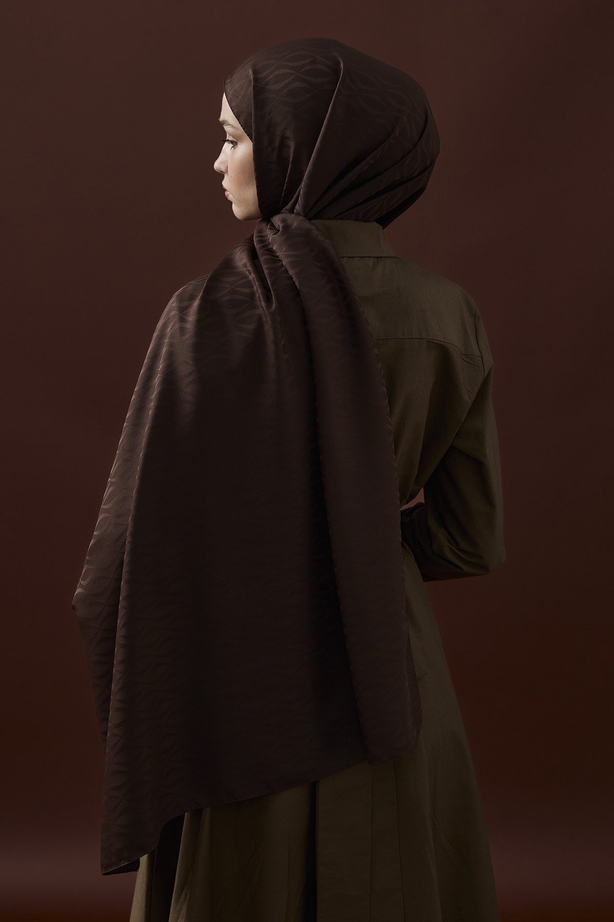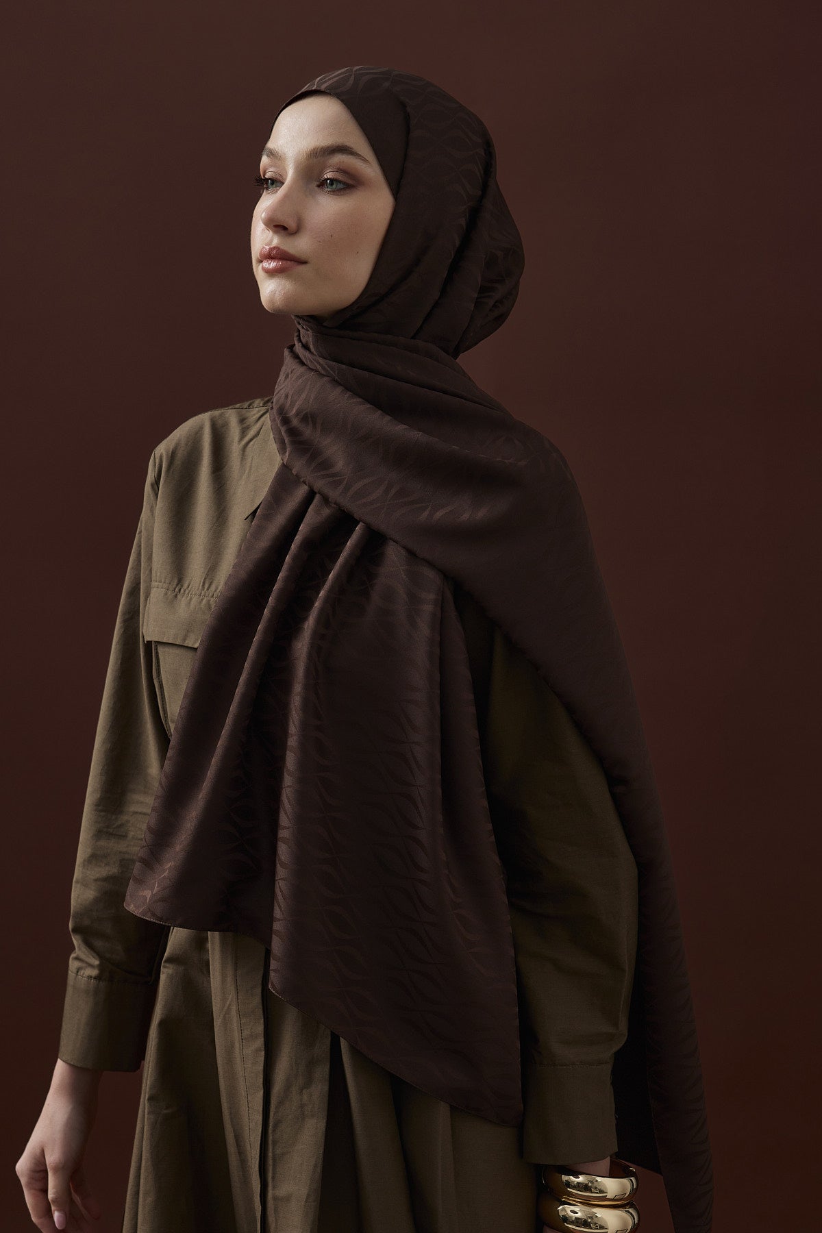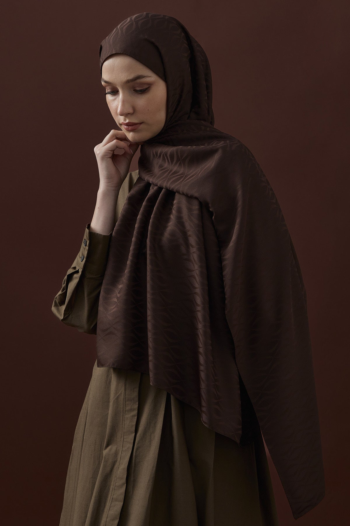 Kapadokya Desen İpeksi Jakar Şal Acı Kahve