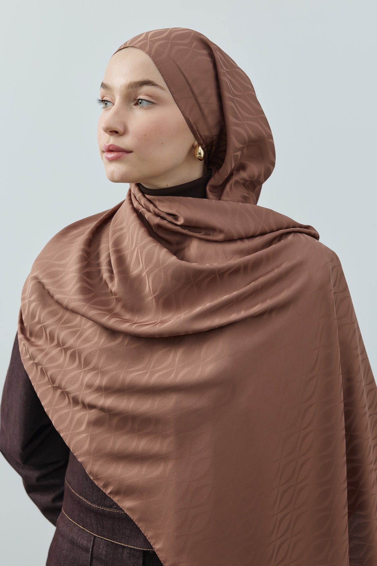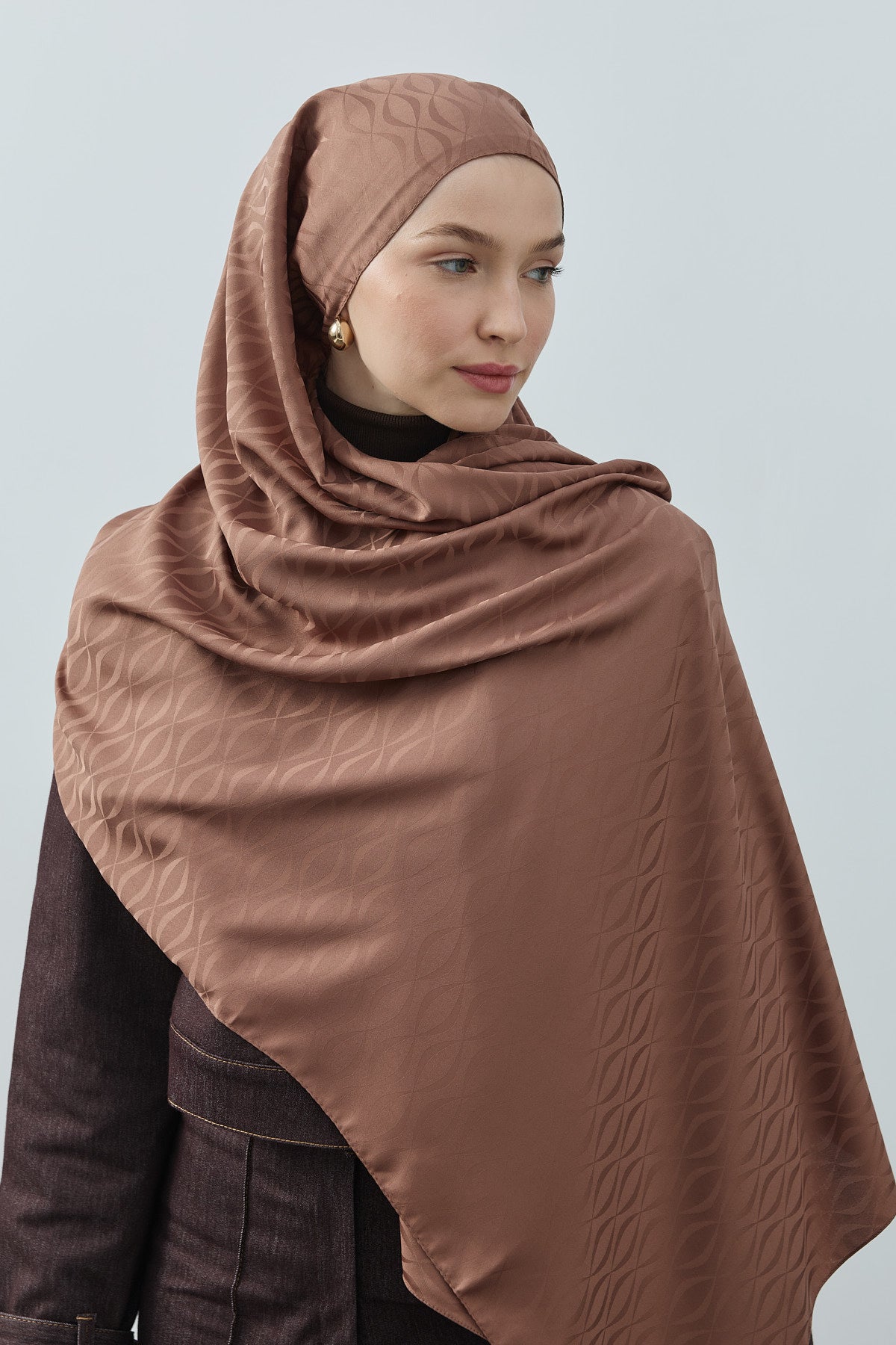 Kapadokya Desen İpeksi Jakar Şal Çikolata Kahve