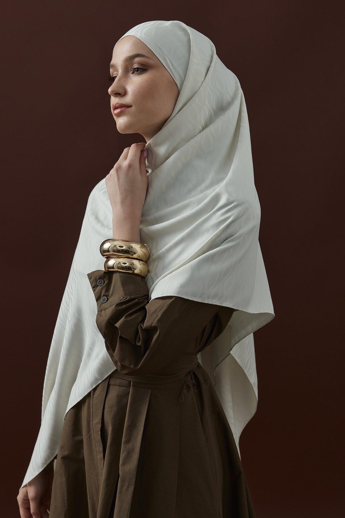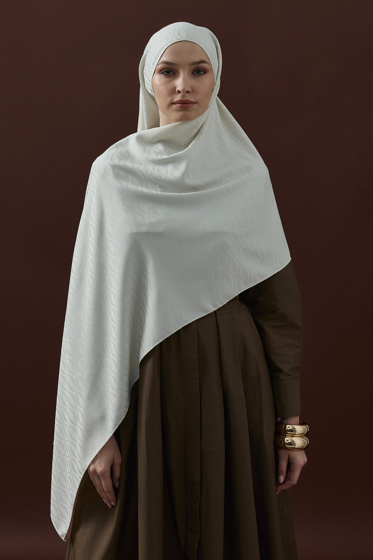 Kapadokya Desen İpeksi Jakar Şal Ekru