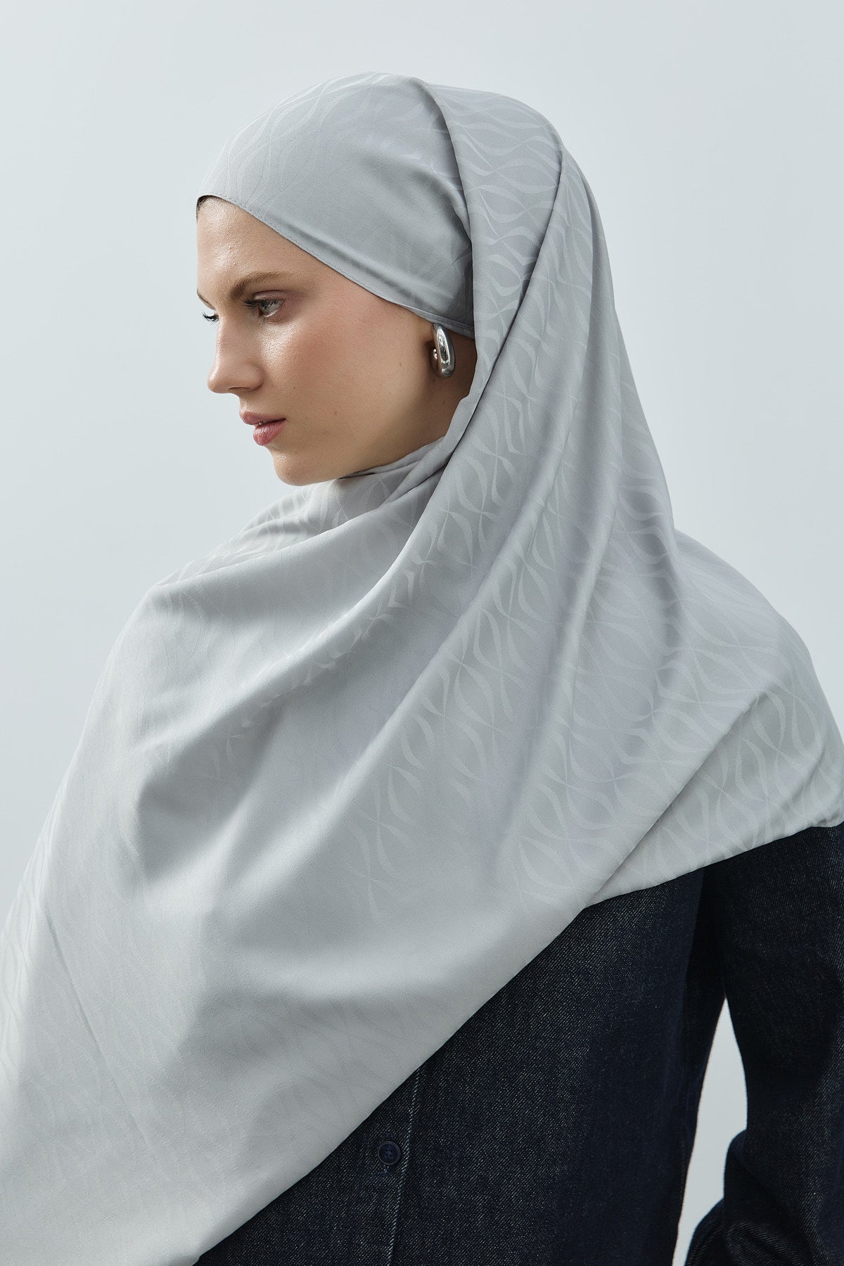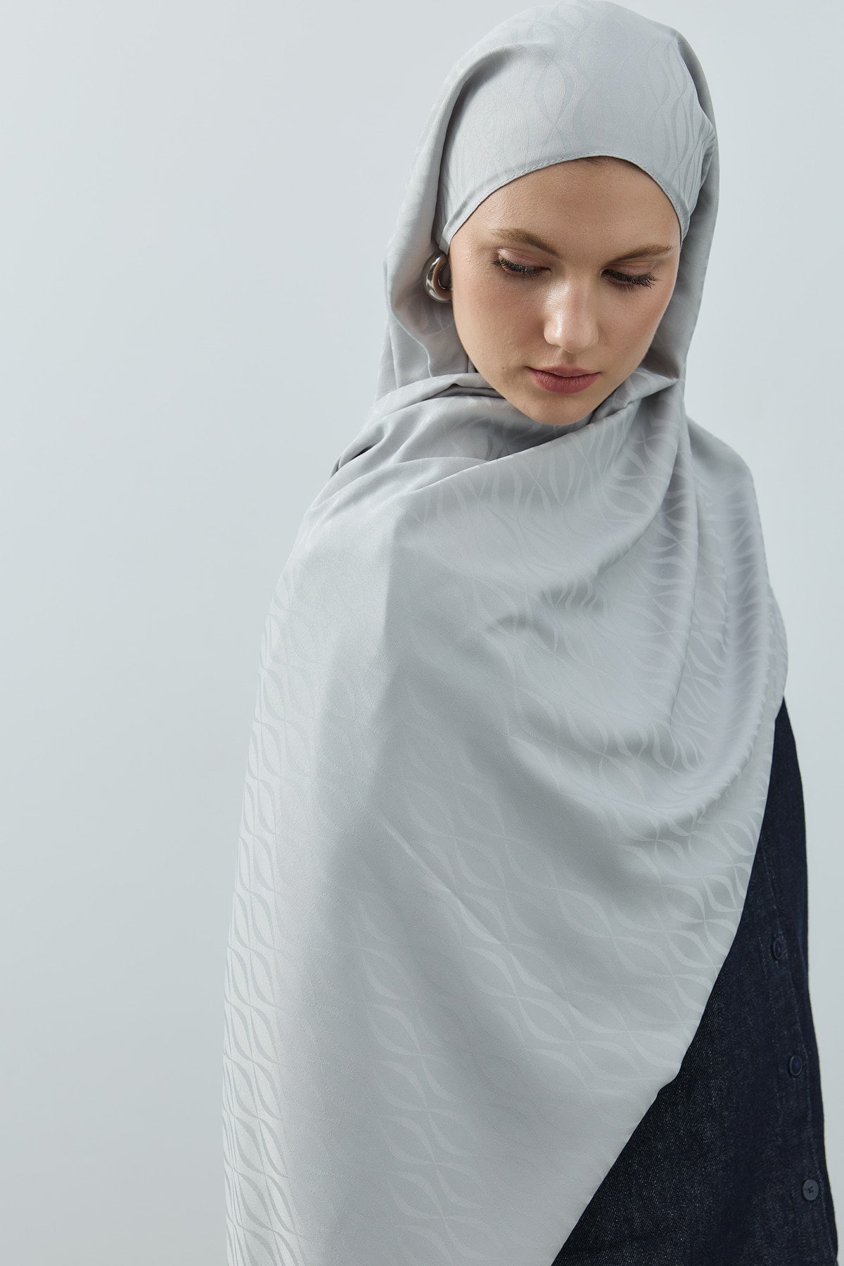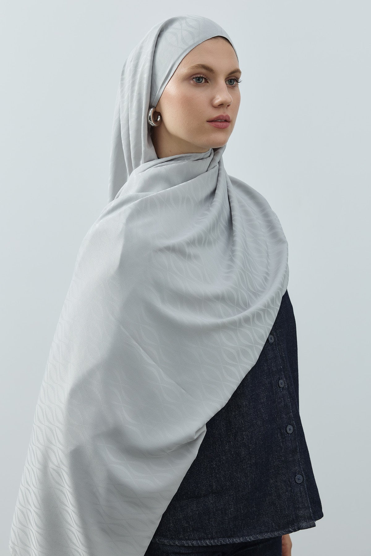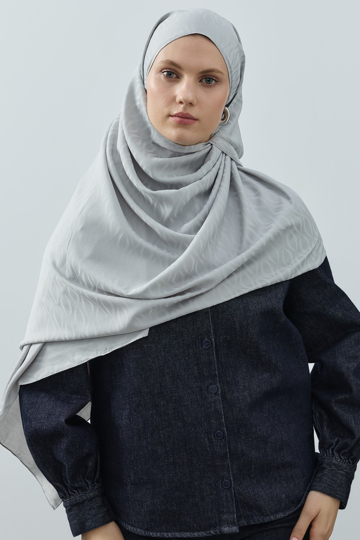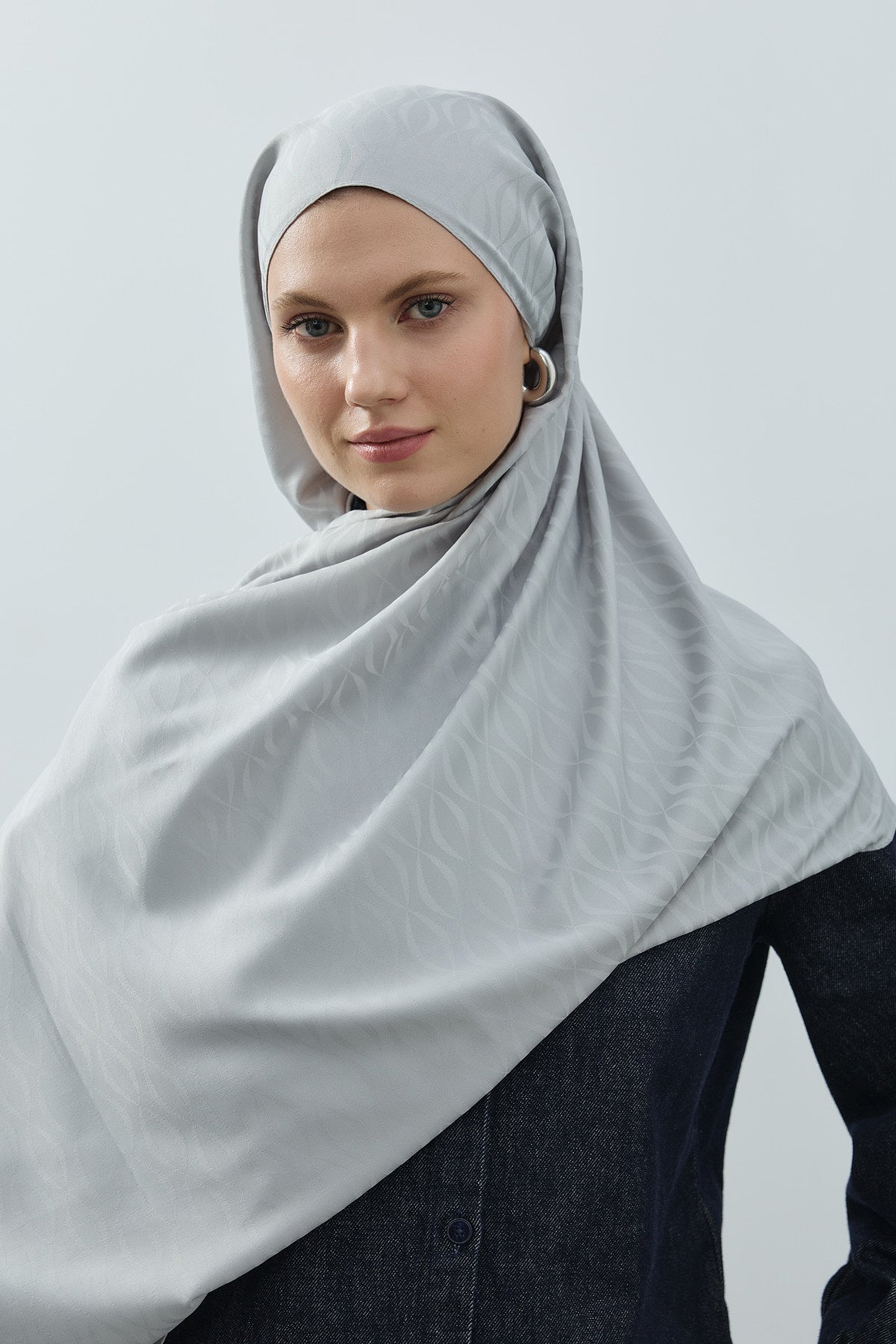 Kapadokya Desen İpeksi Jakar Şal Gümüş Gri