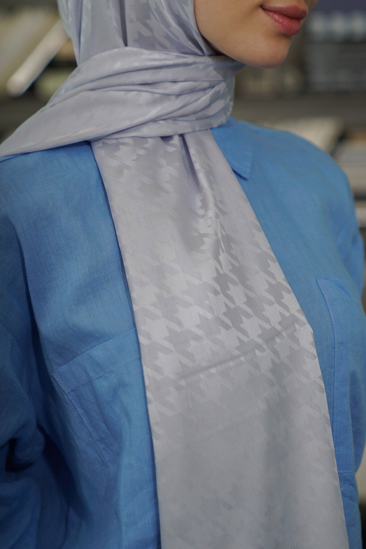 Kazayağı Desen İpeksi Jakar Şal Gümüş Gri