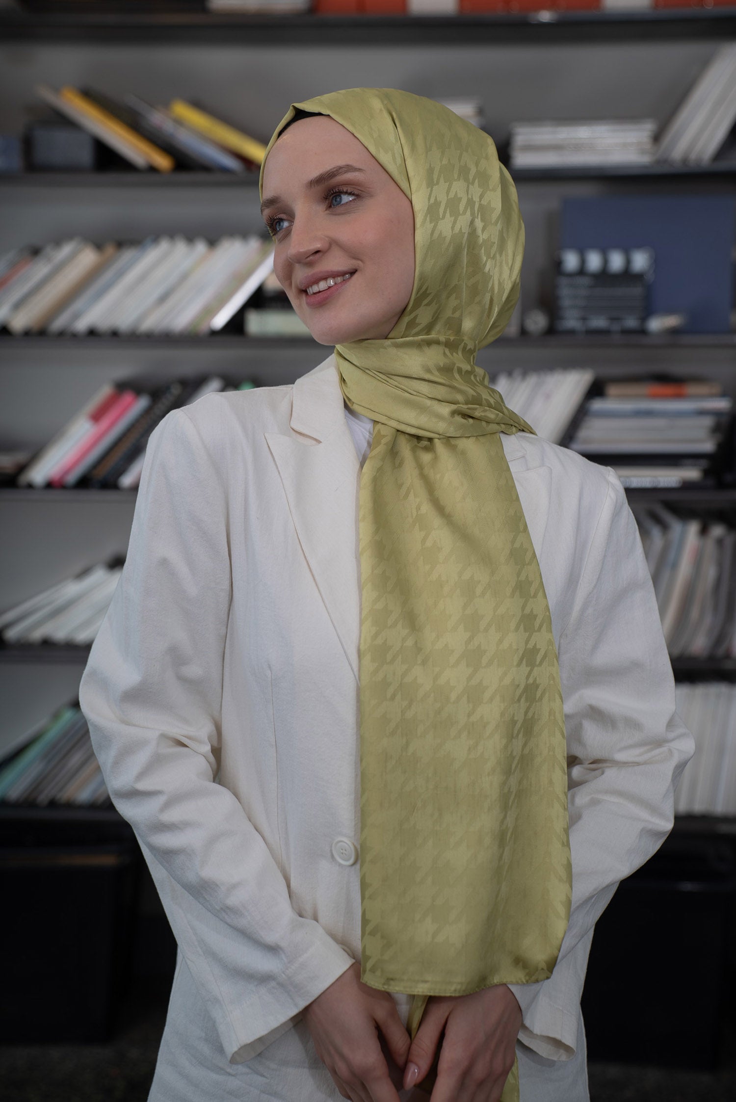 Kazayağı Desen İpeksi Jakar Şal Zeytin Yeşili