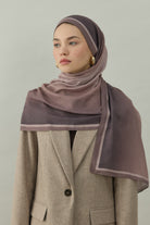 Bu görünümde Kras Aura Degrade Desen Şal Vizon, hem ütü gerektirmeyen pratik dokusuyla hem de yumuşak vizon degrade tonlarıyla profesyonel, elegan ve şehirli bir tesettür şal kombini sunar.