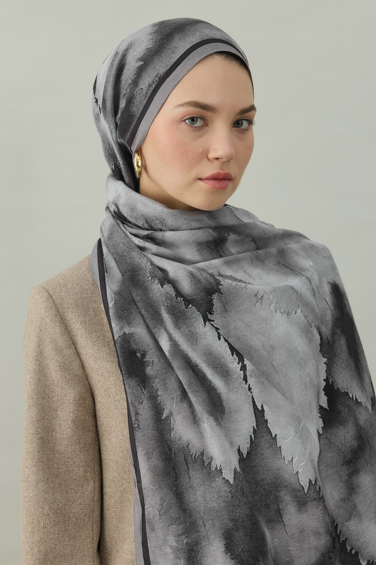 Kraş Ebruli Desen Şal Gri