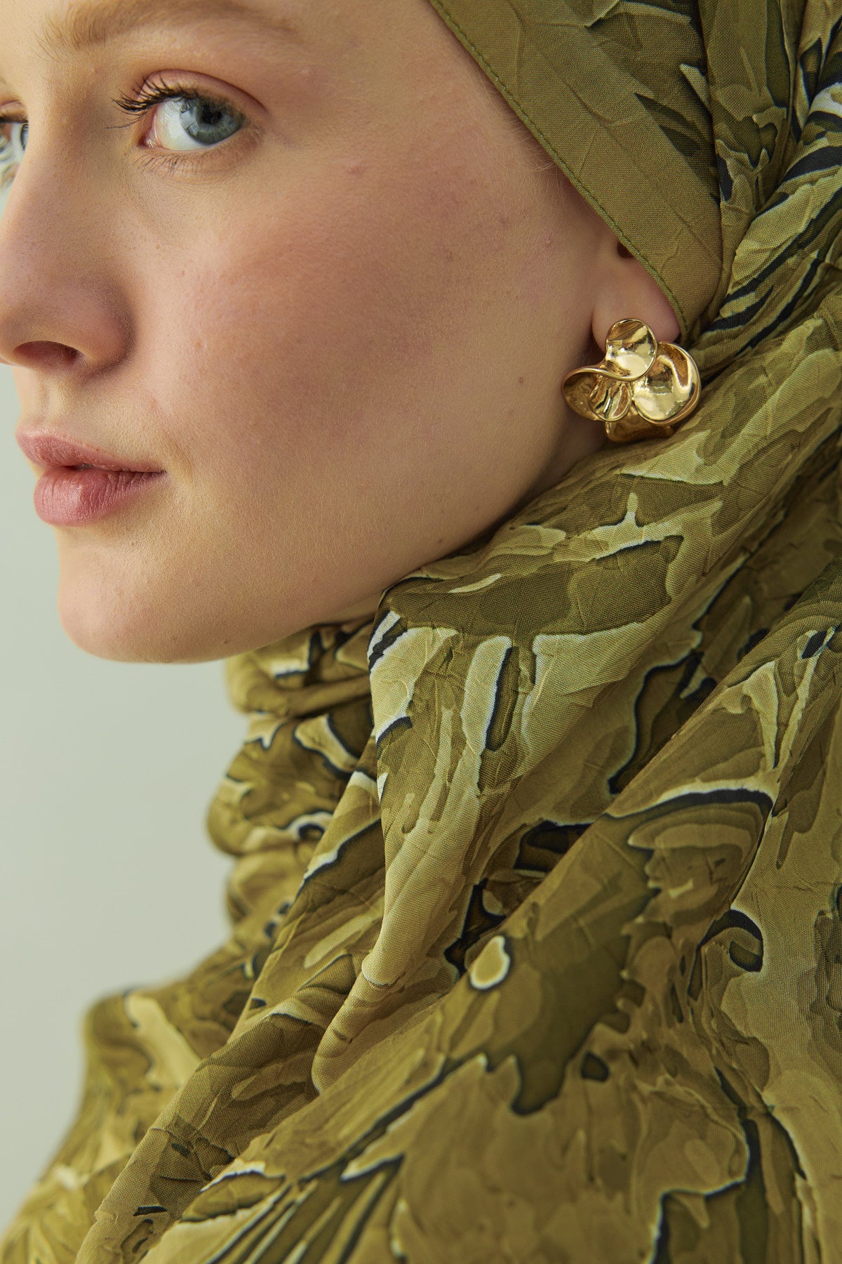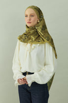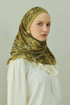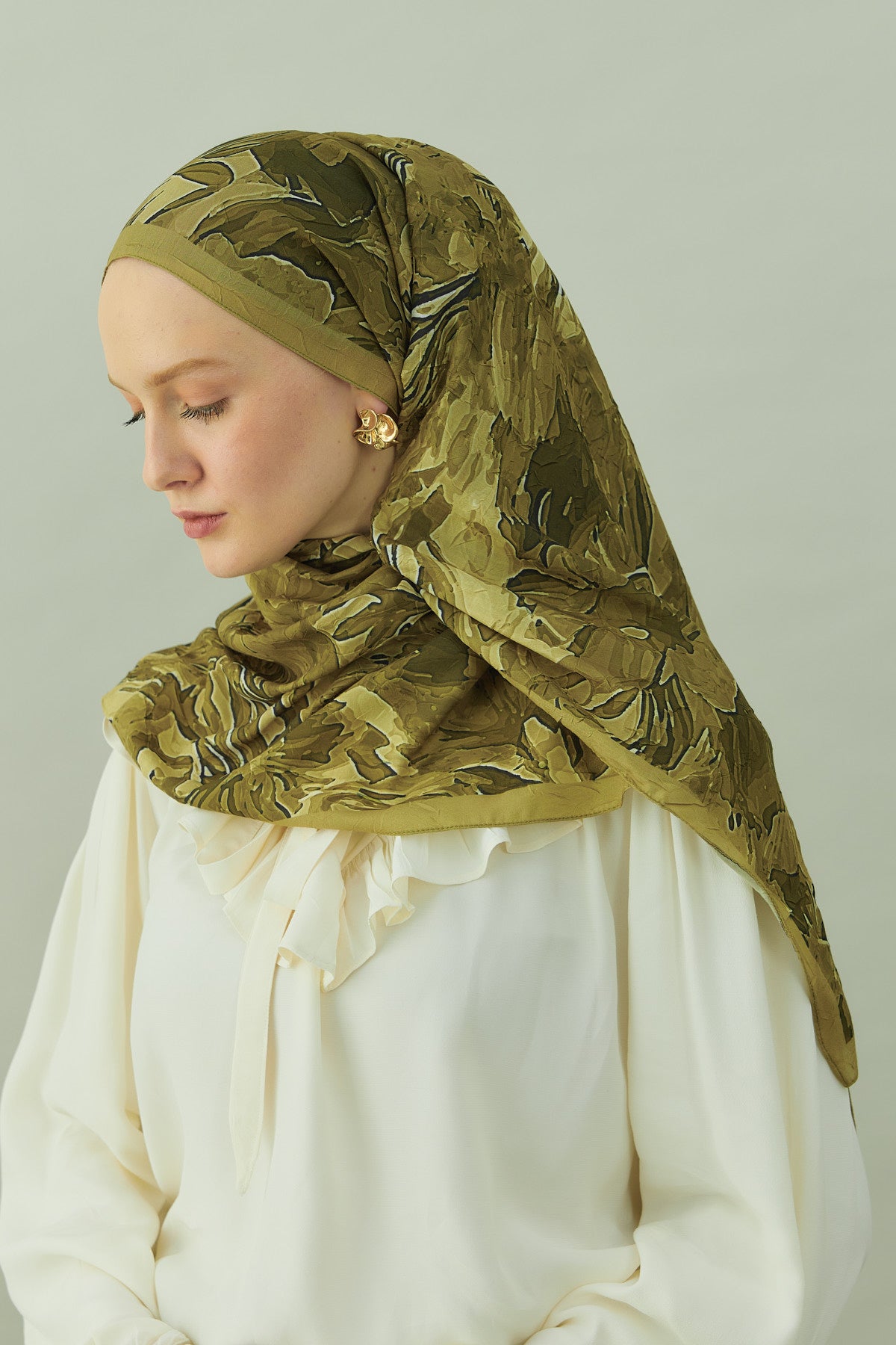 Kraş Opak Flowers Desen Şal Asker Yeşili