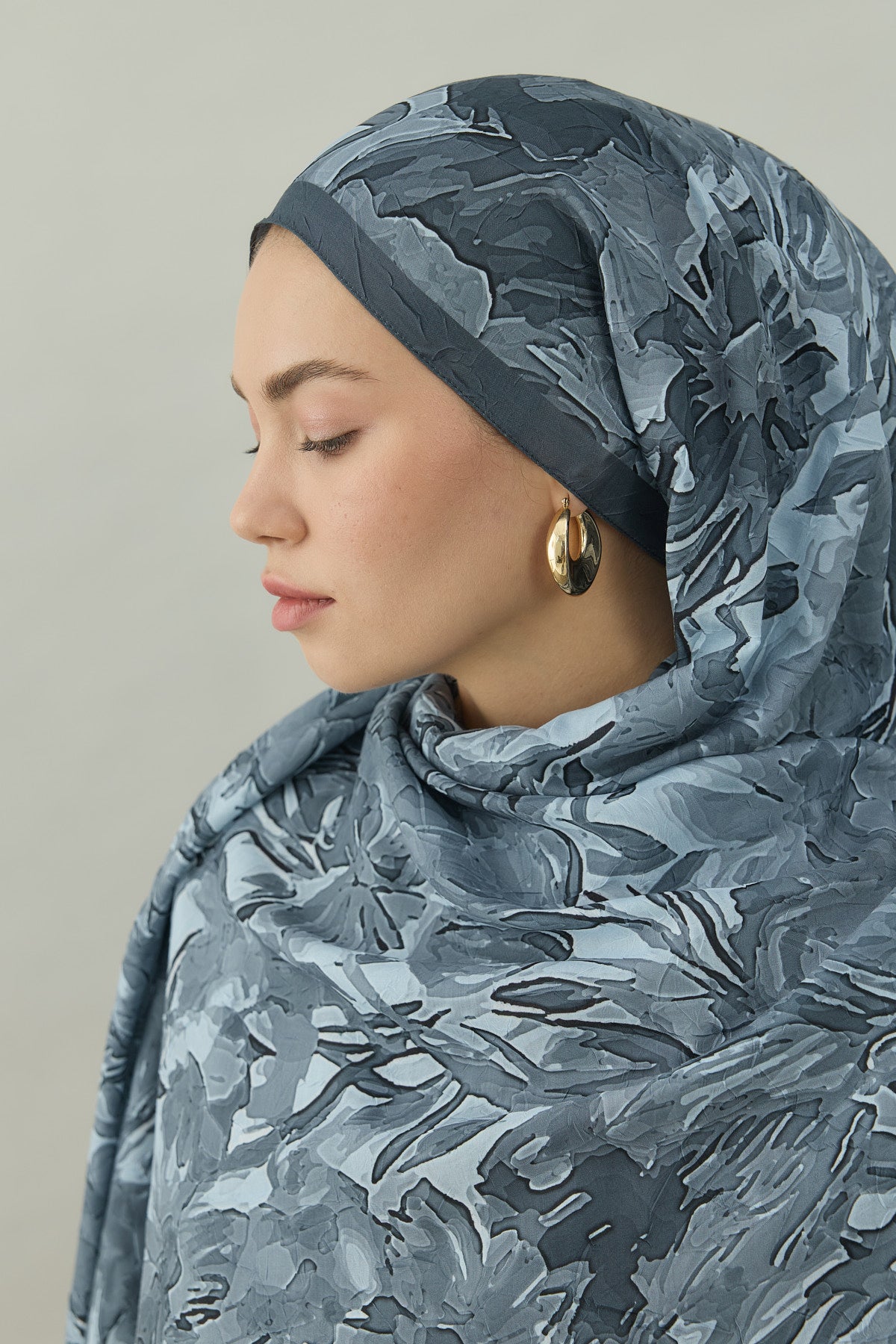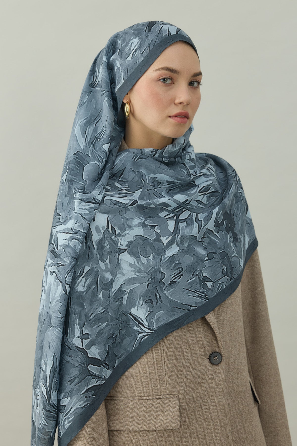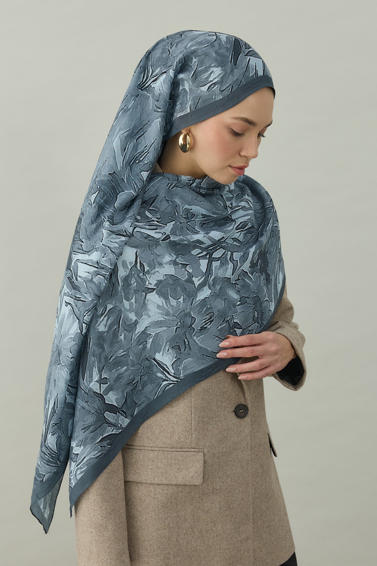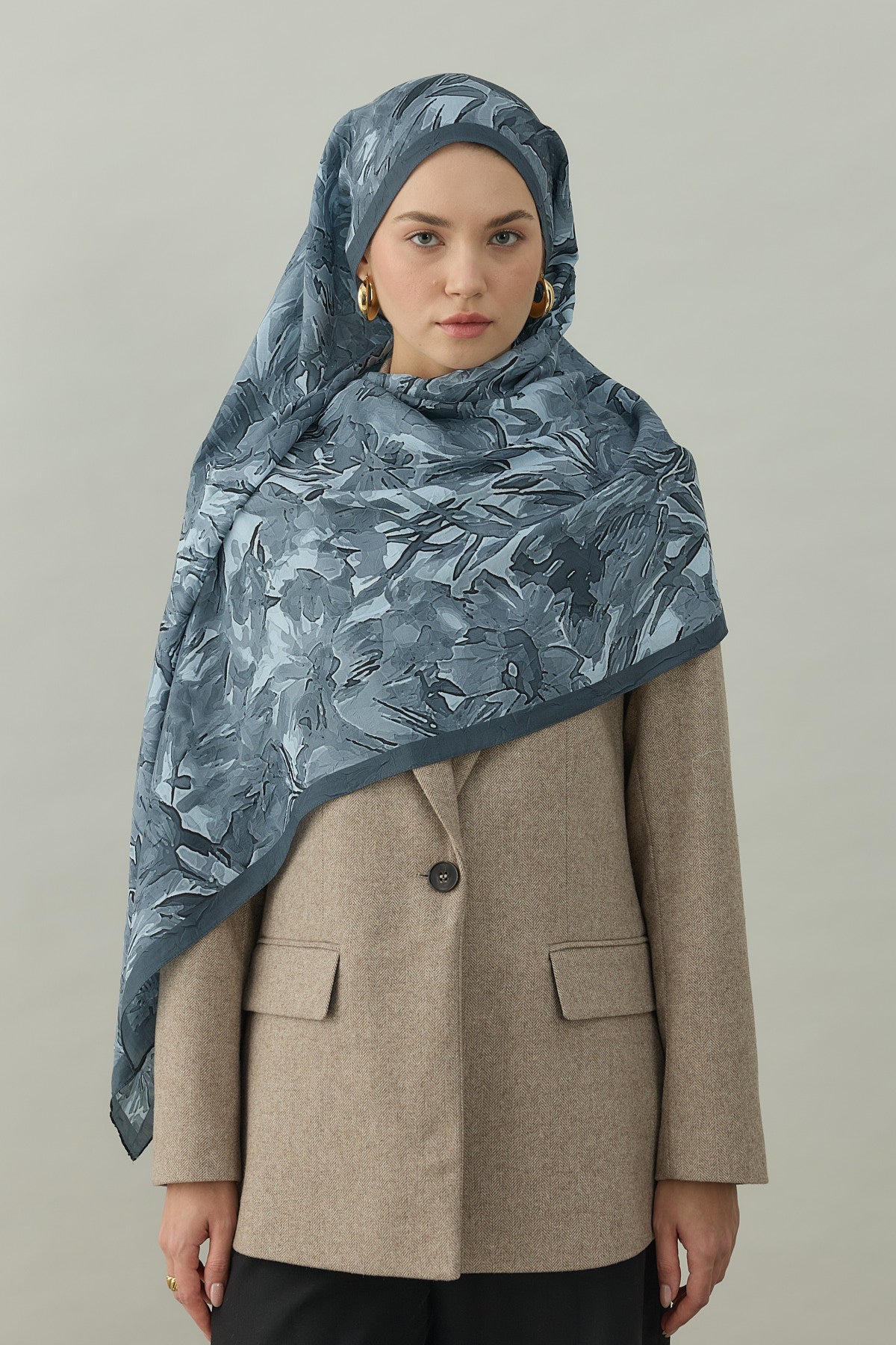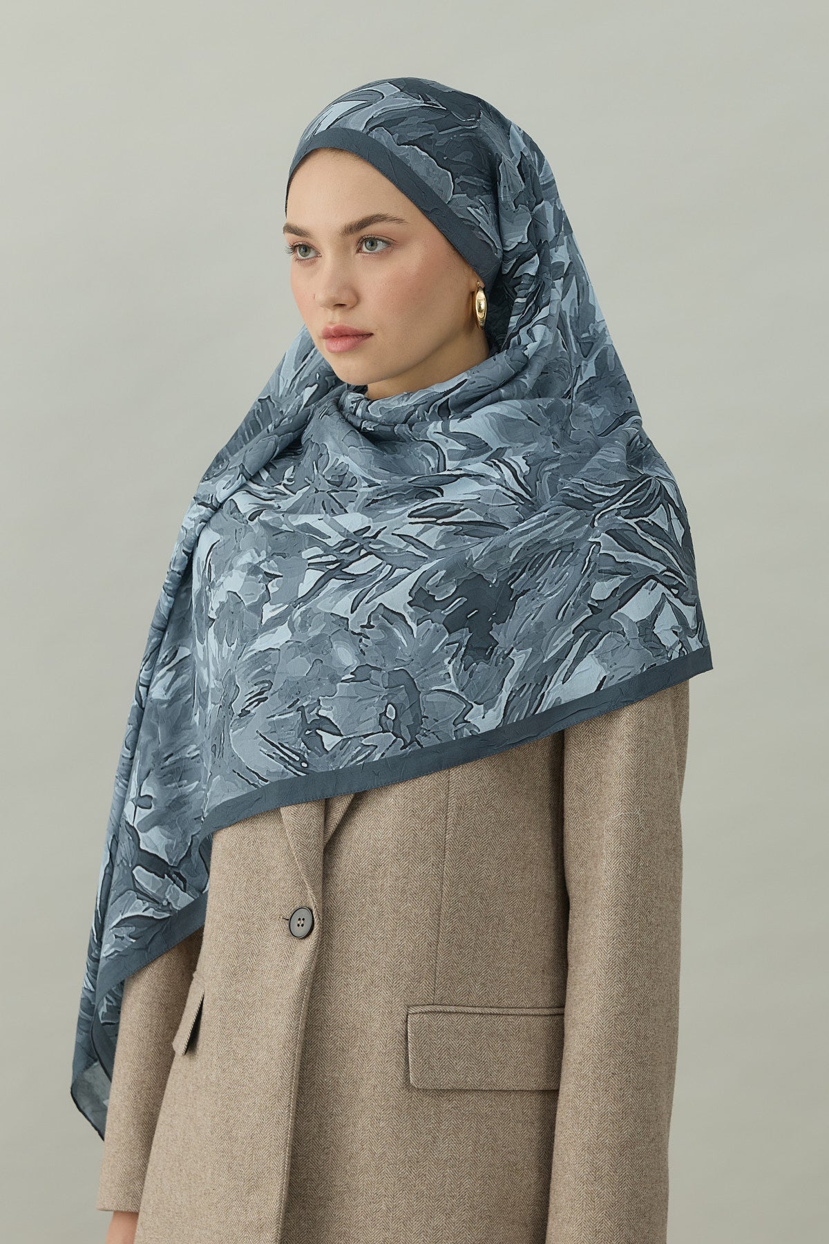 Kraş Opak Flowers Desen Şal Gri