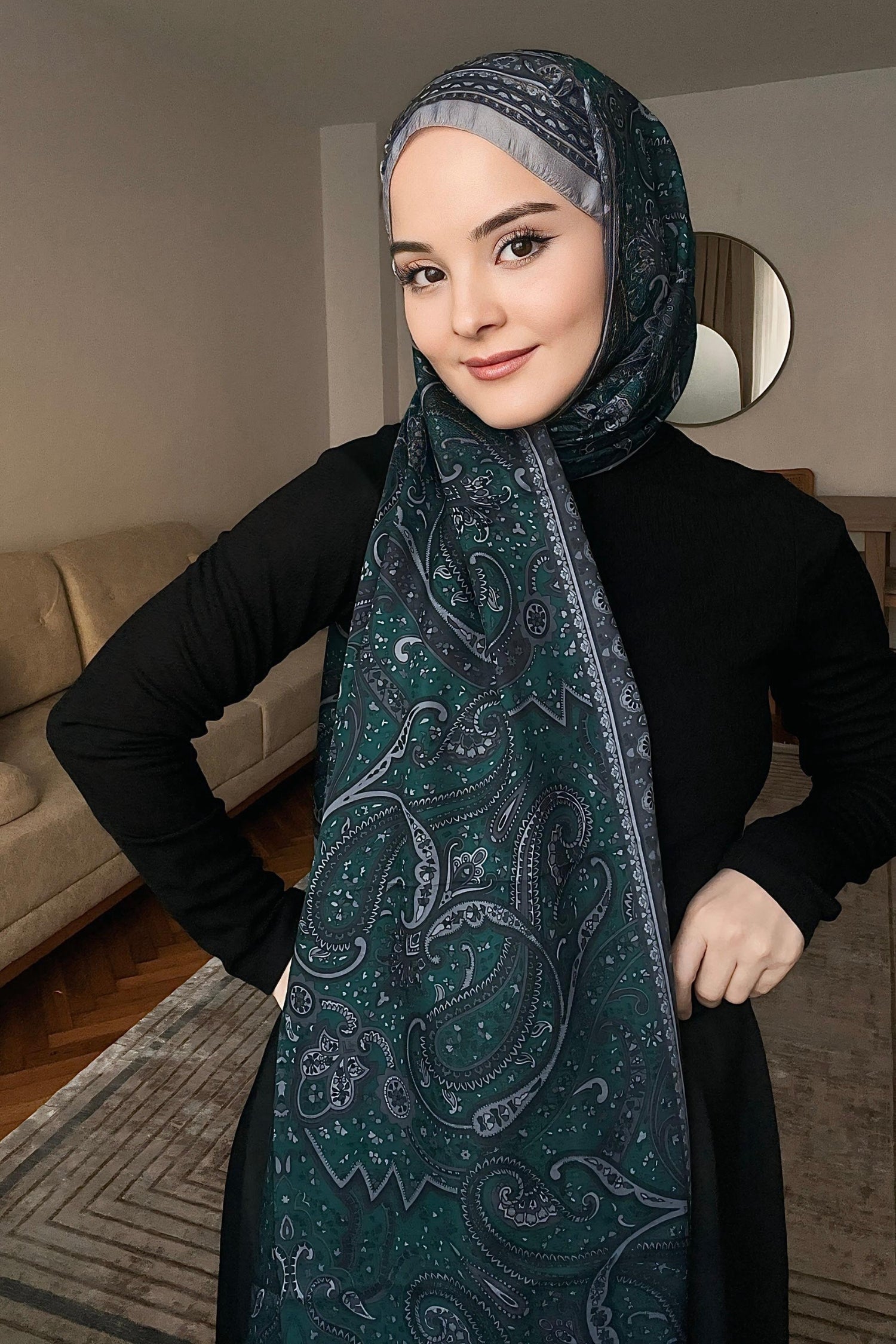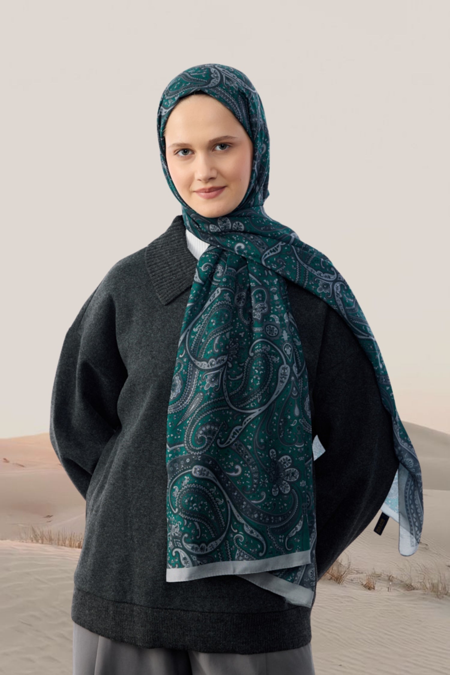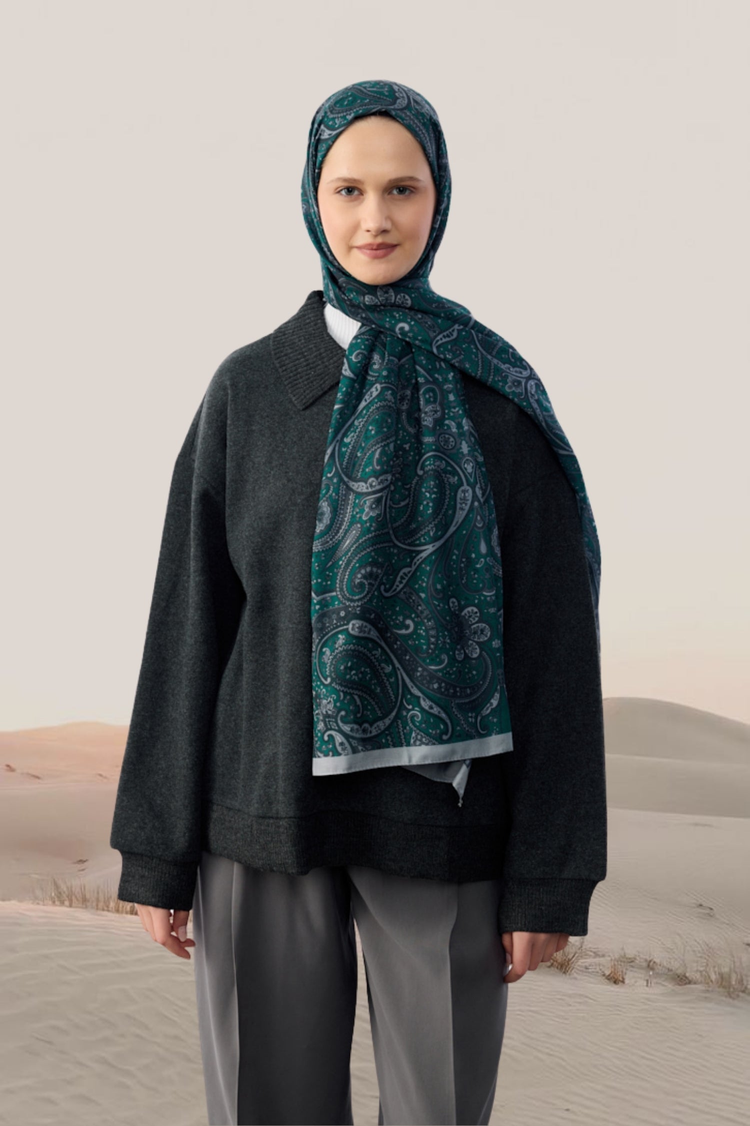 Marrakech Desen Şal Gümüş Gri