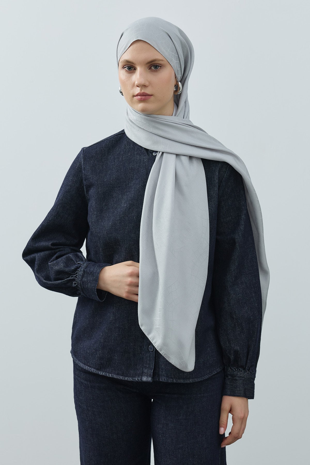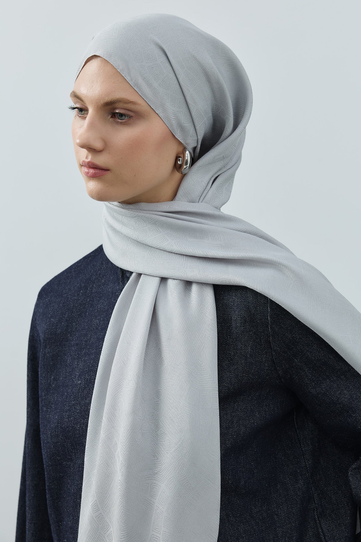 Nihavend Monogram Desen Şal Gümüş Gri