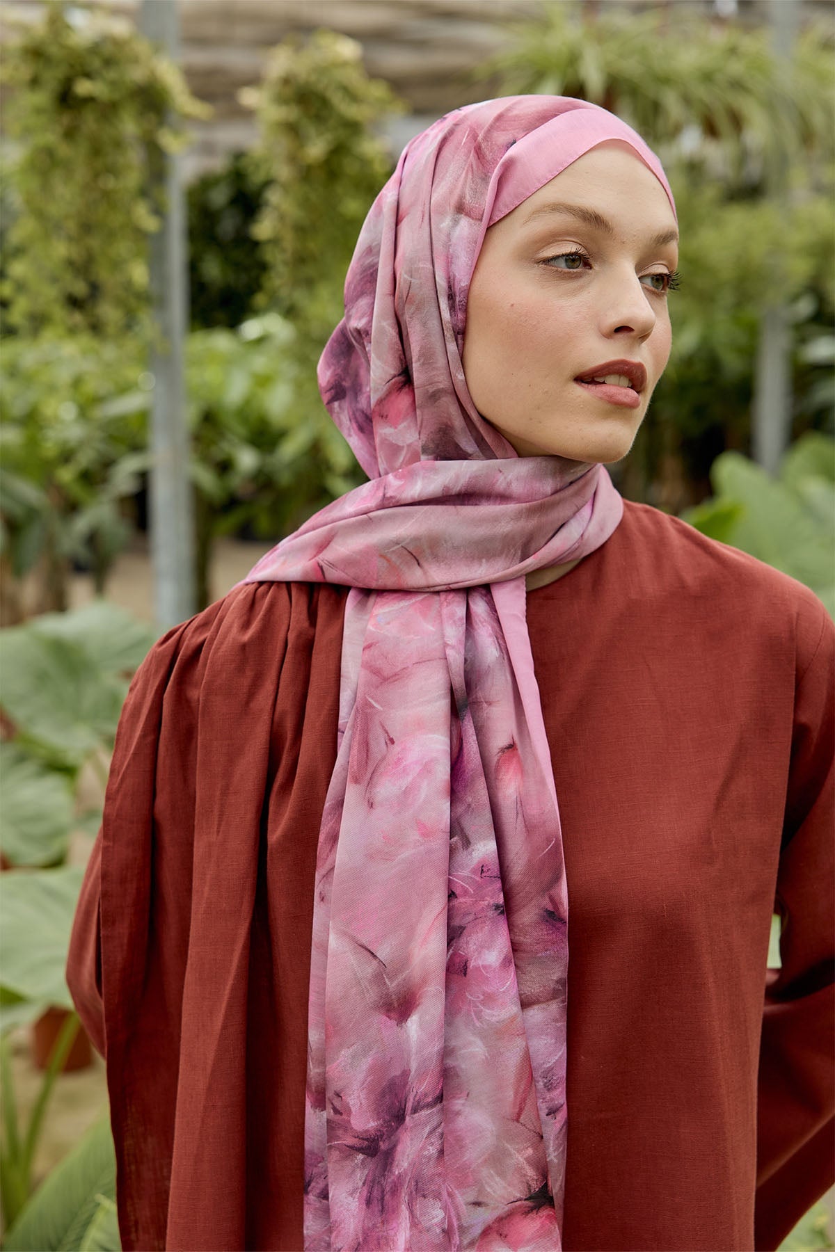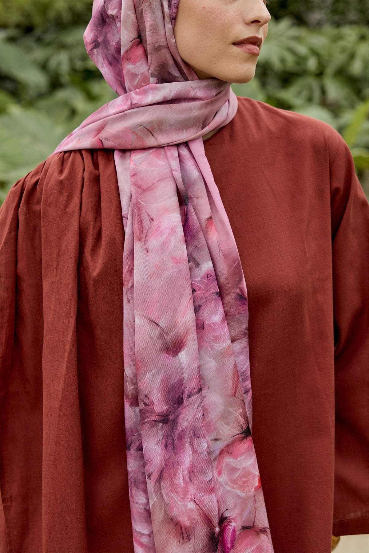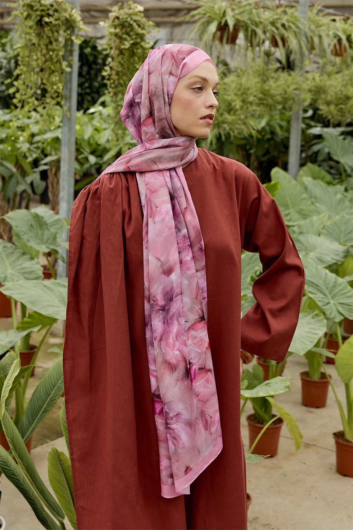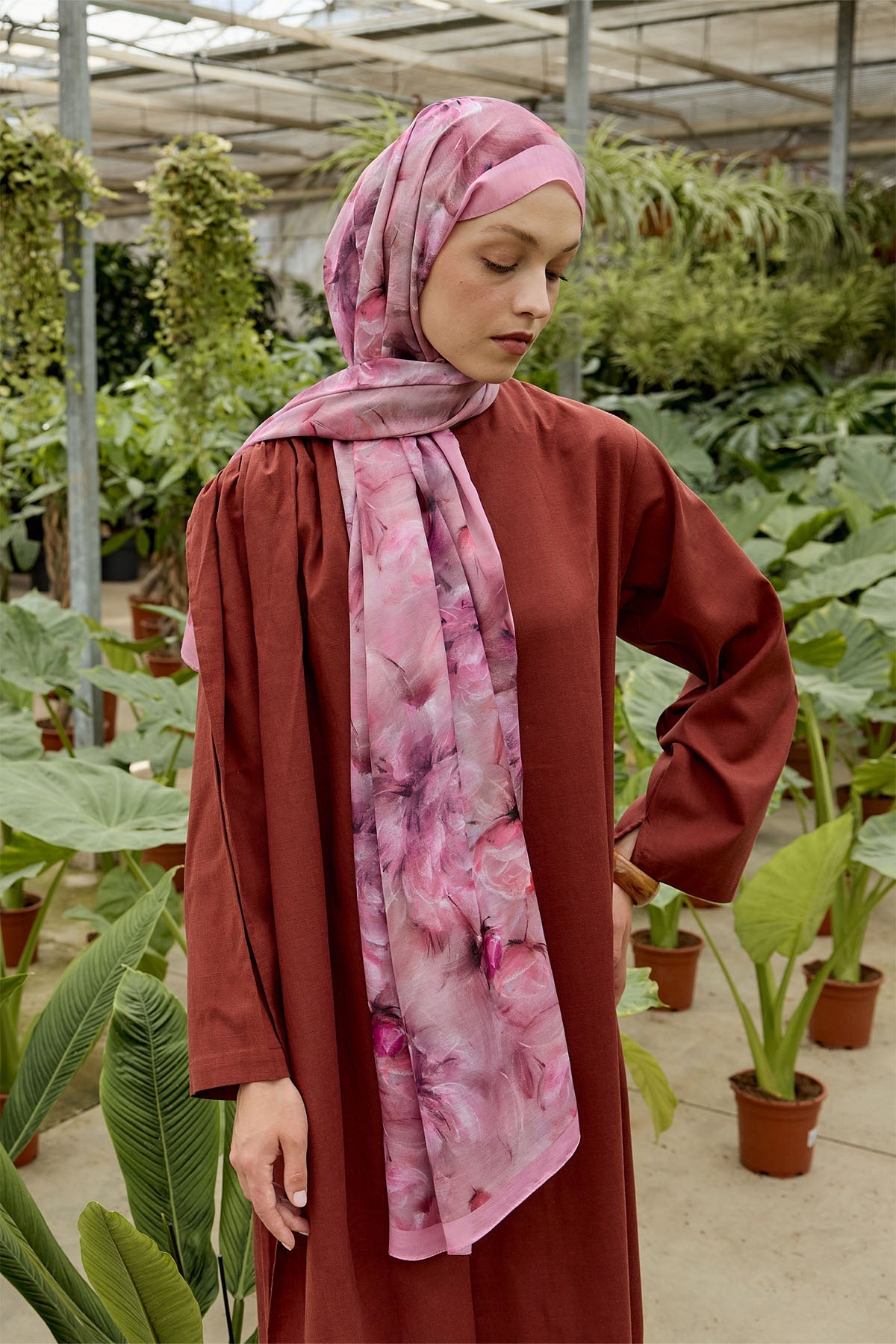Seasons Of Garden Desen Şal – Pembe, sadece bir şal değil; baharın renklerini, garden desenlerin inceliğini ve pamuk konforunu bir arada sunan bir stil ifadesidir.