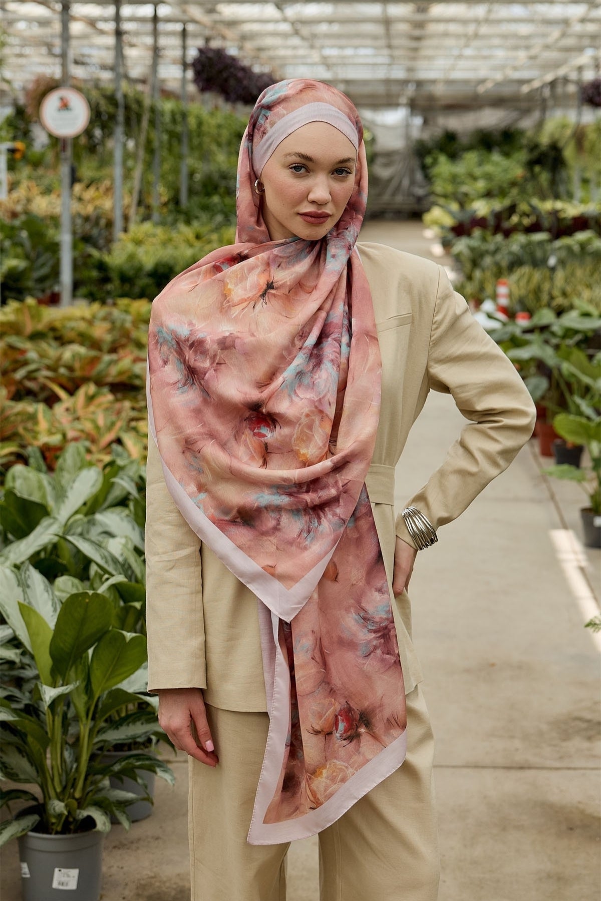 Seasons Of Garden Desen Şal – Pudra, baharın yumuşak tonlarını ve çiçek desenlerini zarif bir pudra rengiyle buluşturan romantik bir tasarımdır. Bu renk, teninize sıcaklık katarken kombinlerinize feminen bir dokunuş ekler.