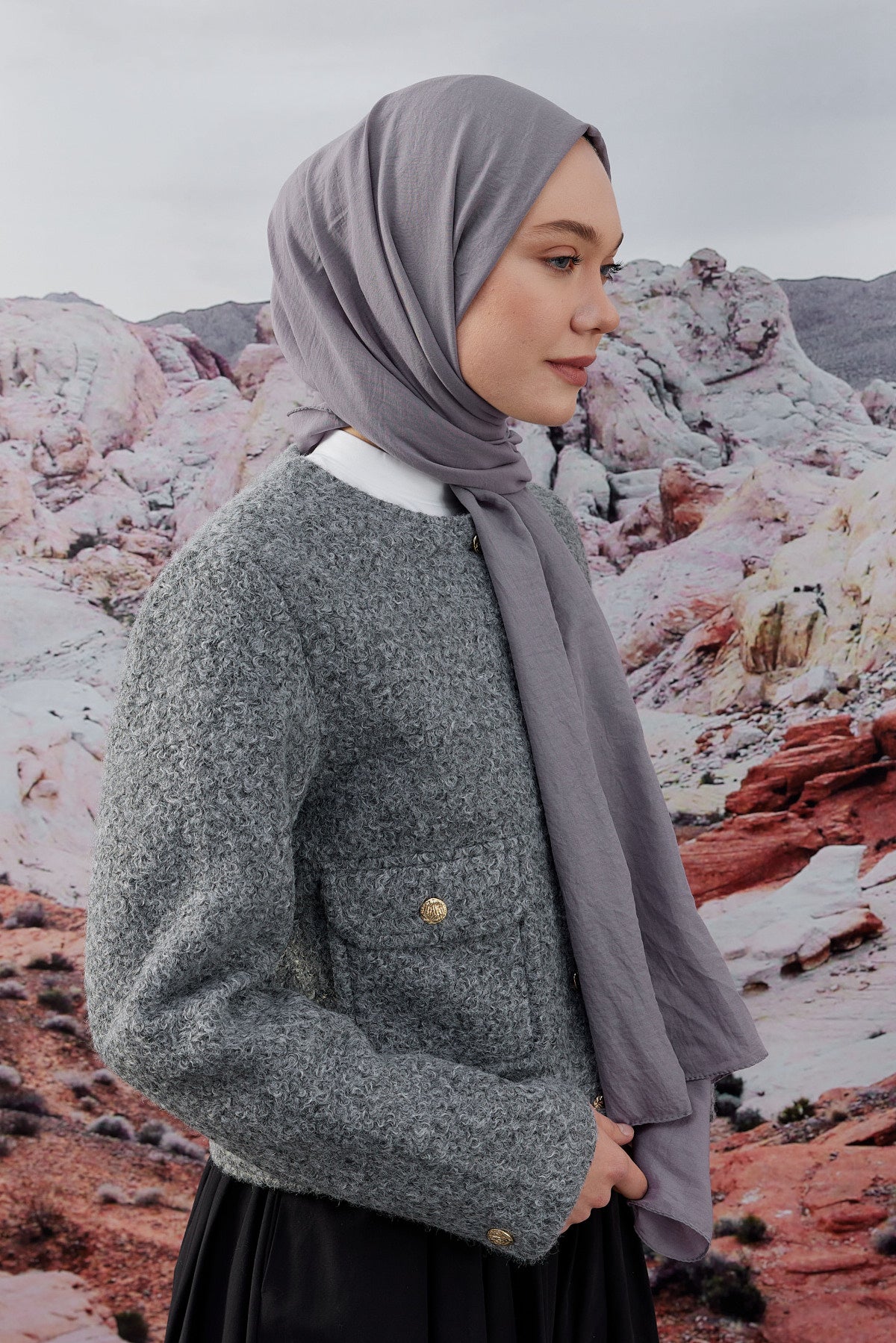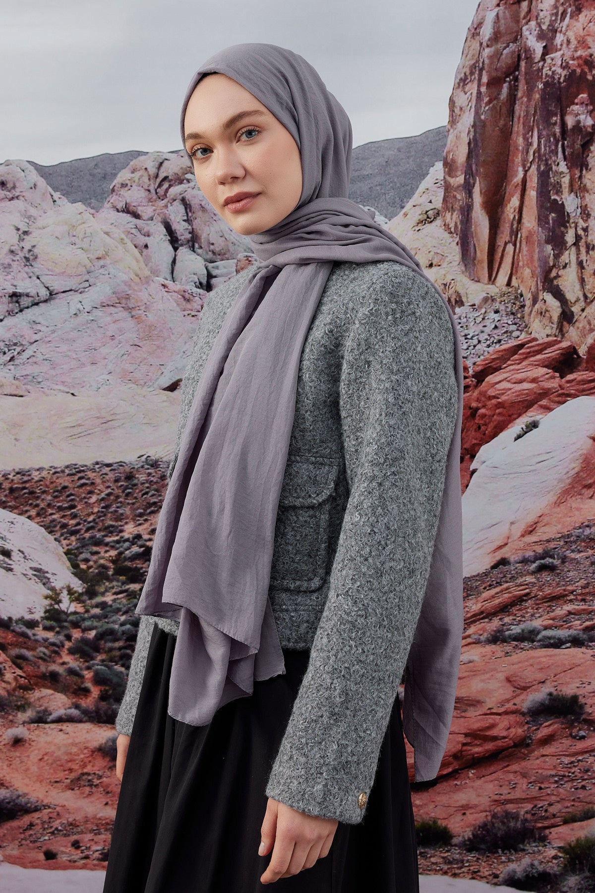 Soft Pamuk Şal Koyu Gri