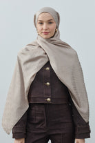 %50 floş %50 viskon (doğal elyaf) içeriği sayesinde yumuşak tutuşlu, nefes alabilen ve konforlu bir dokuya sahiptir; cildi rahatsız etmeden, kayma ve terletme yapmadan gün boyu rahat kullanım sağlar. 70x190 cm ölçüleri, tesettür kullanımında ideal örtücülük sunarken boyunda aksesuar amaçlı kullanımda da dengeli ve şık bir silüet oluşturur. Dört kenarı İtalyan dikişli olan bu model, ince işçiliği ve temiz bitişiyle daha özenli ve kaliteli bir görünüm kazandırır. Dört mevsim kullanıma uygun, pratik ve ütü gerektirmeyen yapısıyla günlük hayatın her anında size eşlik eder.