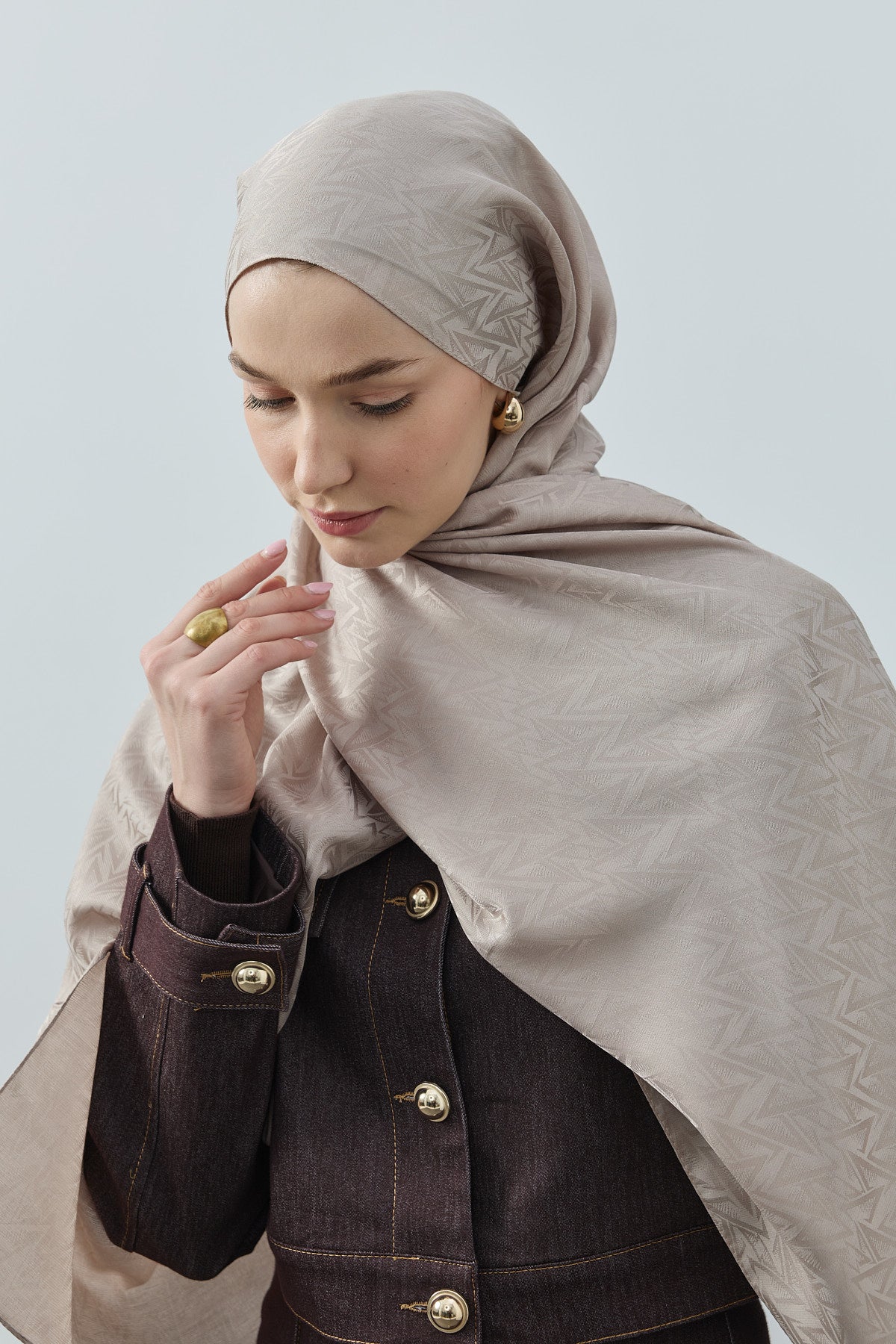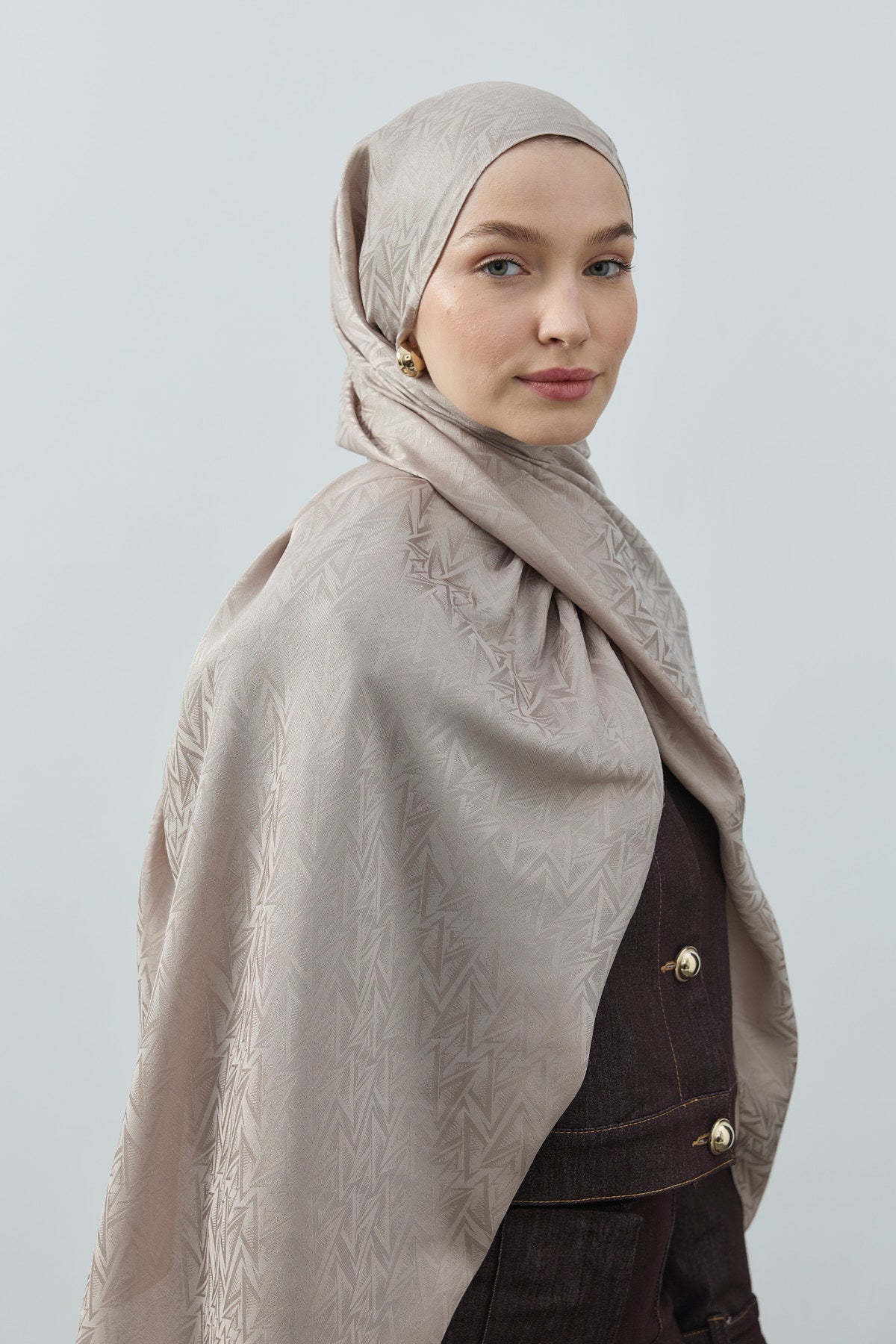 Bu kombinle Star Monogram Desen Şal Krem, soft ve toprak tonlarla birleşerek aydınlık, zarif ve modern bir günlük ve ofis kombini oluşturur; gün boyu hem şıklık hem de konfor sunar.