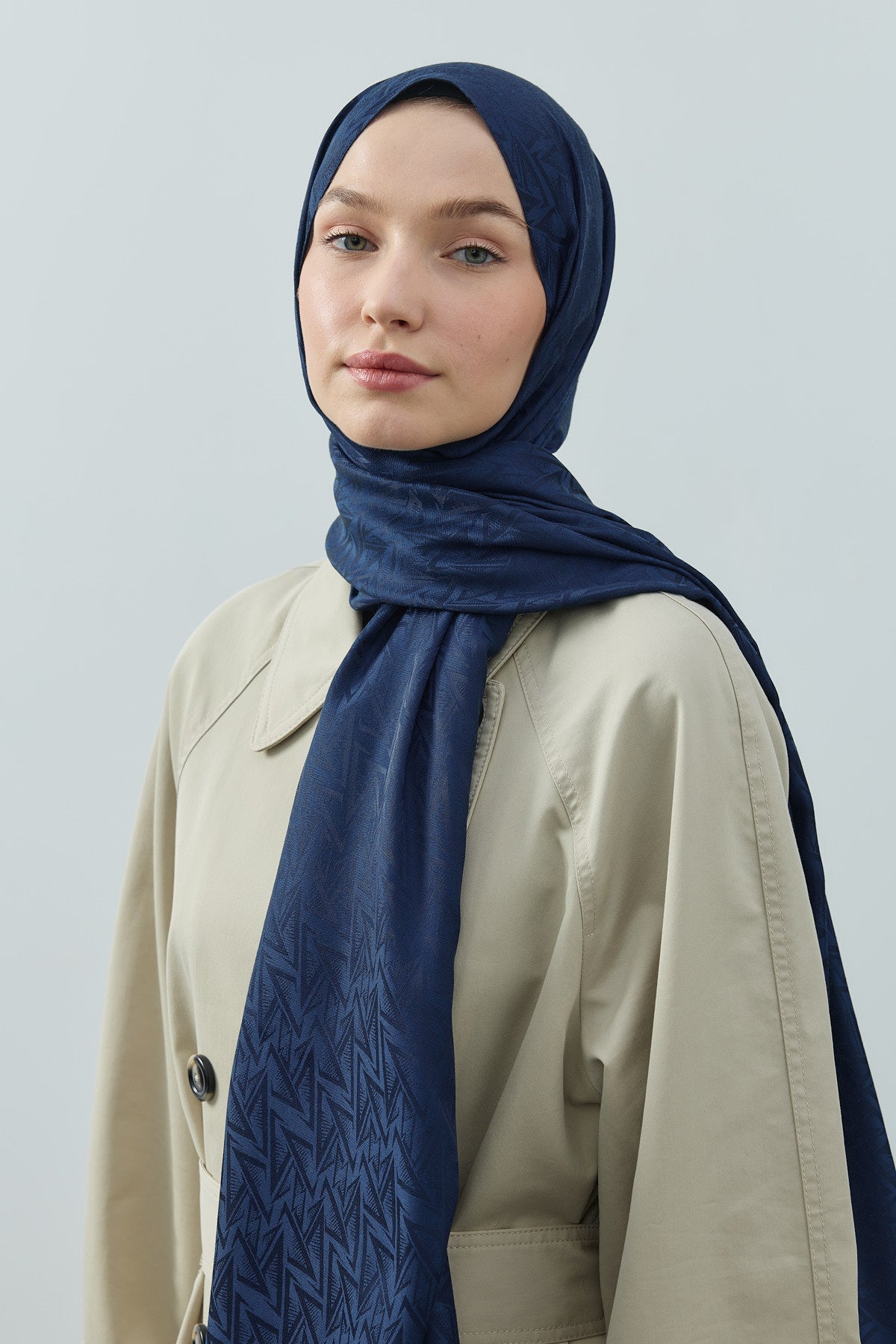 Kombin Önerisi – Star Monogram Desen Şal Lacivert