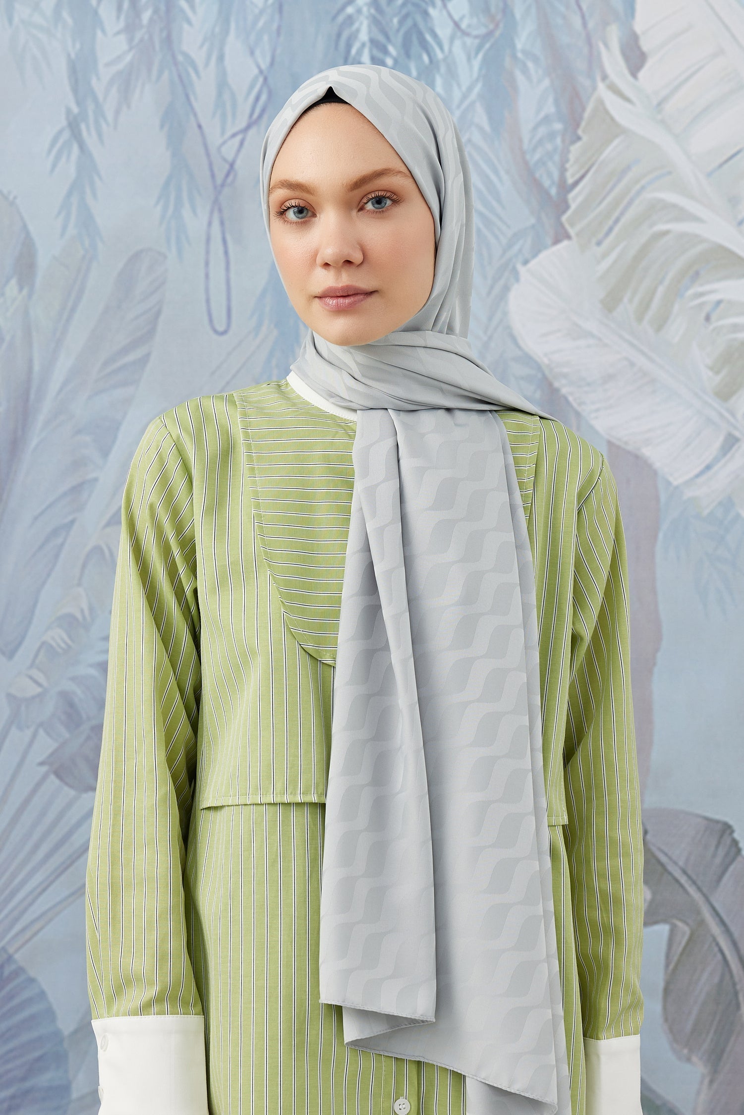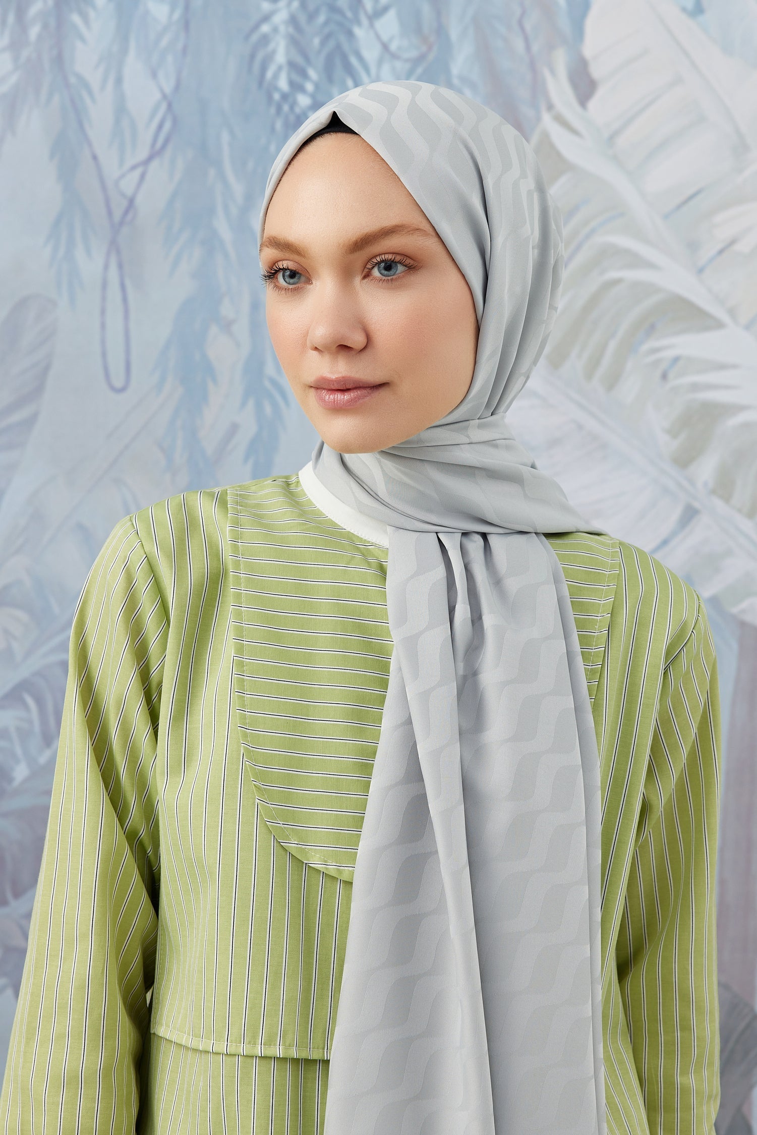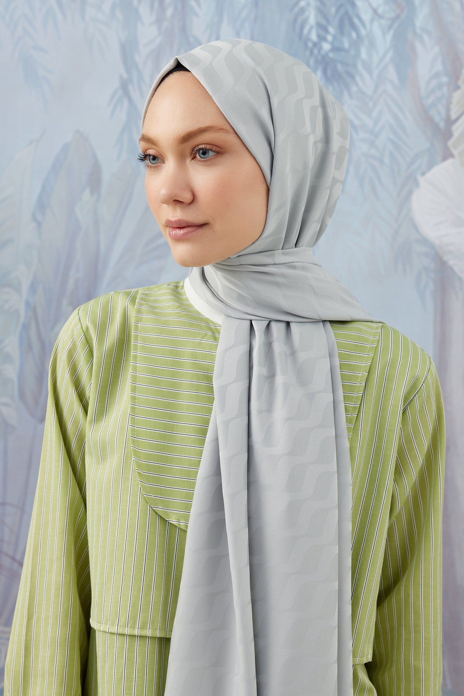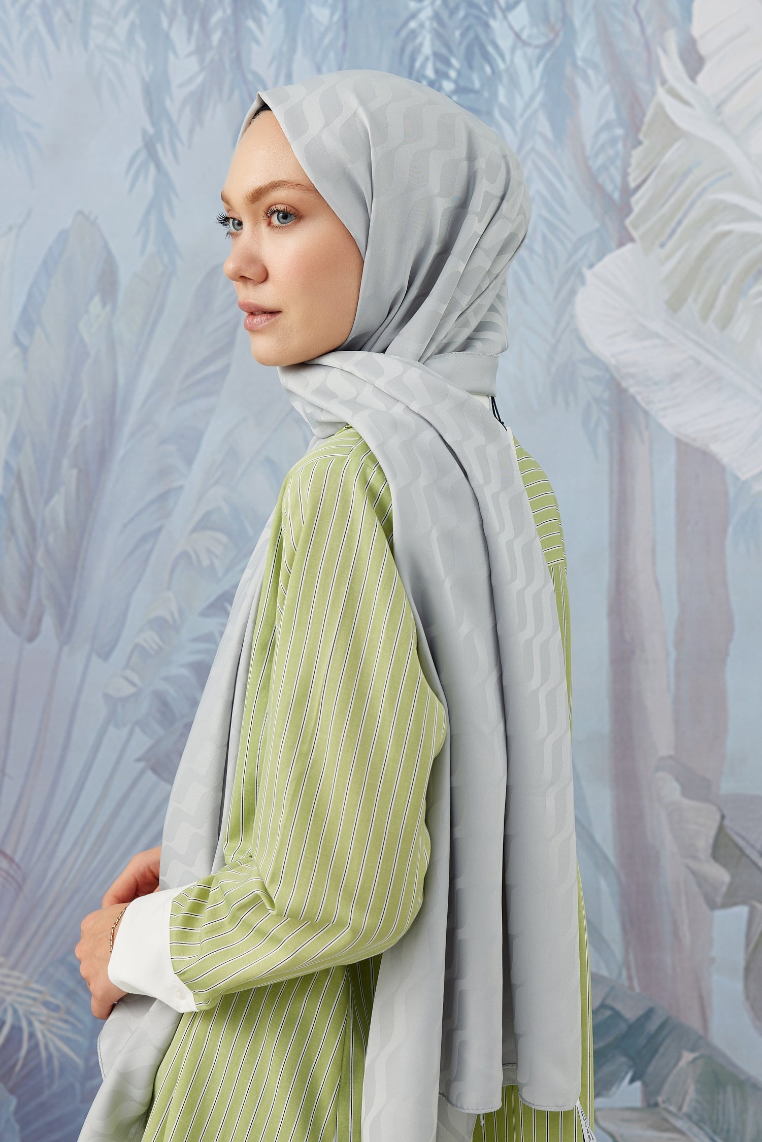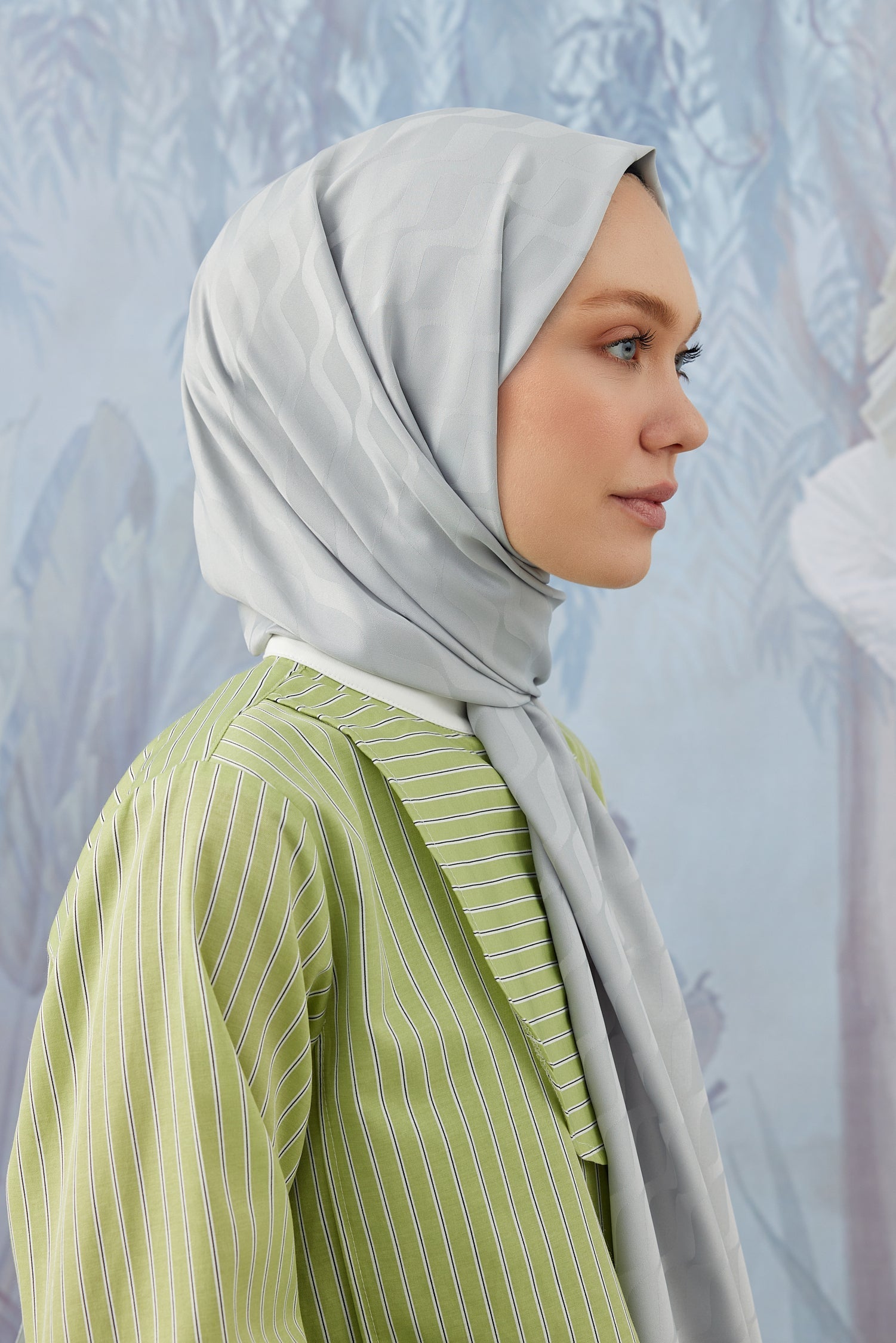 Su Yolu Desen İpeksi Jakar Şal Gümüş Gri