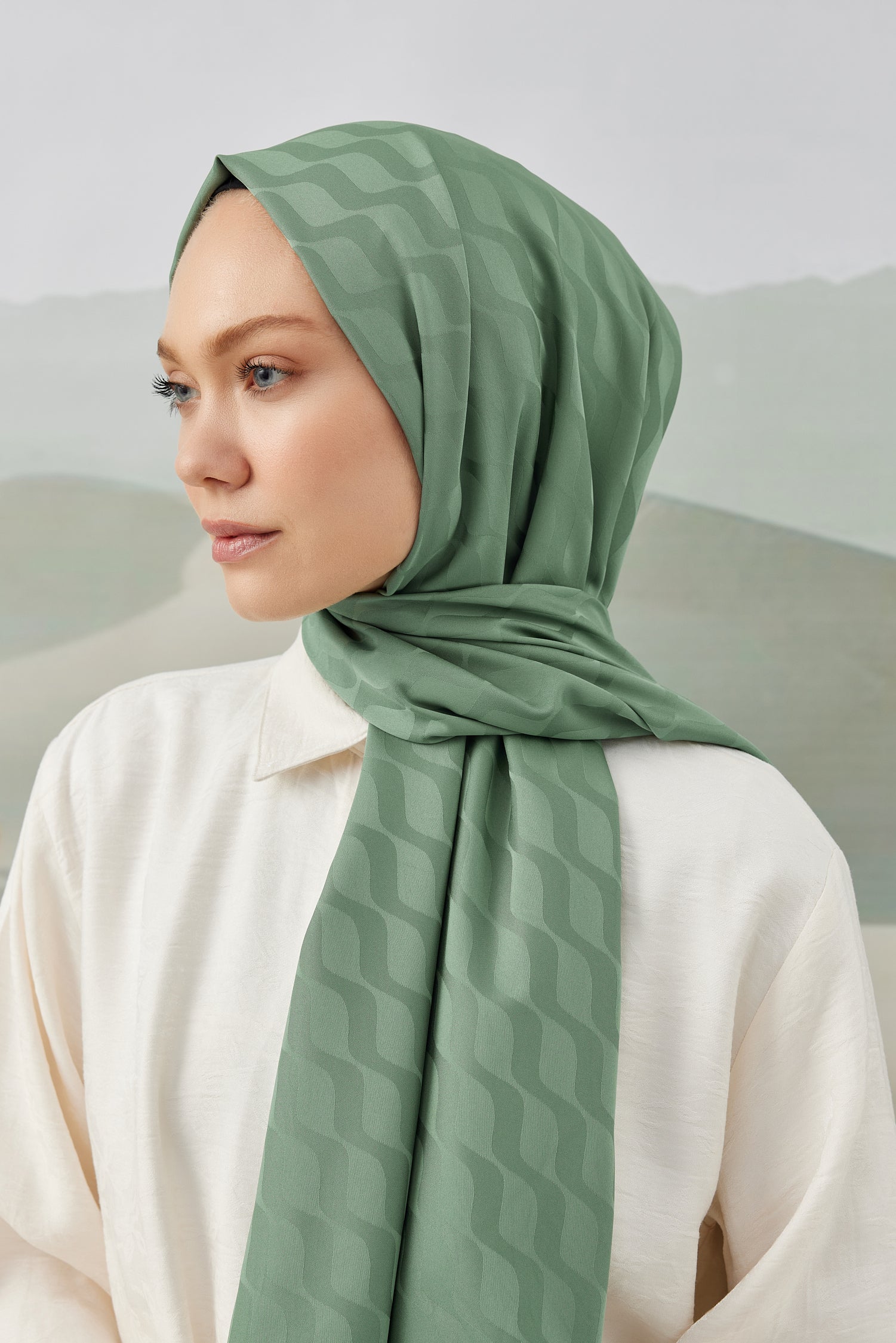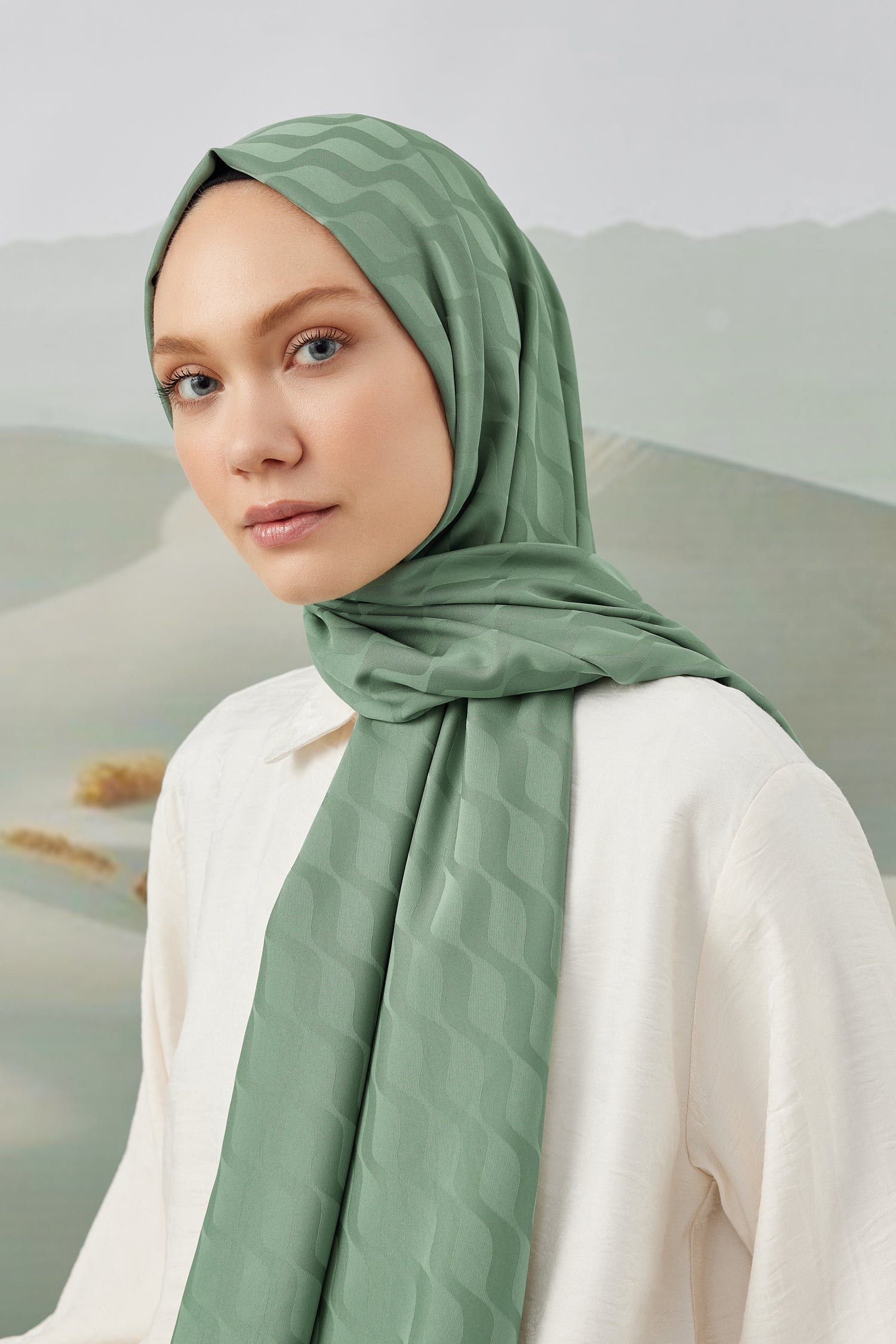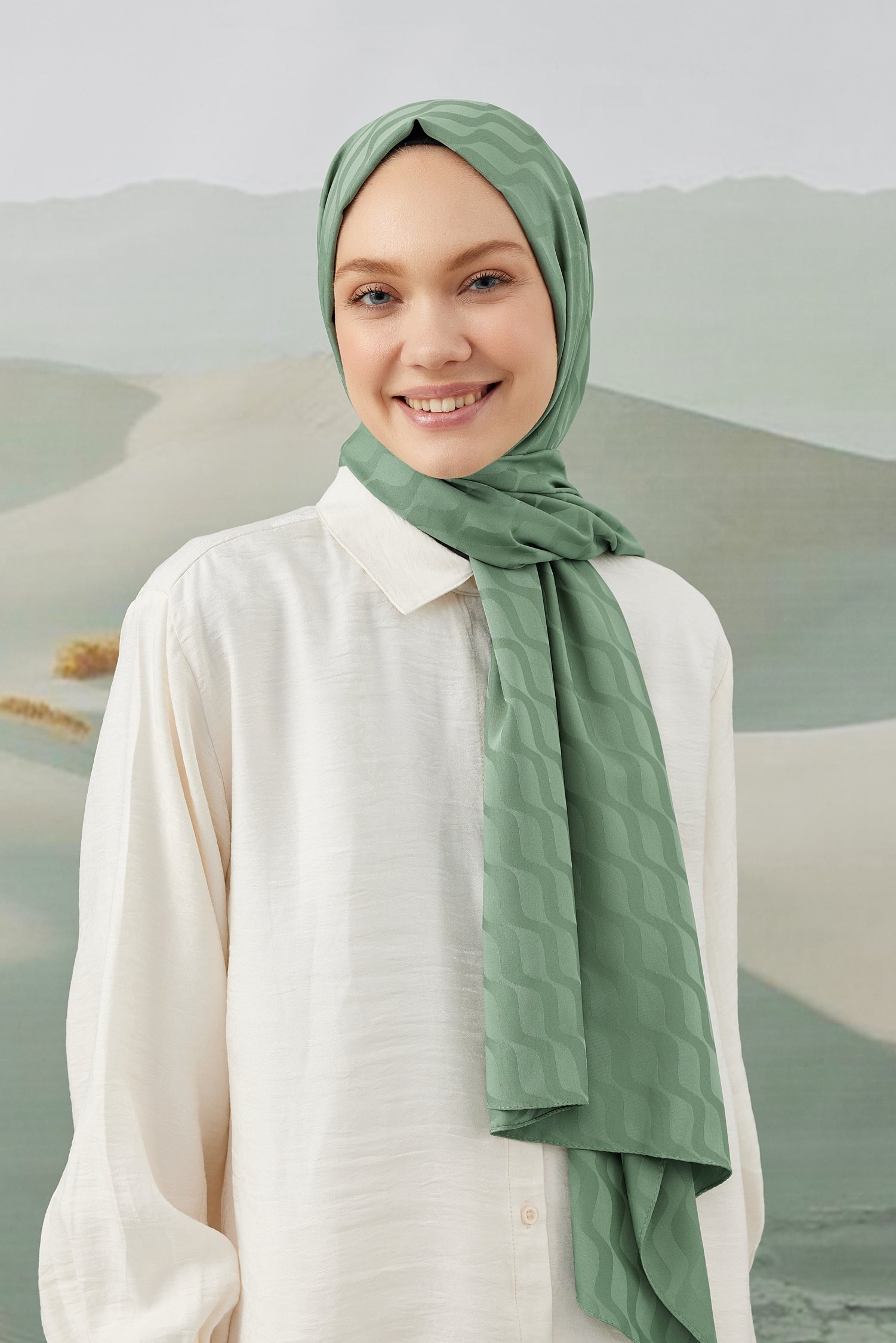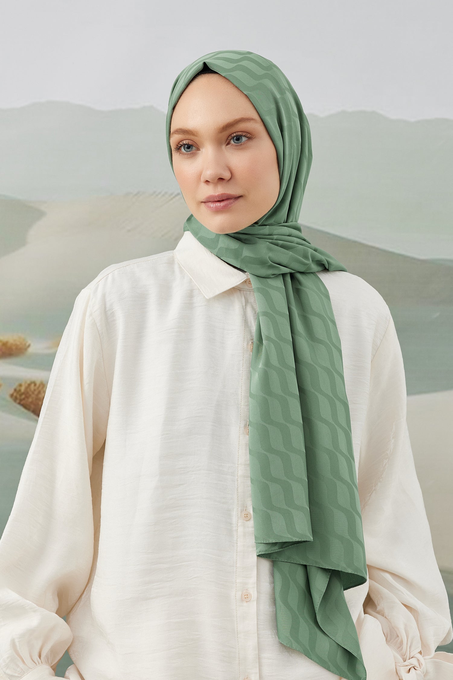 Su Yolu Desen İpeksi Jakar Şal Soft Yeşil