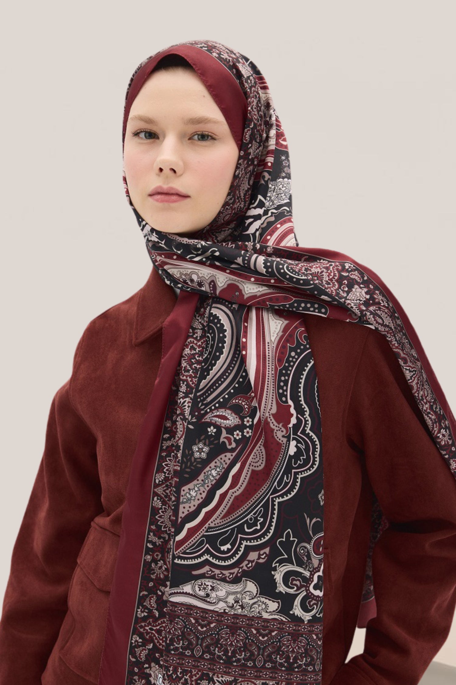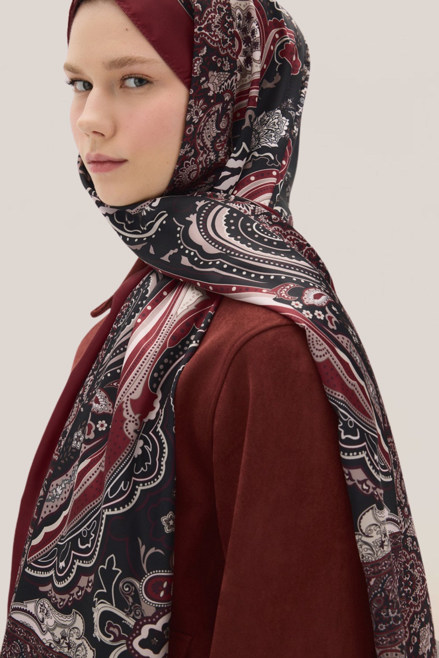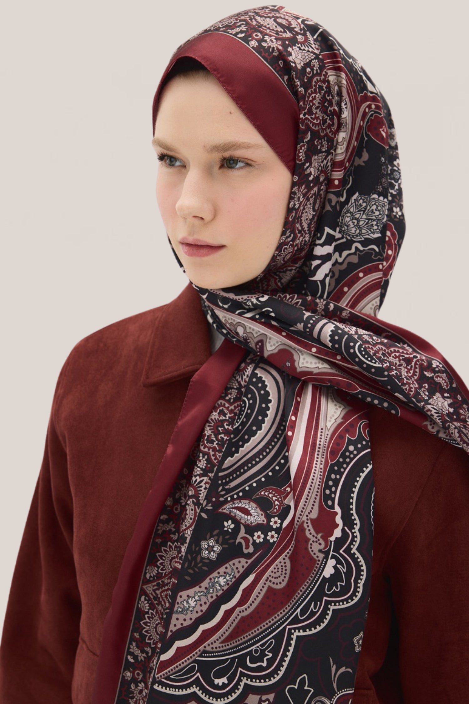 Vanessa Desen Vual İpek Şal Bordo
