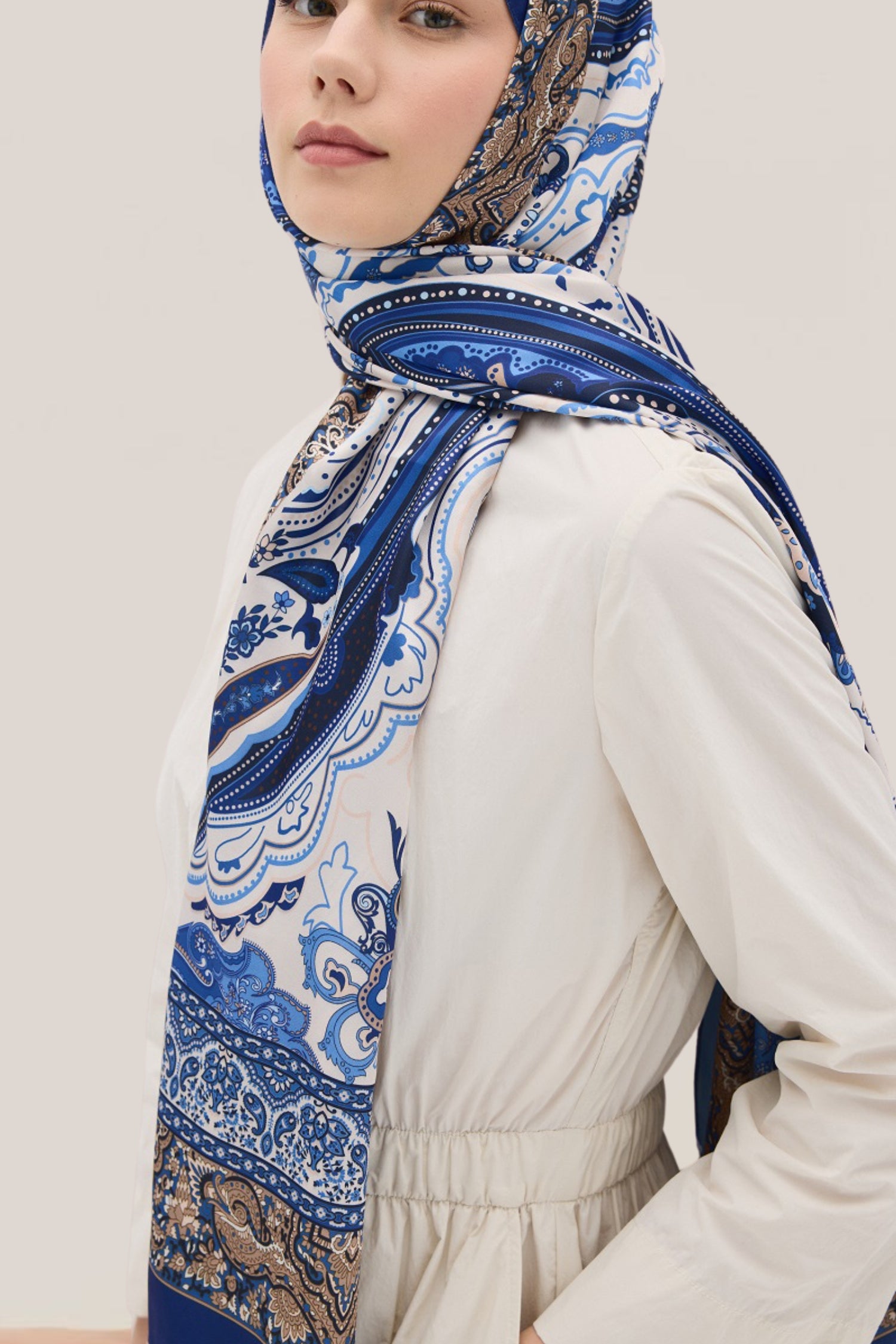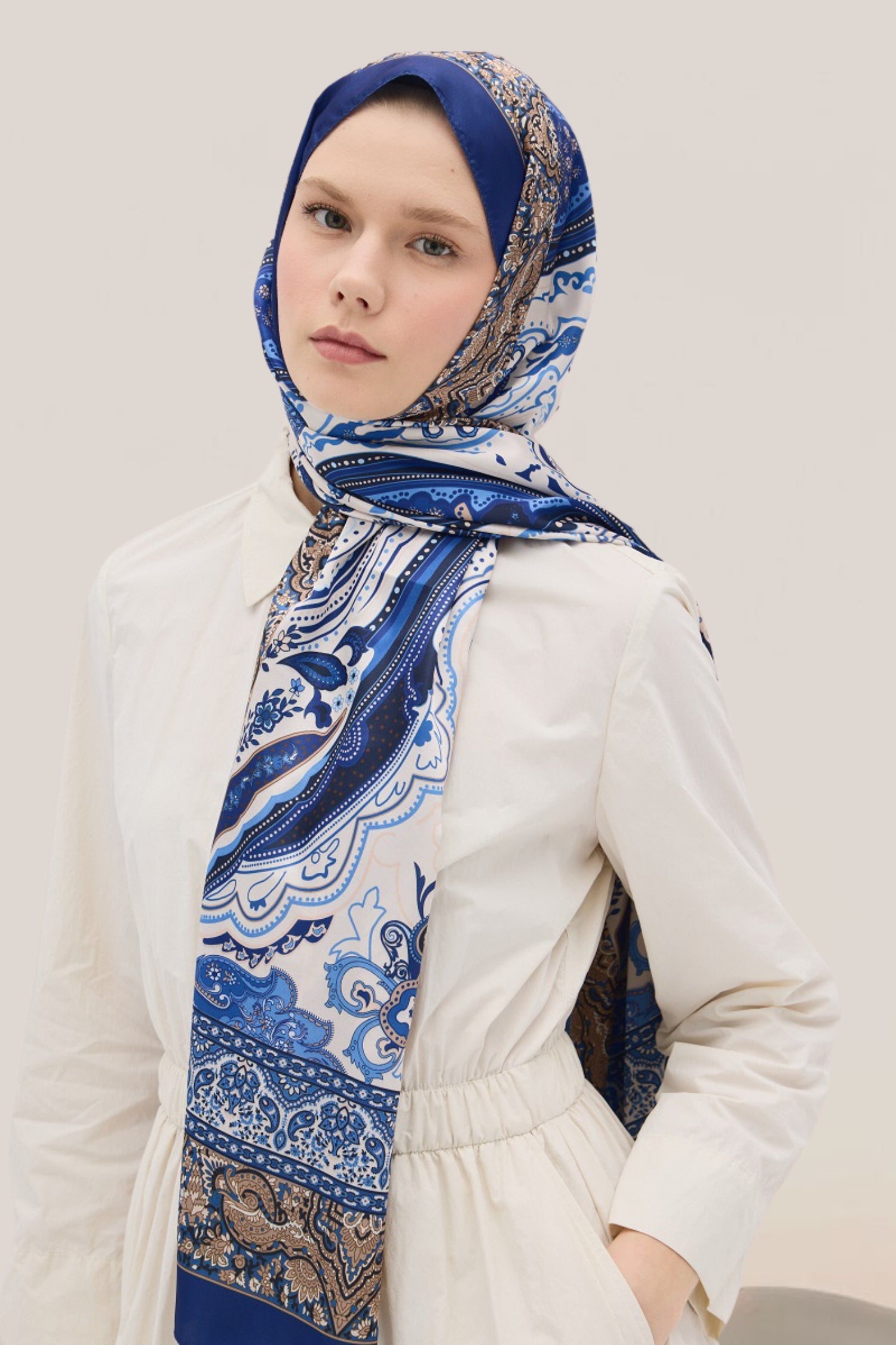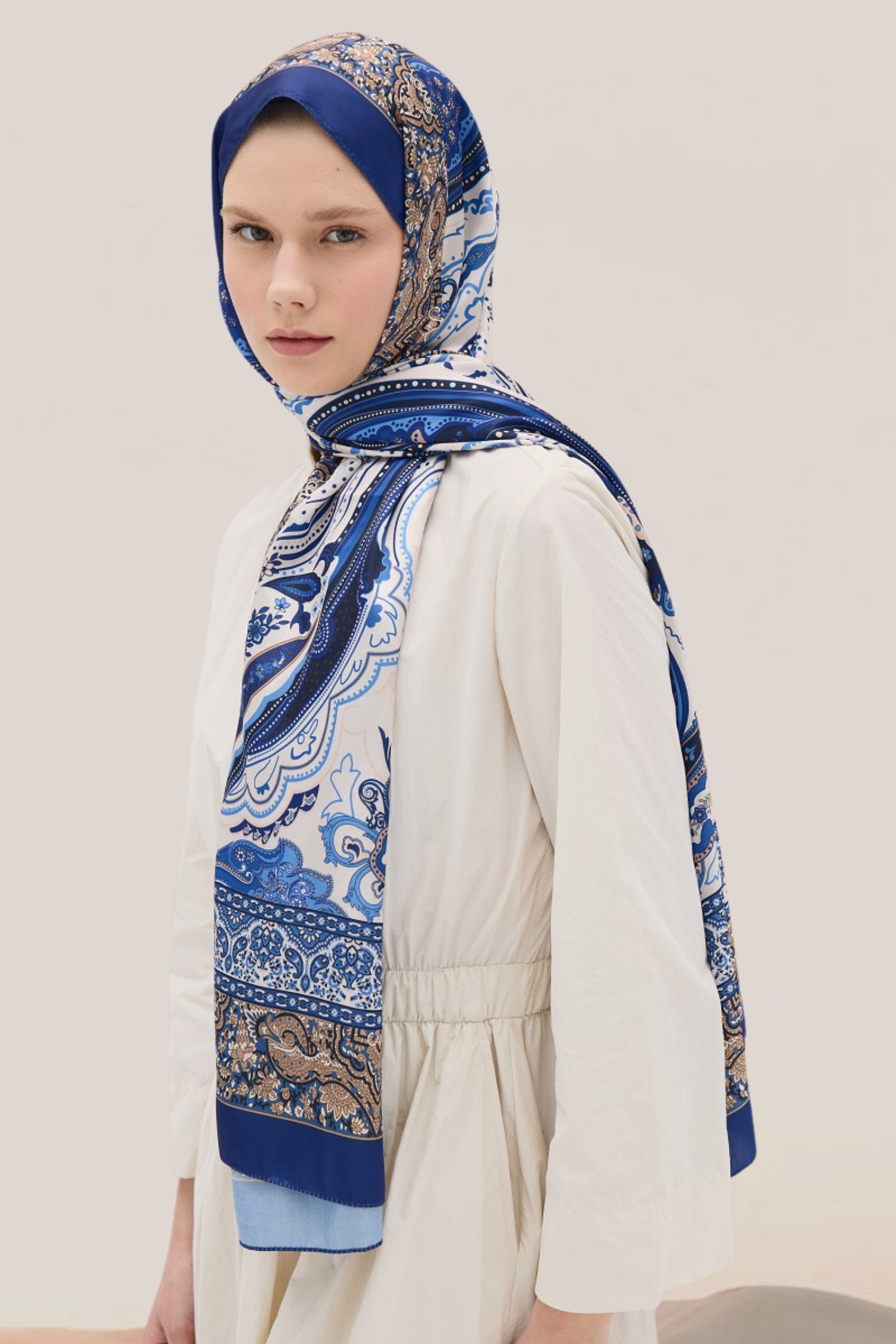 Vanessa Desen Vual İpek Şal Saks Mavi