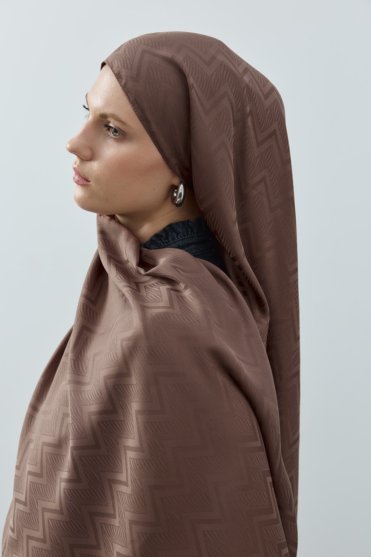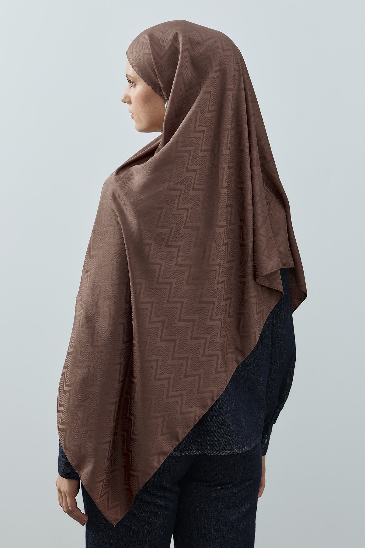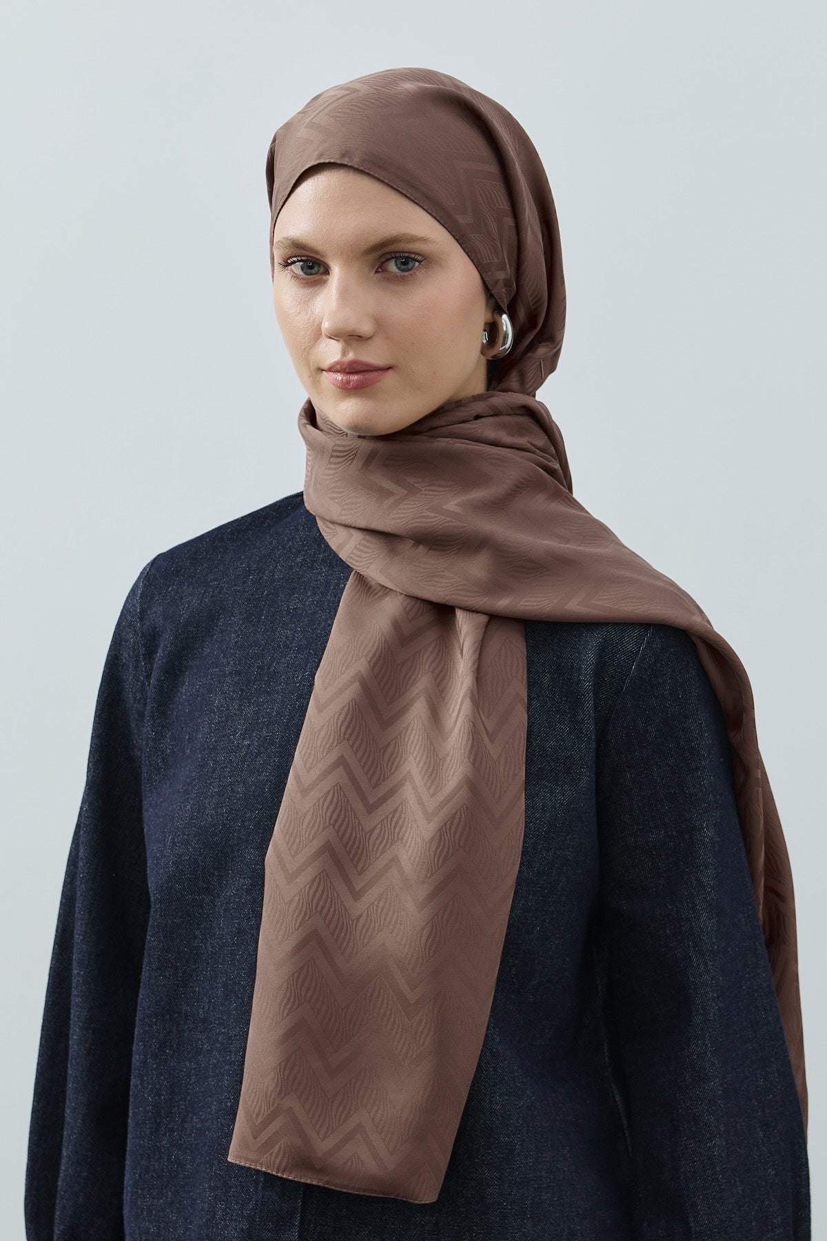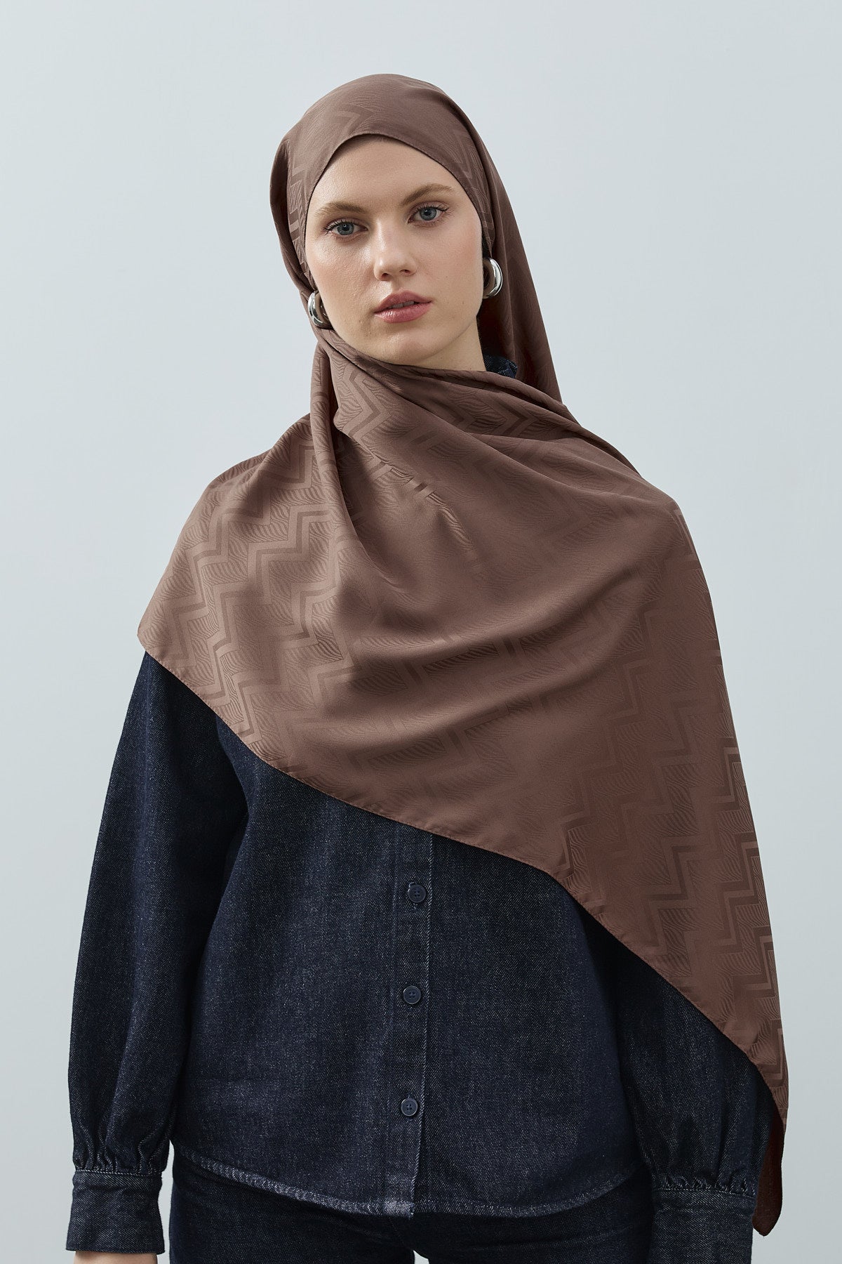 Velvet Lines Desen İpeksi Jakar Şal Çikolata Kahve