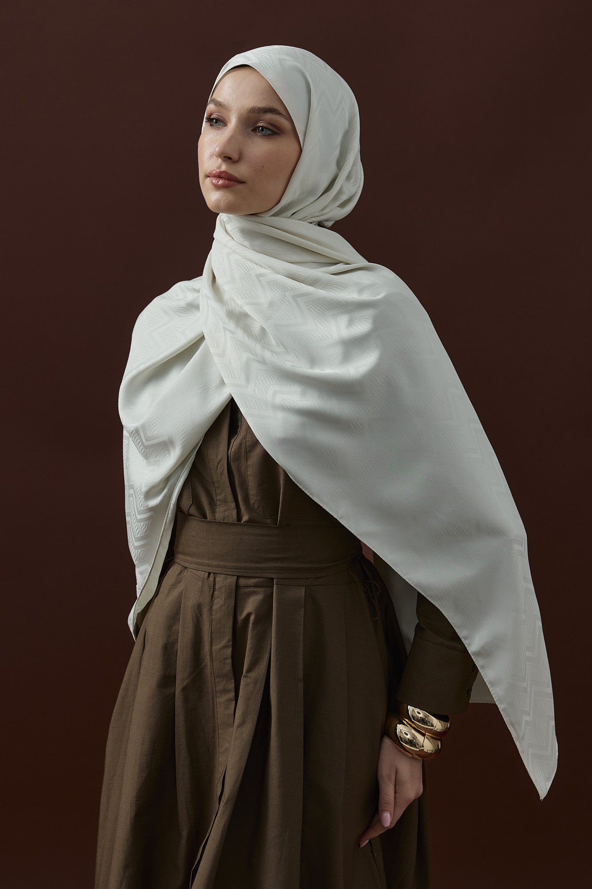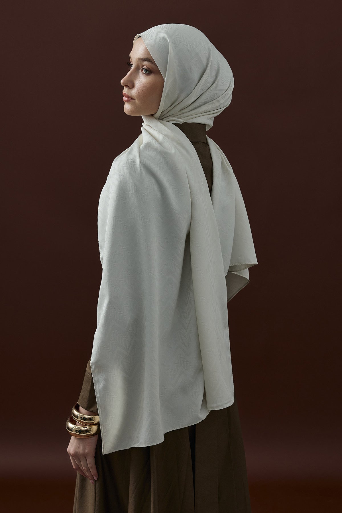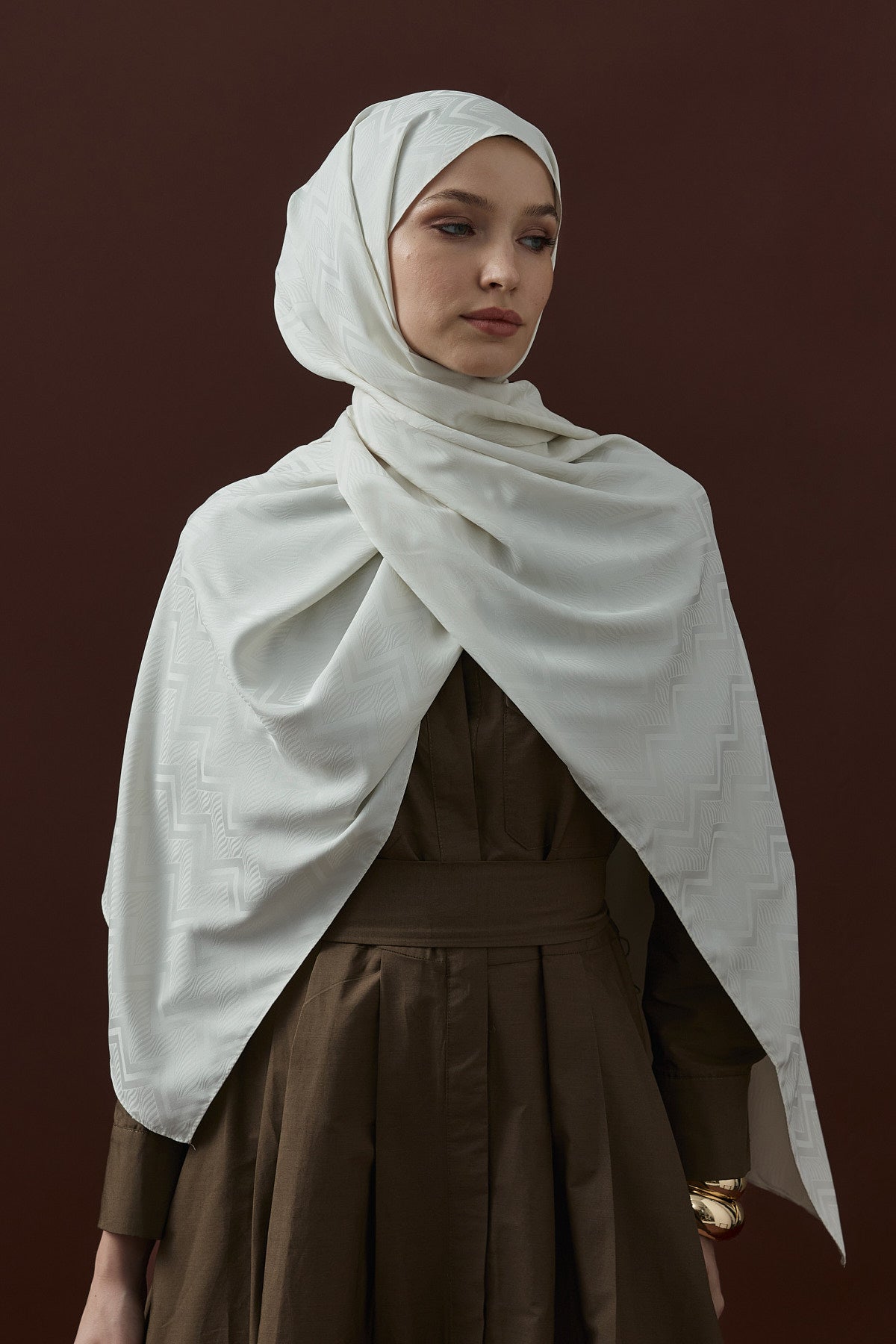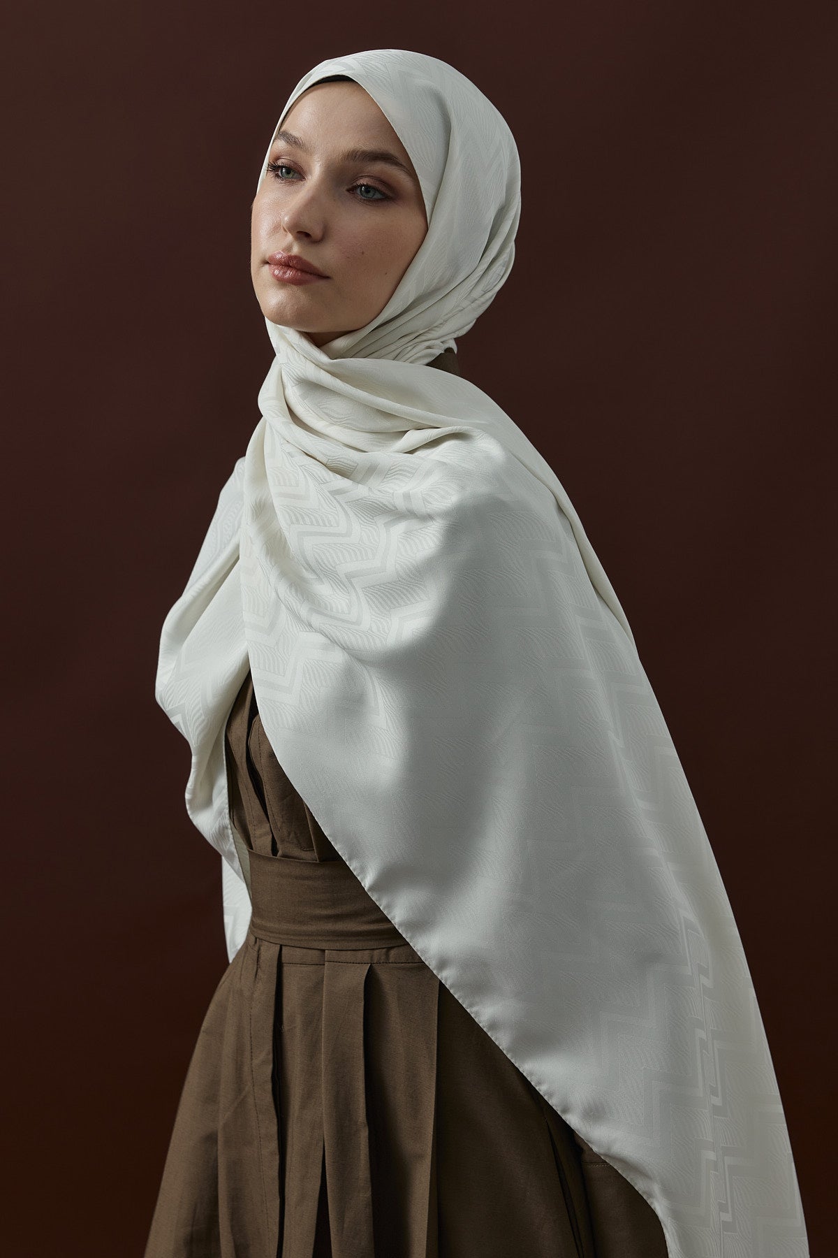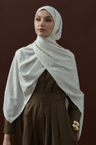 Velvet Lines Desen İpeksi Jakar Şal Ekru