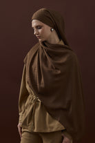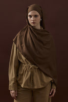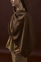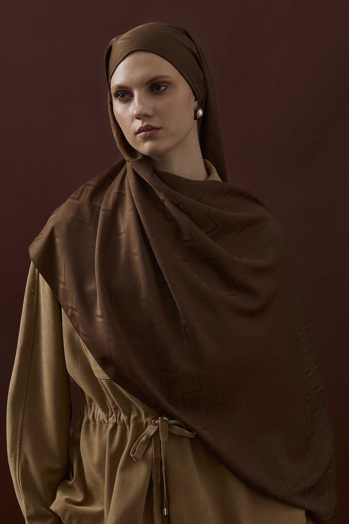 Velvet Lines Desen İpeksi Jakar Şal Kahverengi