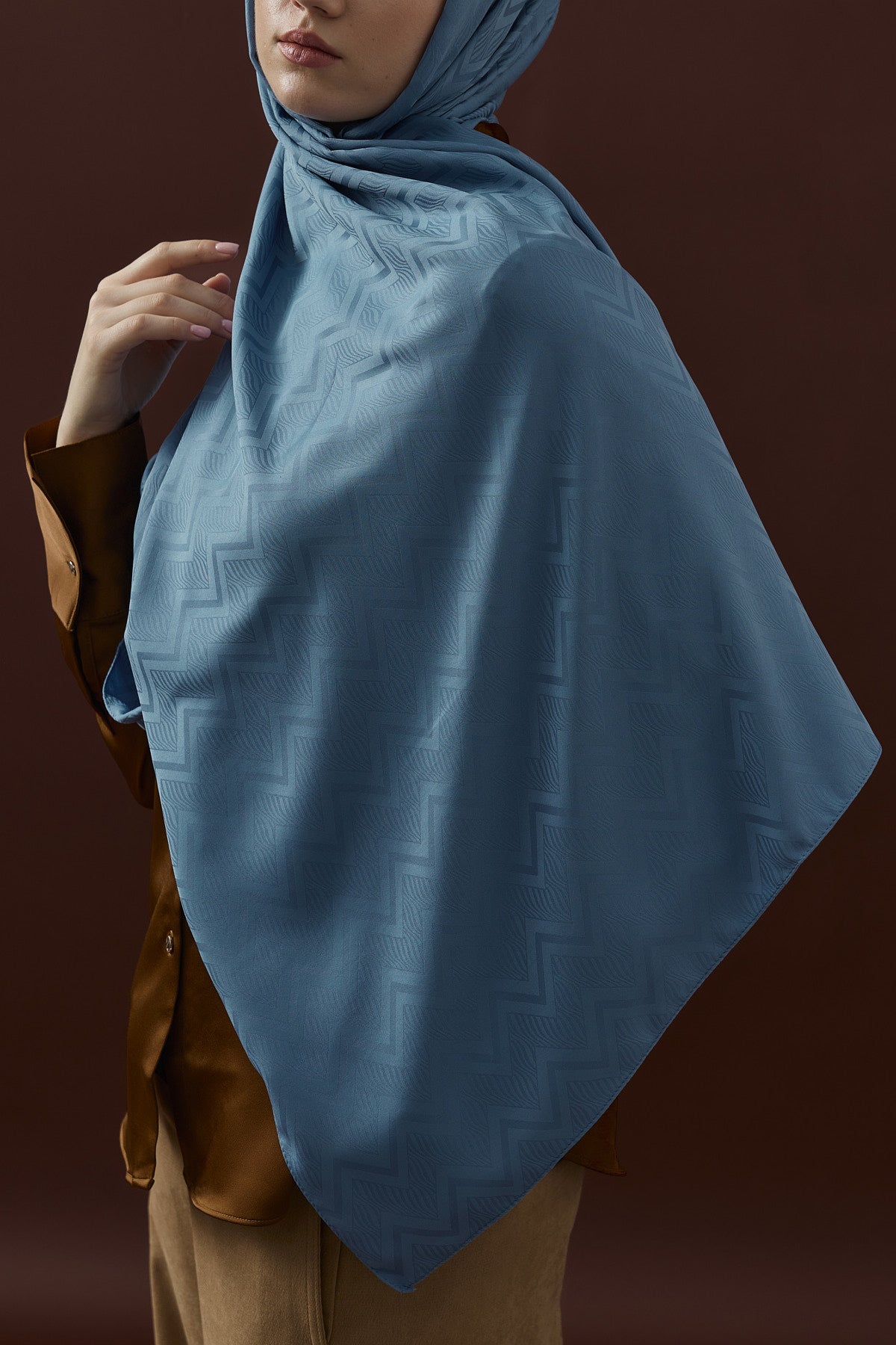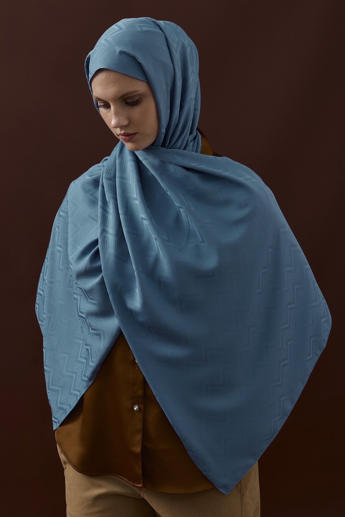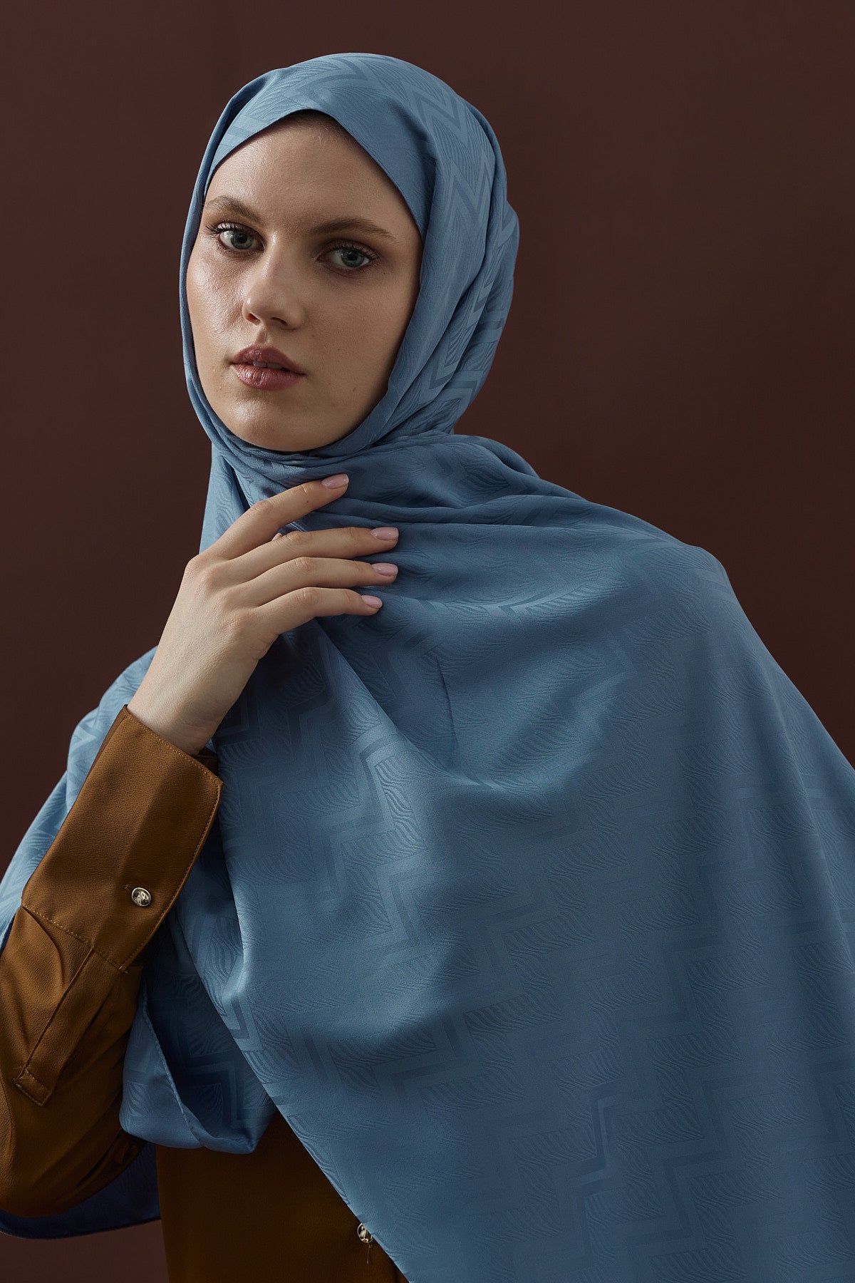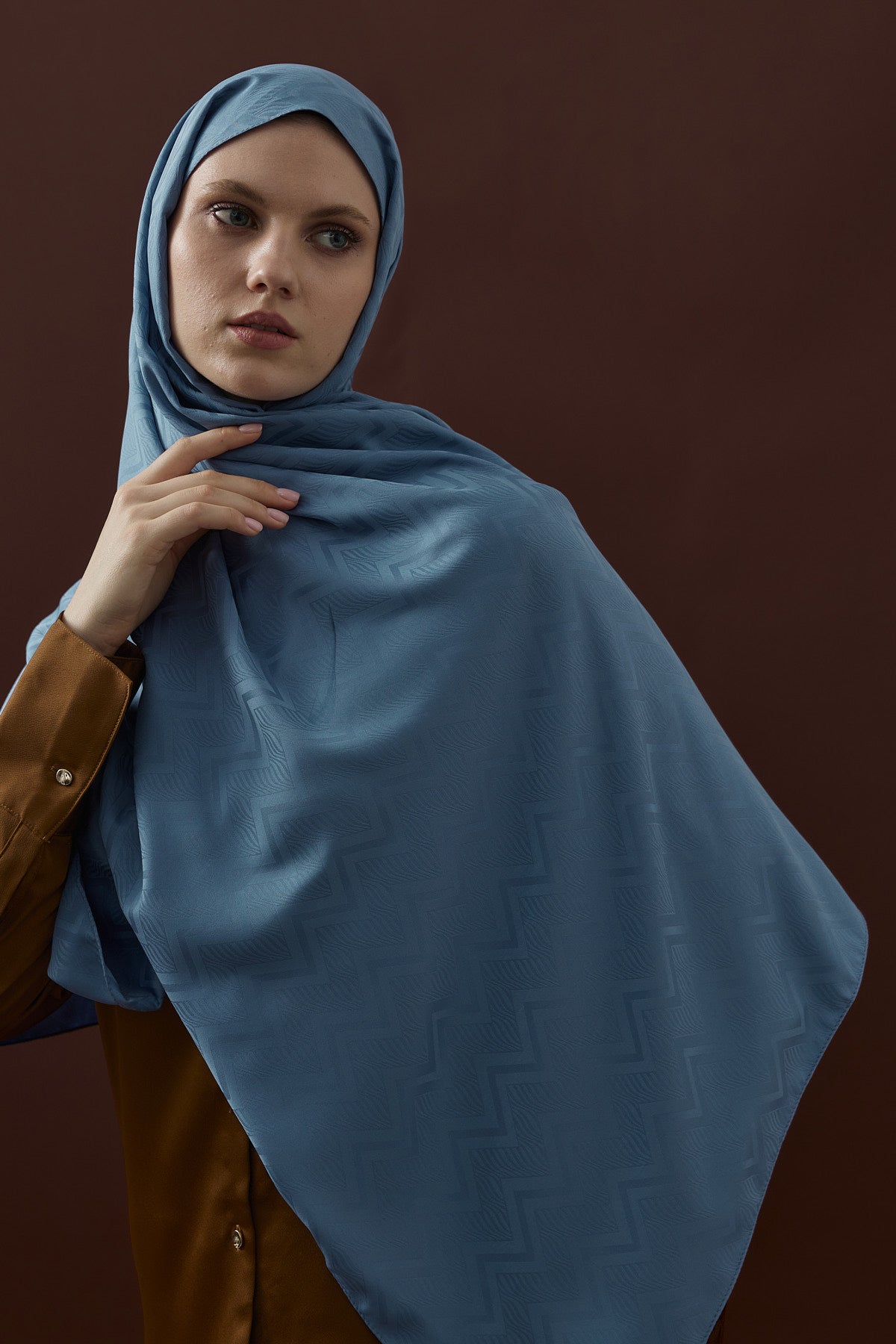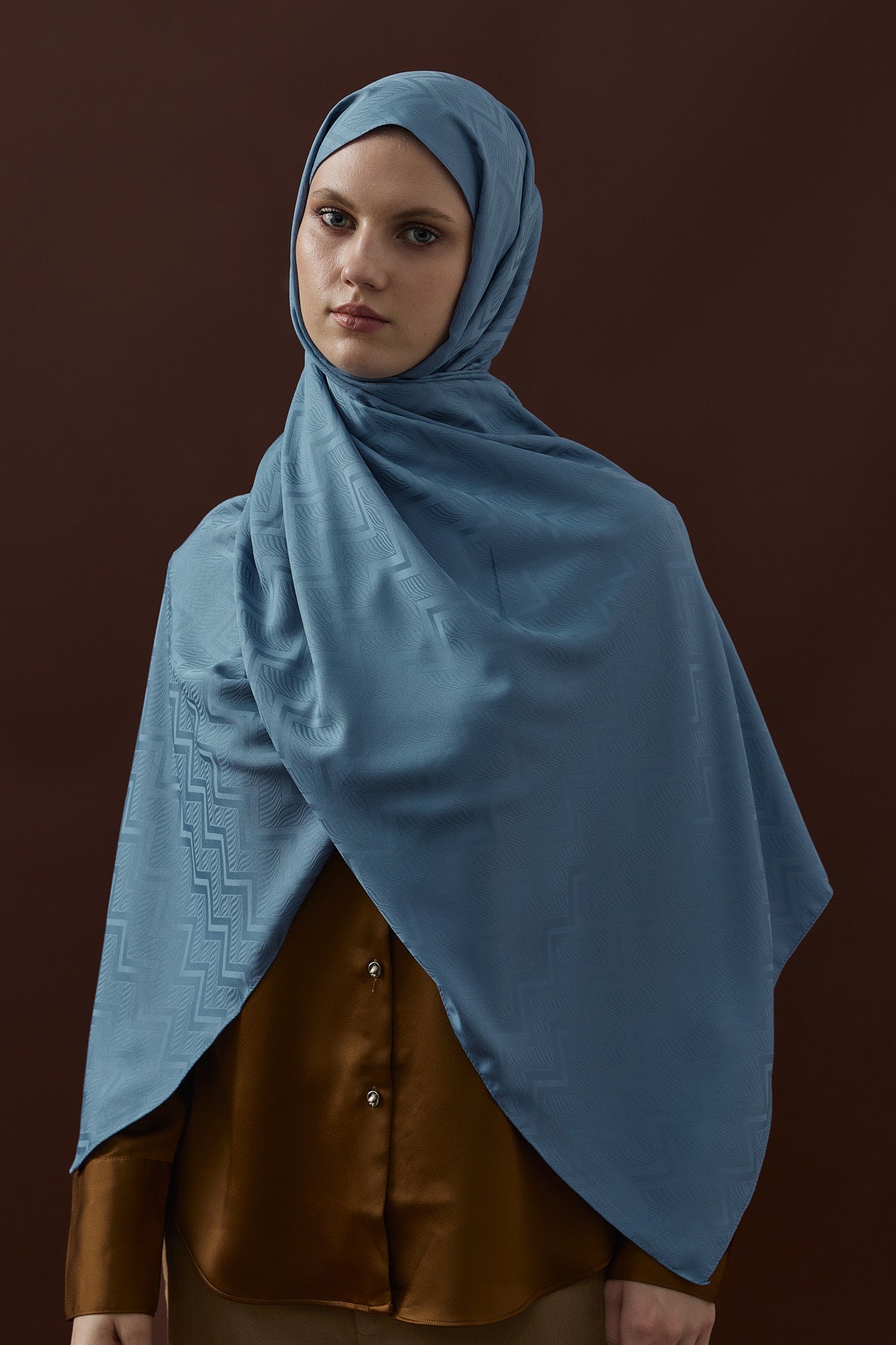 Velvet Lines Desen İpeksi Jakar Şal Mavi