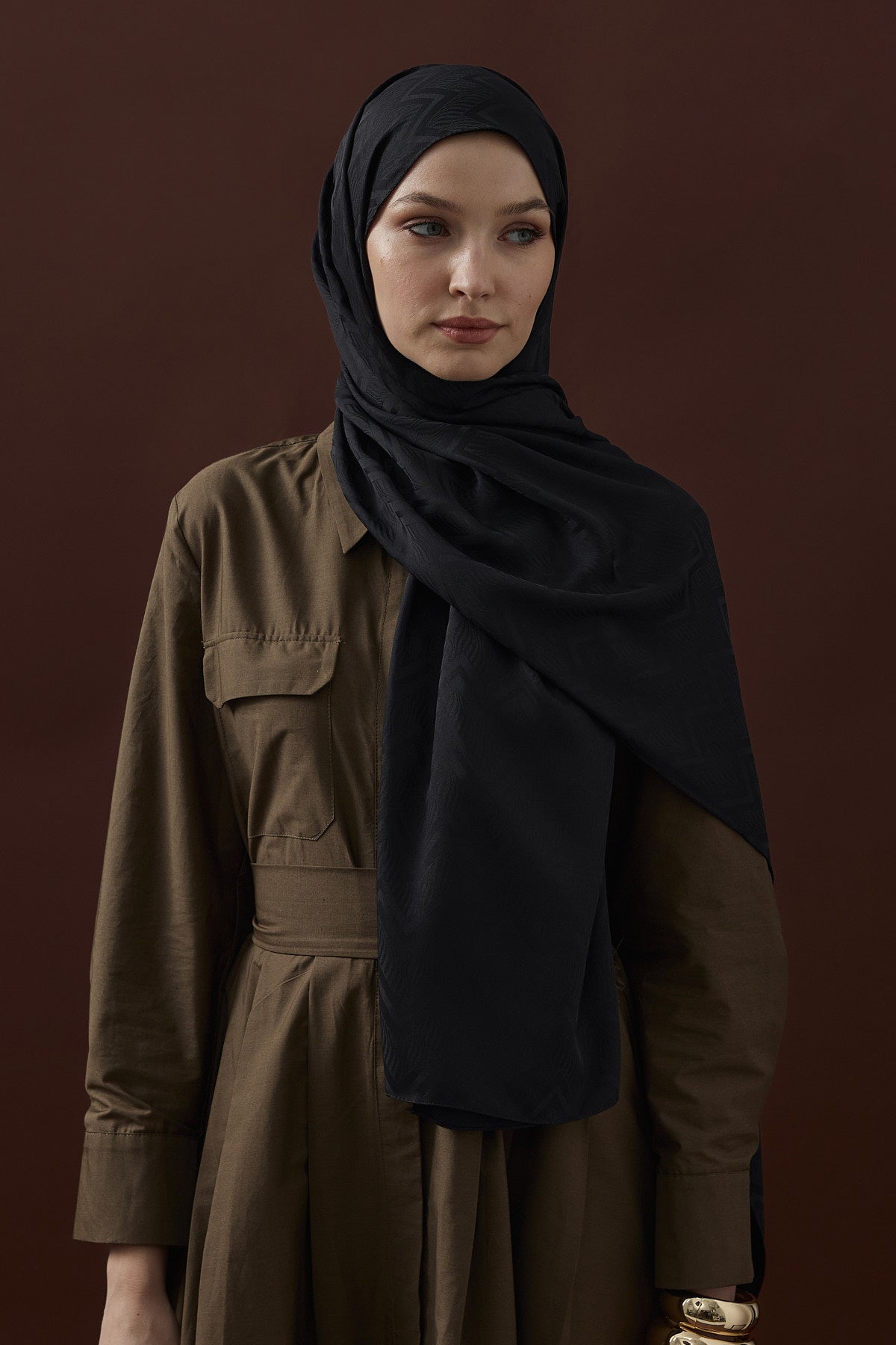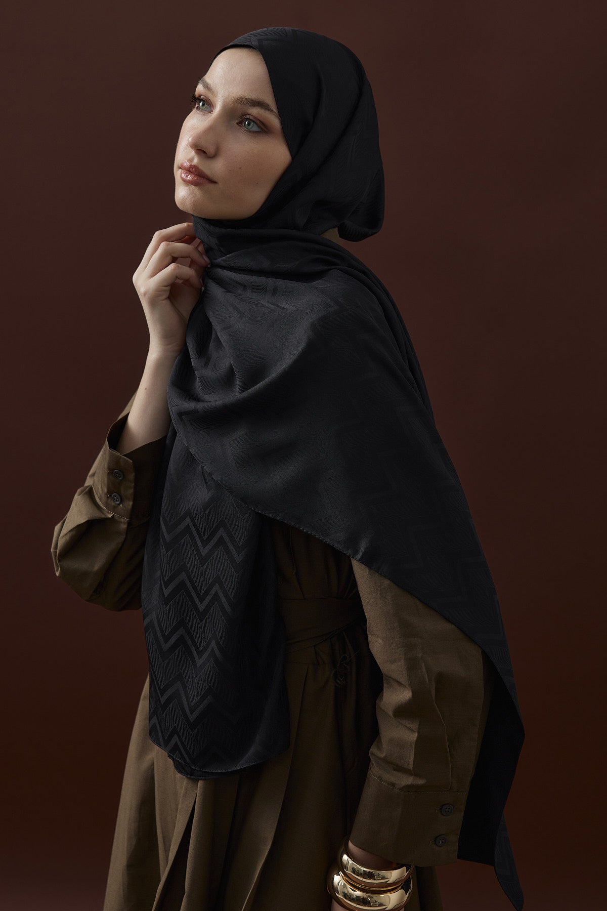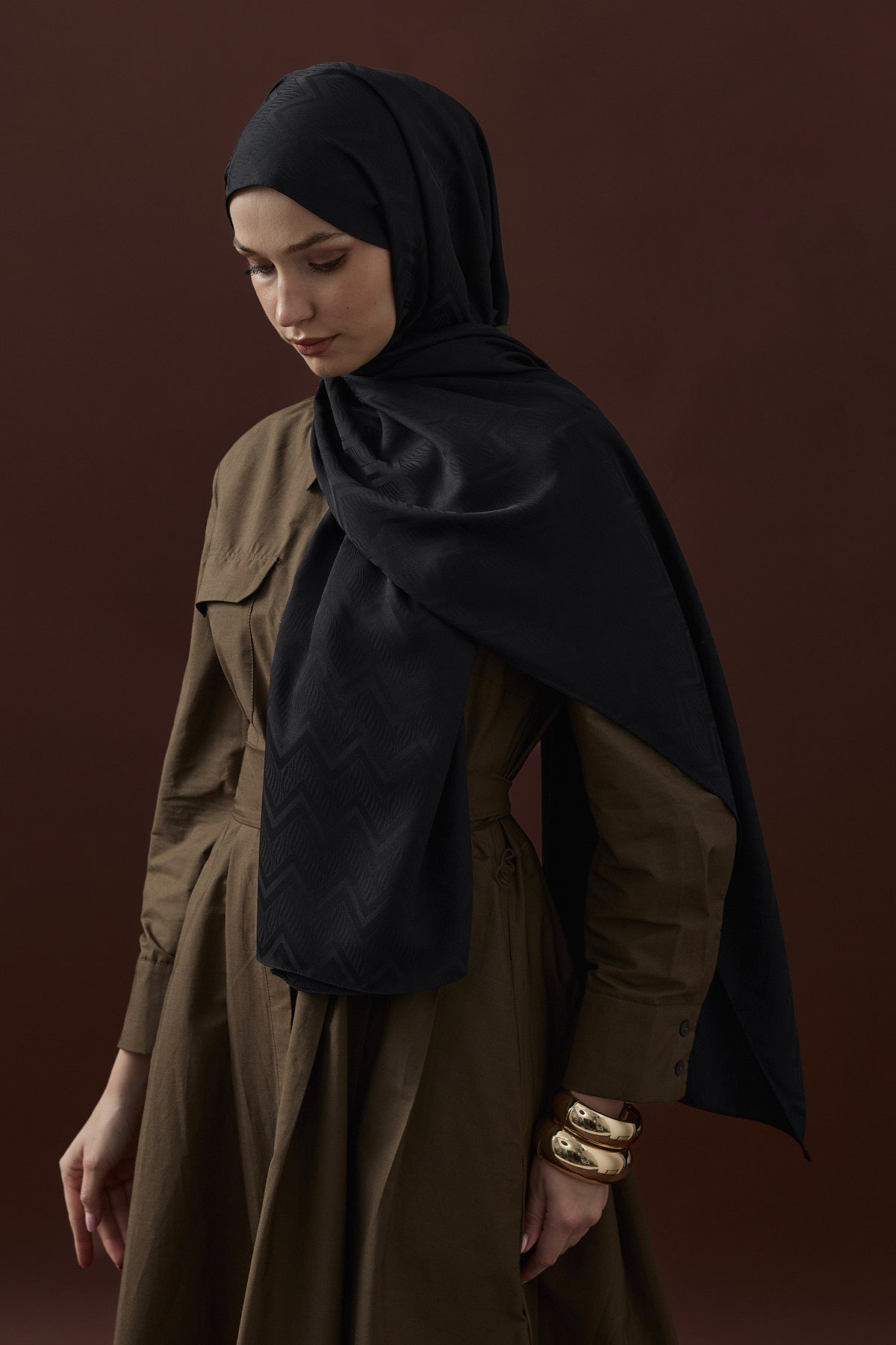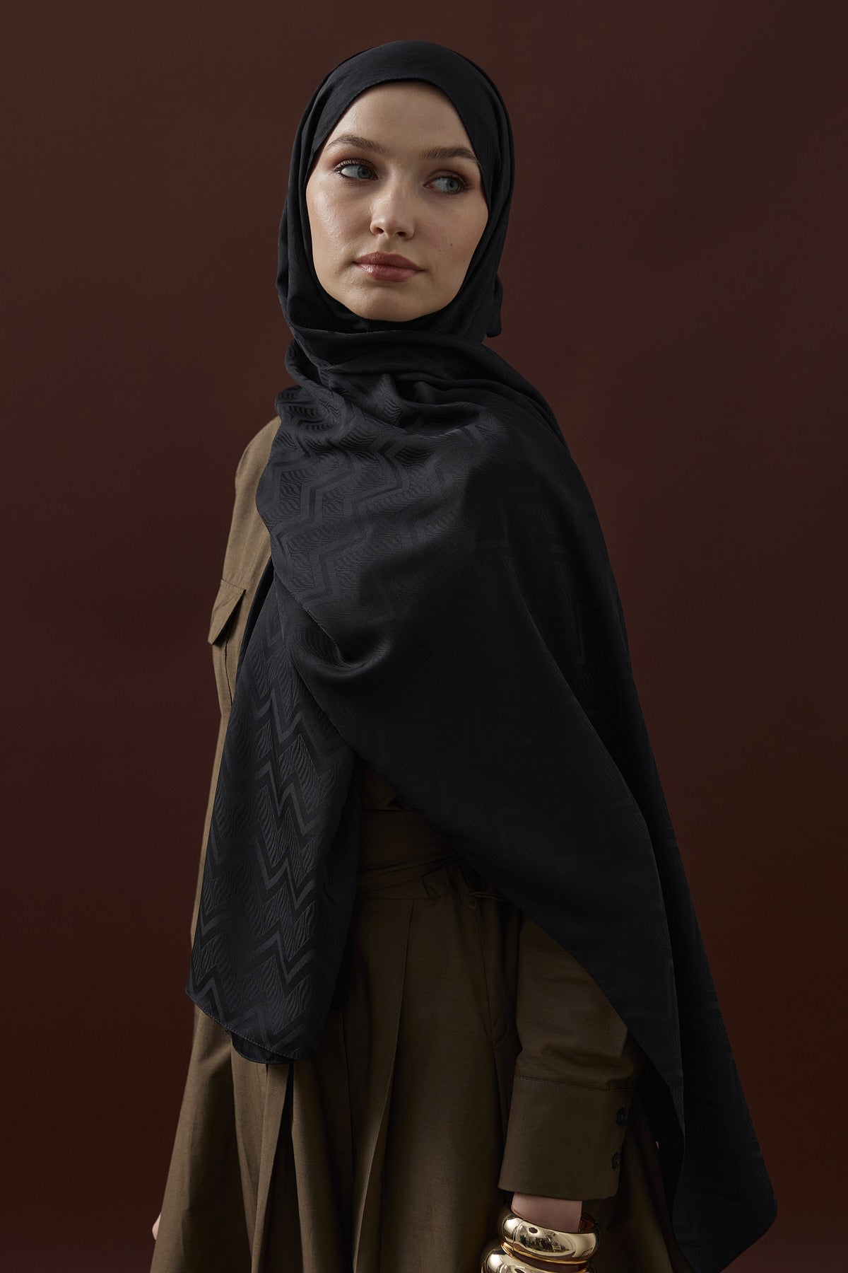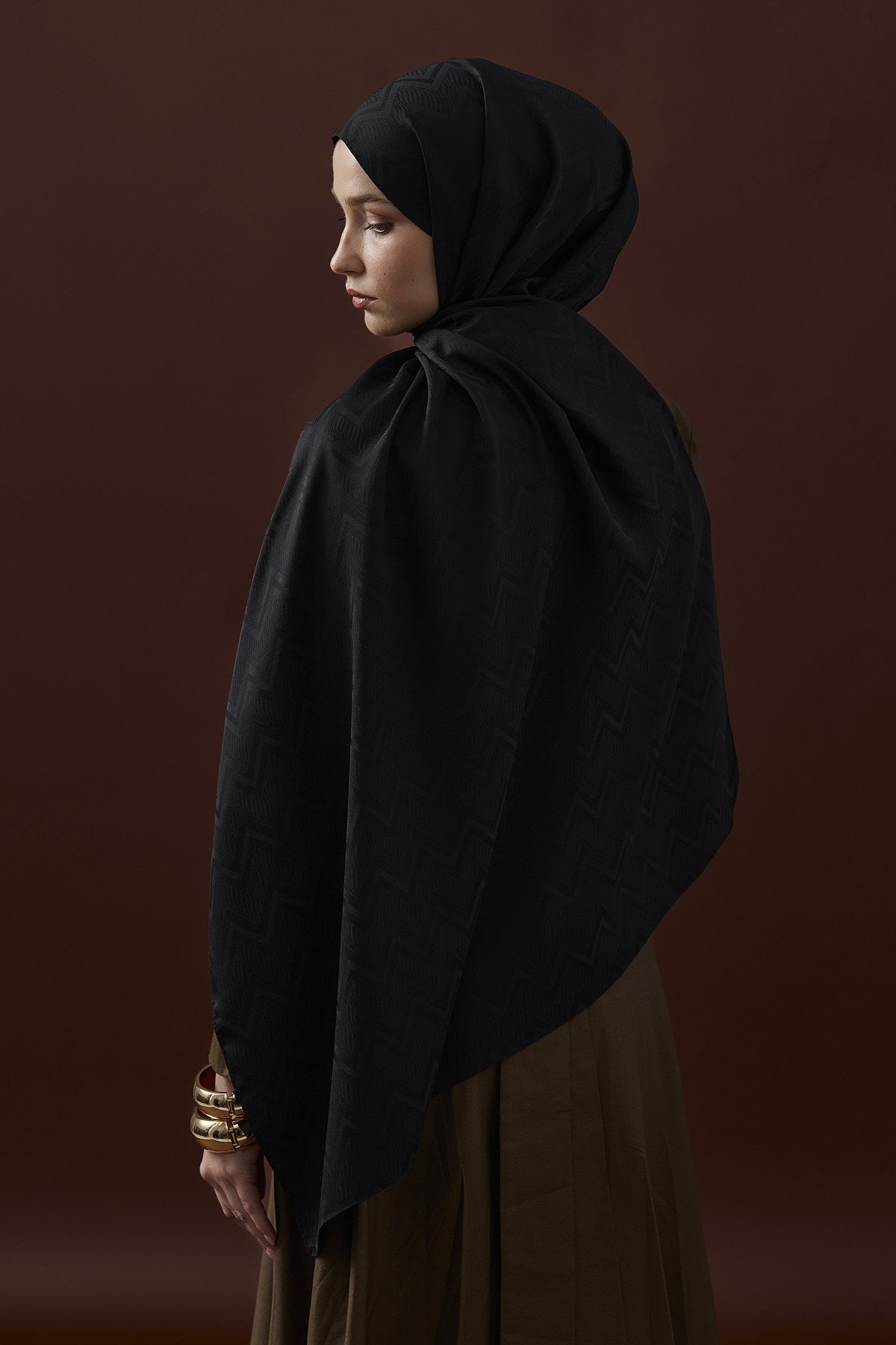 Velvet Lines Desen İpeksi Jakar Şal Siyah