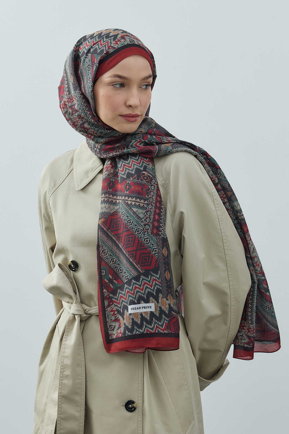 Winter Echoes Anatolian Loop (Anadolu İlmeği) Desen Şal – Kırmızı, Anadolu kültüründen ilham alan desenleriyle zamansız bir şıklık sunar. Pamuklu dokusu cilt dostudur; kaymayan formu ve tok duruşu sayesinde gün boyu düzgün kalır. Ütü gerektirmeyen özelliği, modern yaşamın hızına ayak uydurur. Anadolu ilmek detayları, şala karakter katar ve her mevsim kombinlerinize derinlik kazandırır.