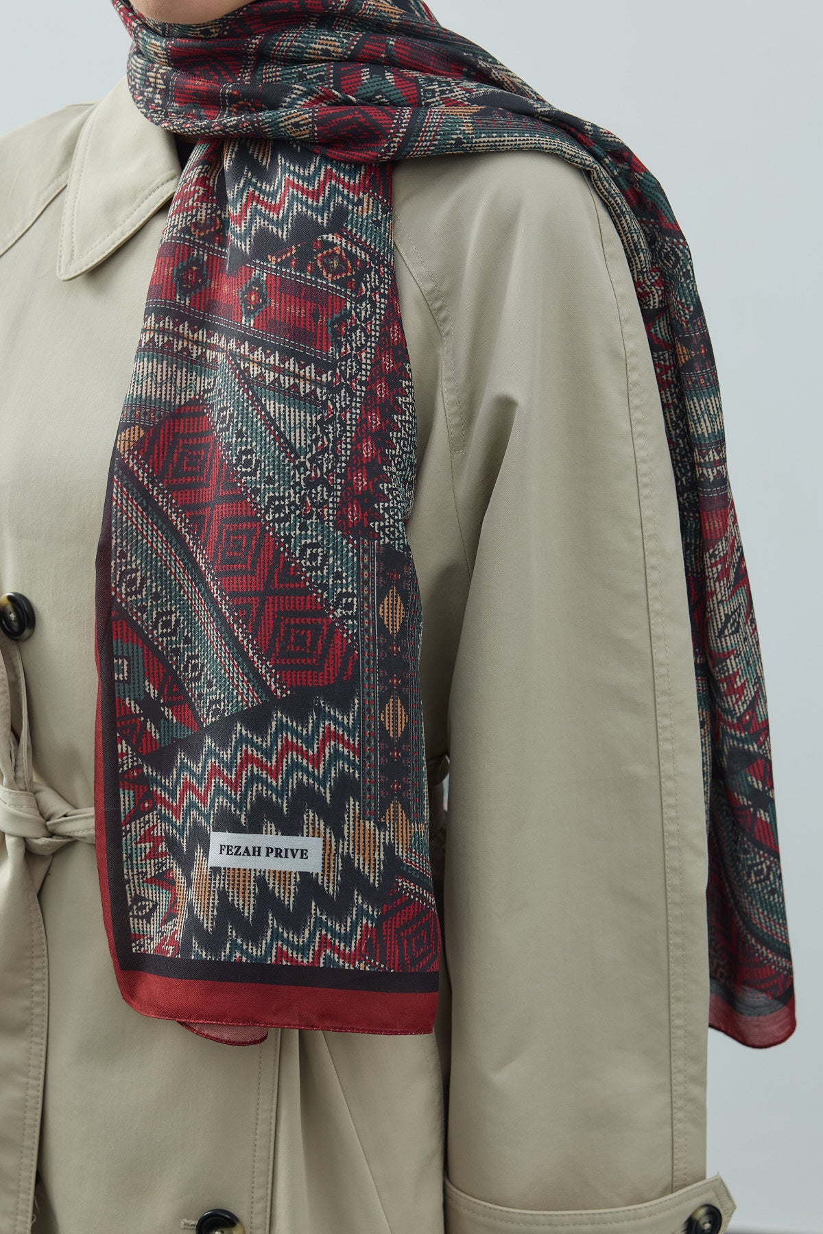 Winter Echoes Anatolian Loop Desen Şal – Kırmızı, canlı kırmızı tonunun enerjisini, Anadolu’nun geleneksel ilmek motifleriyle buluşturur. Zarafeti, sıcaklığı ve özgün stili bir arada sunan bu özel model, modern kadınların karakterini yansıtan bir şal olarak öne çıkar.
