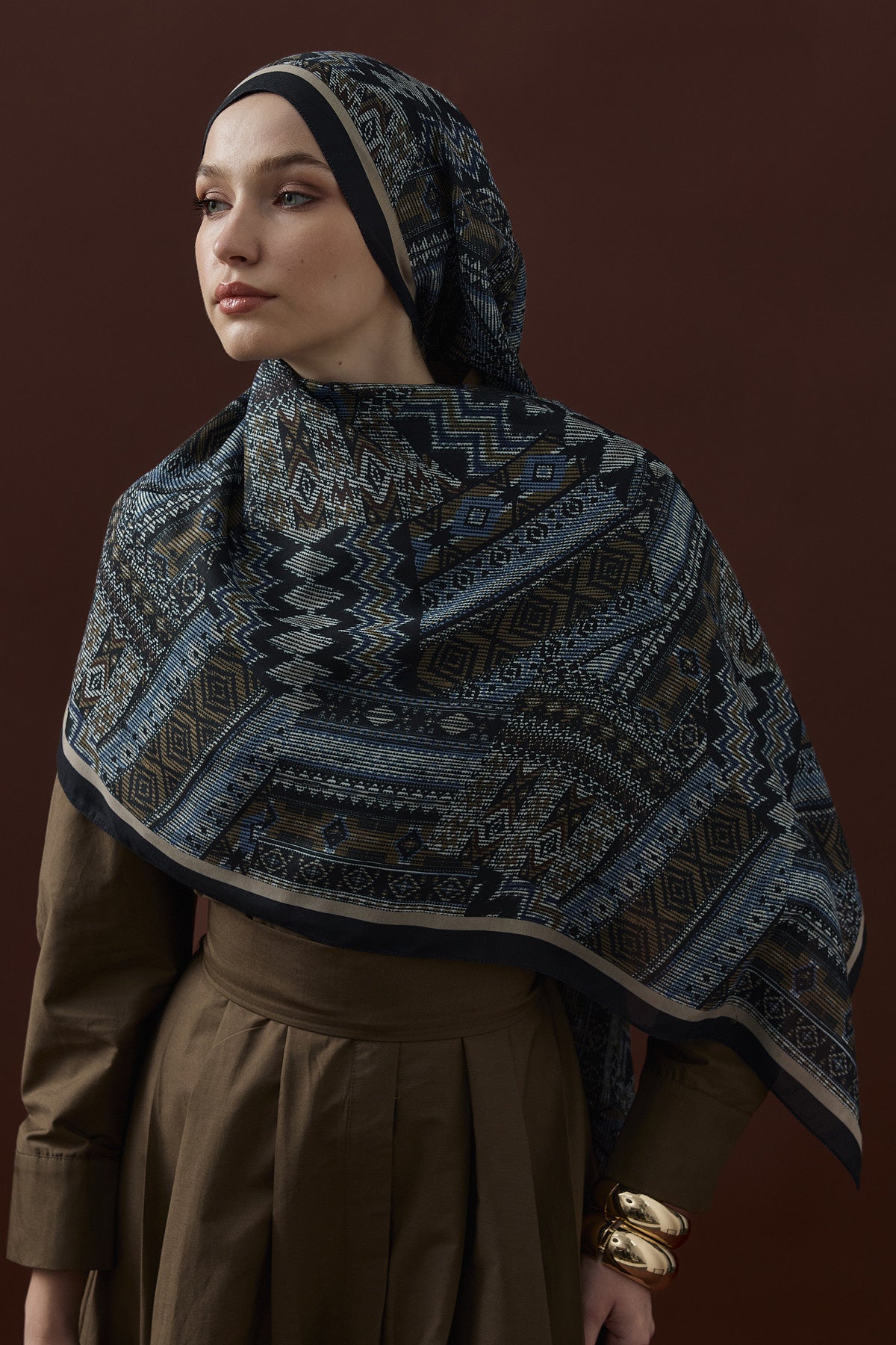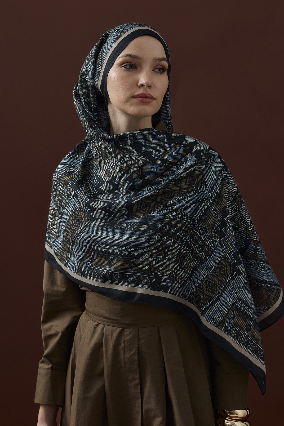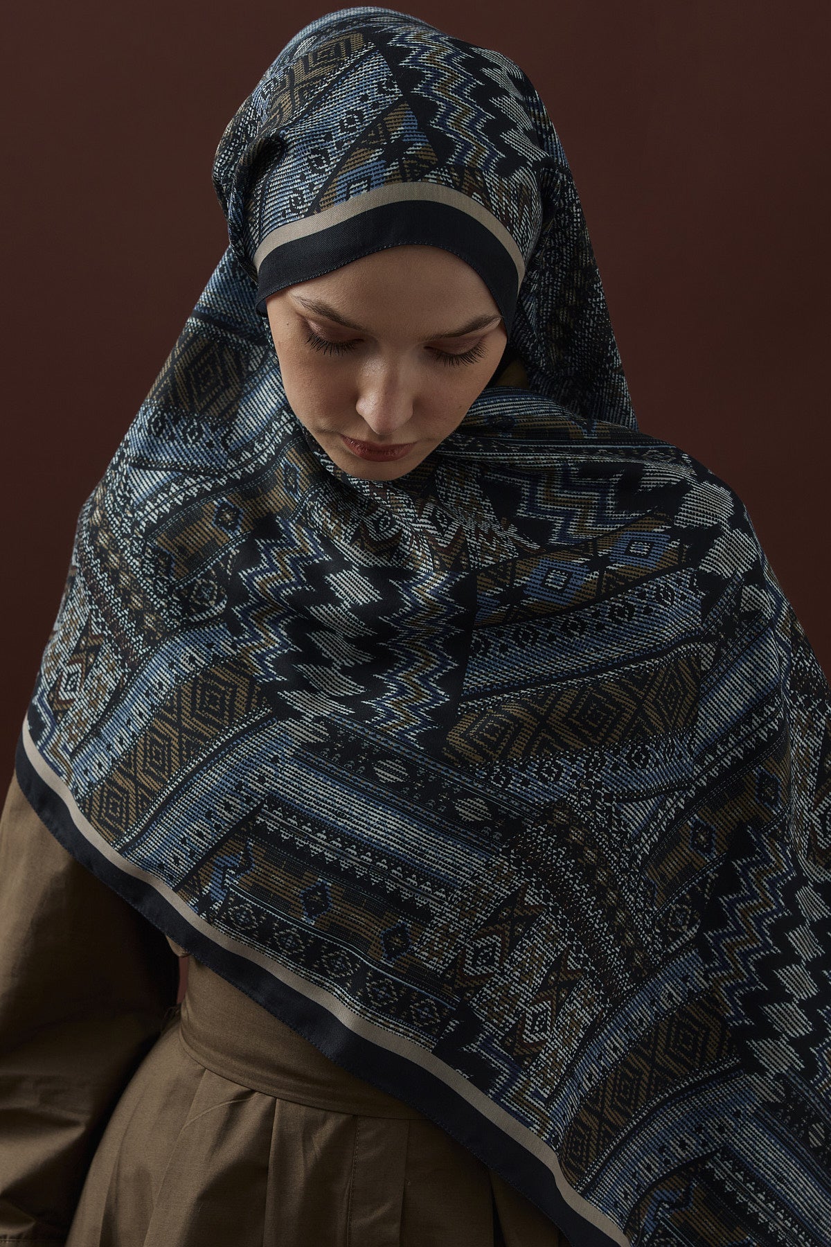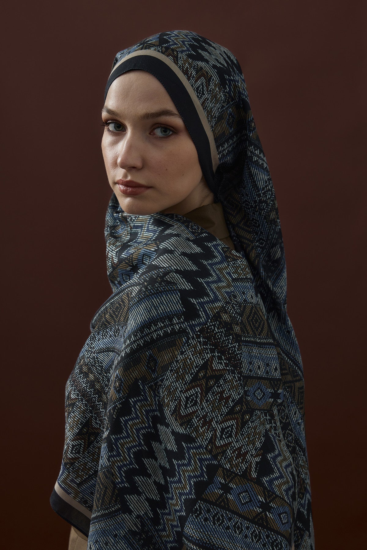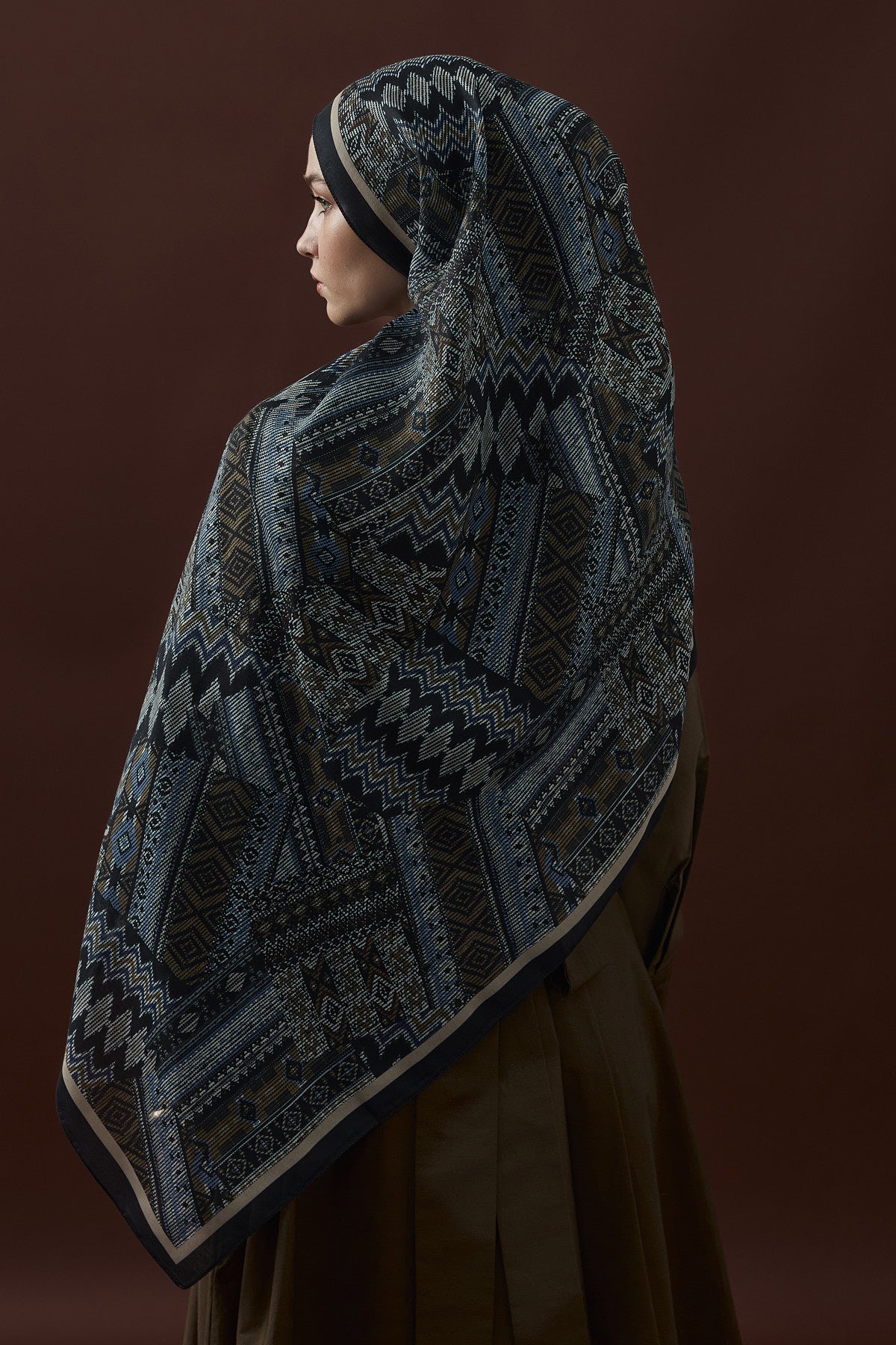 Winter Echoes Anatolian Loop Desen Şal – Lacivert, klasik mavinin asaleti ile Anadolu desenlerinin zarif motiflerini buluşturan özel bir tasarımdır. Modern, şık ve zamansız bir görünüm arayan kadınlar için mükemmel bir seçimdir.
