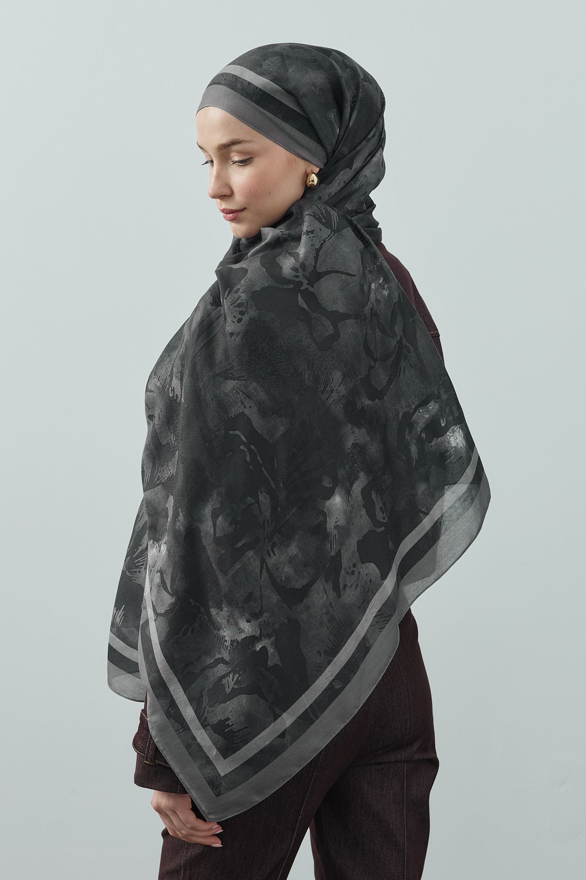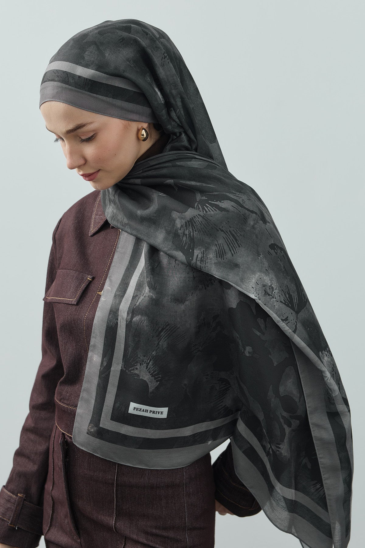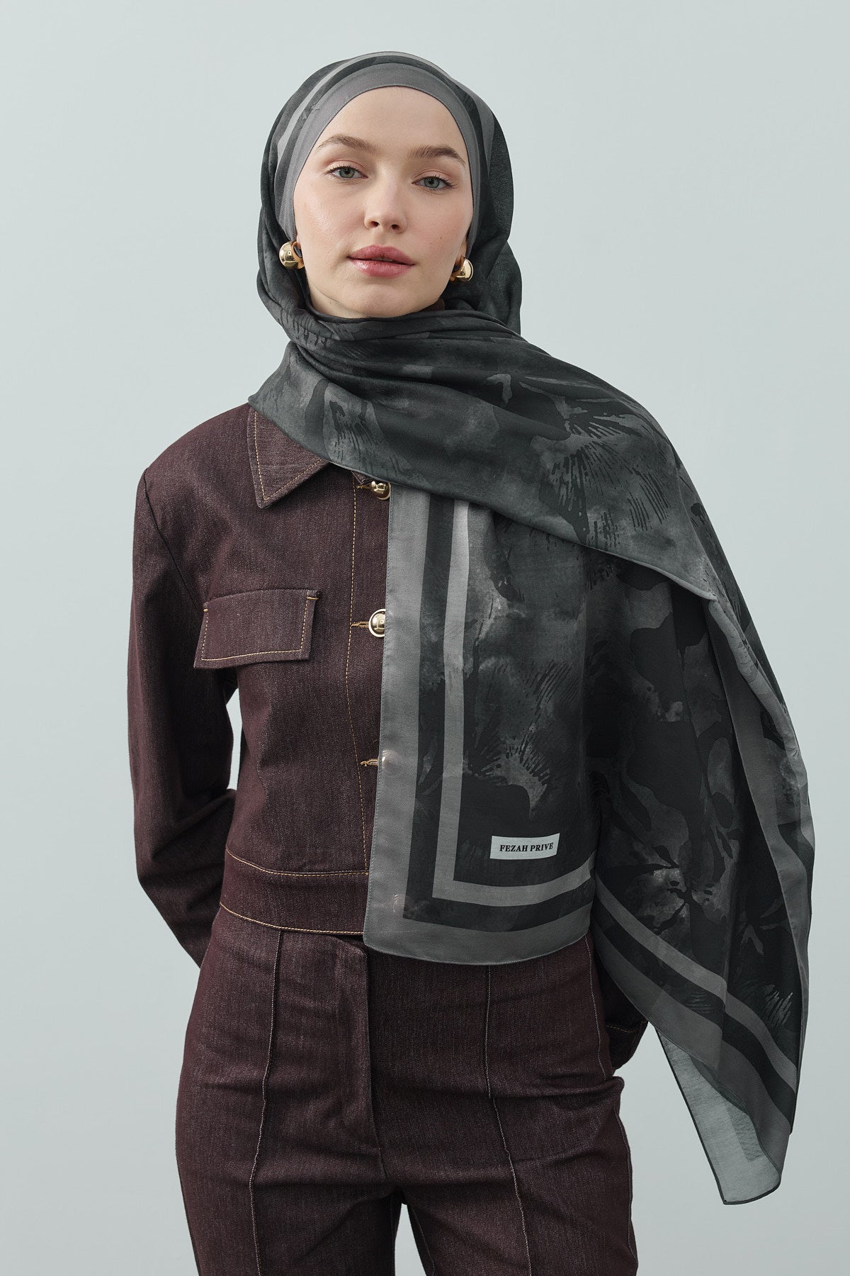 Winter Echoes Mansion Garden Desen Şal – Gri, köşk bahçelerindeki zarif çiçeklerin dingin siluetlerinden ilham alır. Bu koleksiyonda gri ton, hem gökyüzünün sessizliğini hem de taş yolların sakinliğini yansıtır. Her desen dokusu, bahçenin gizli güzelliklerini ilmek ilmek anlatır.
