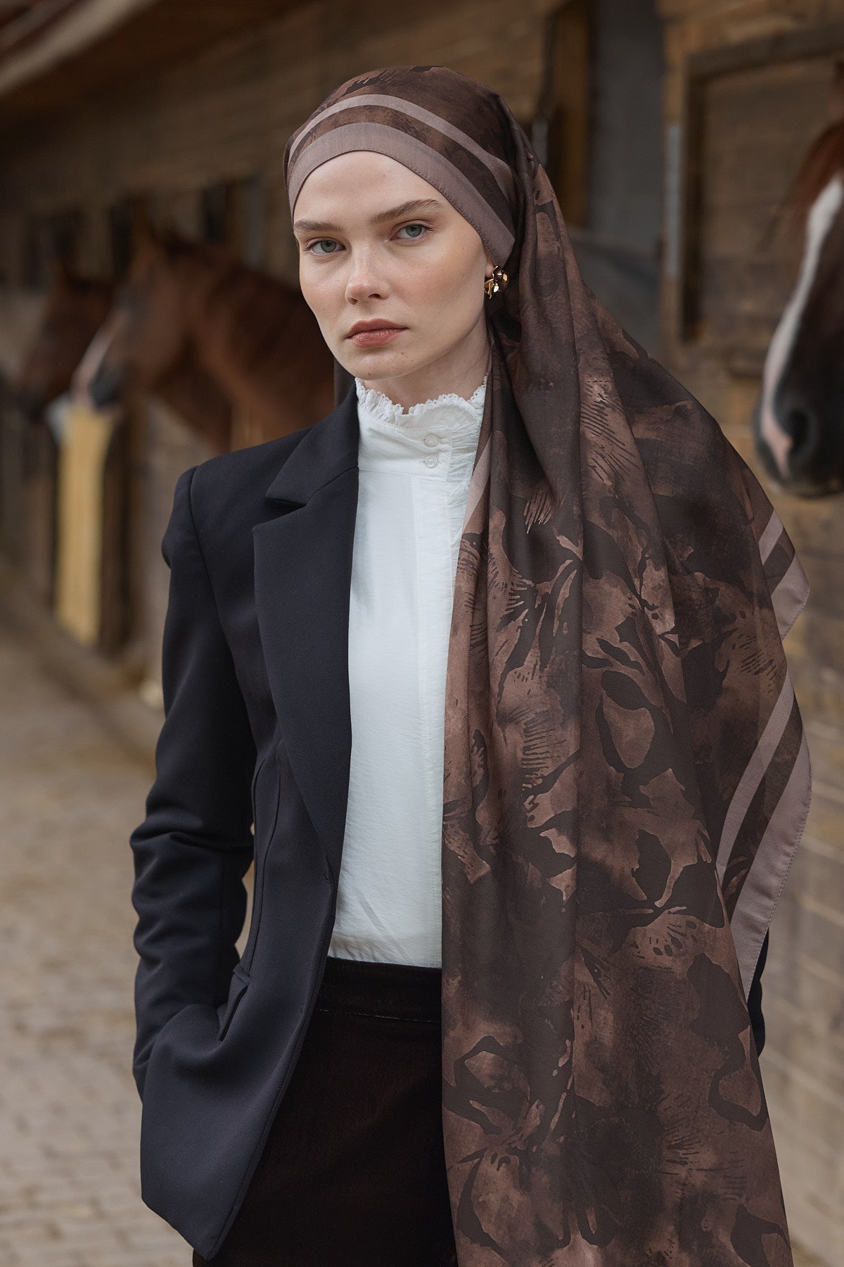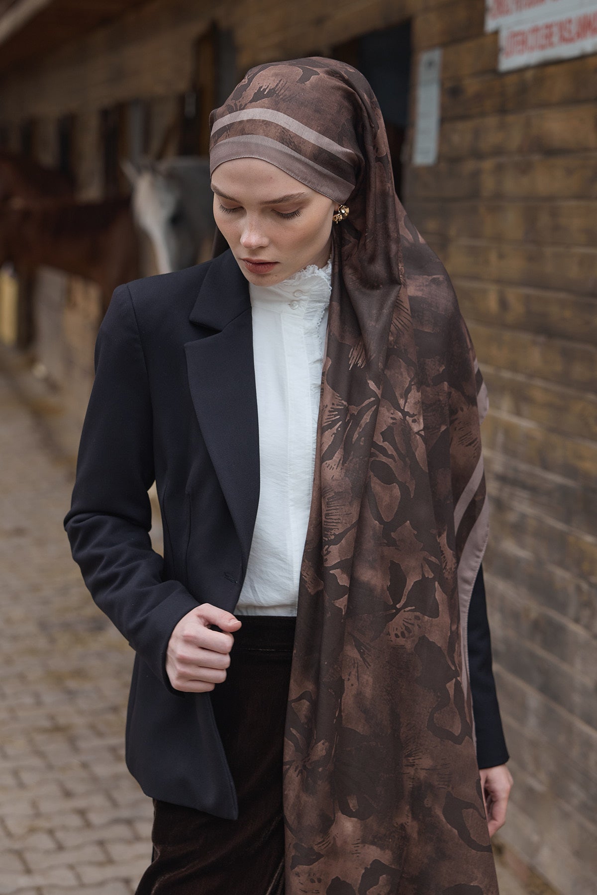 Winter Echoes Mansion Garden Desen Şal – Kahverengi, sadece bir aksesuar değil; doğadan ve geçmişten ilham alan zarif bir hikaye taşır.