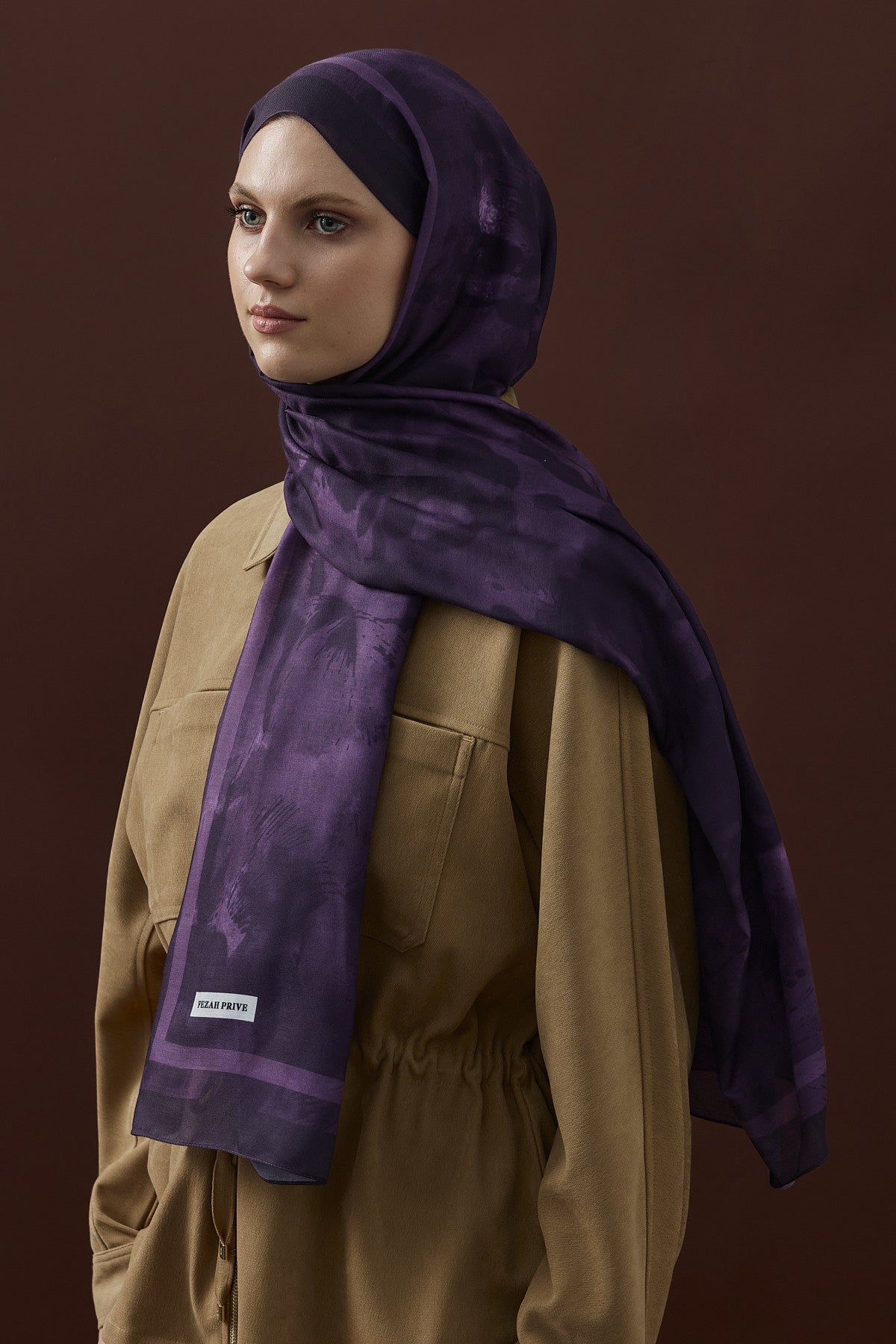 Winter Echoes Mansion Garden Desen Şal – Mor, köşk bahçelerinin derin ve gizemli tonlarından ilham alır. Mor rengi, doğanın kalbinde yer alan nadir çiçeklerin ve yaprakların rengini yansıtarak, zarif bir şıklık sunar.