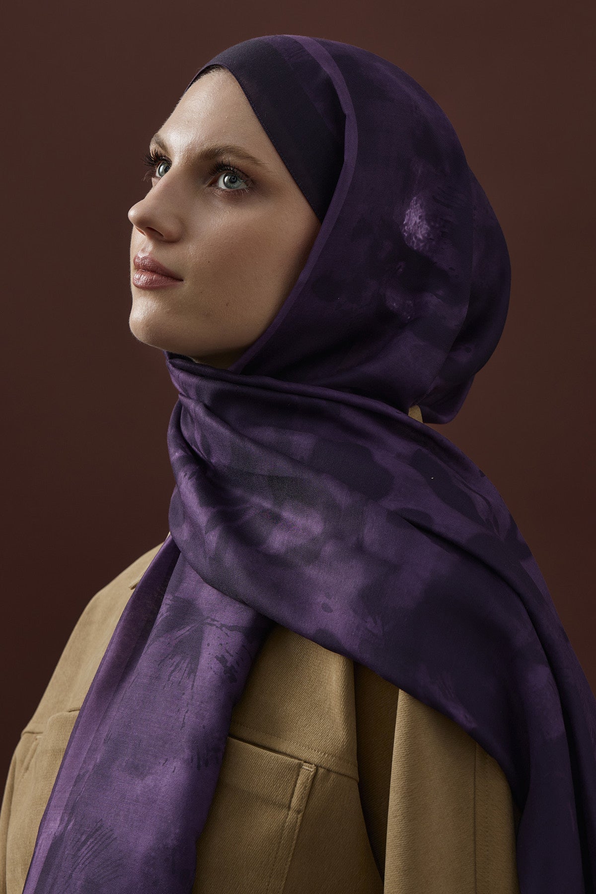Winter Echoes Mansion Garden Desen Şal – Mor, sadece bir aksesuar değil, köşk bahçelerinin derin ve gizemli ruhunu modern yaşamın zarafetiyle buluşturur.