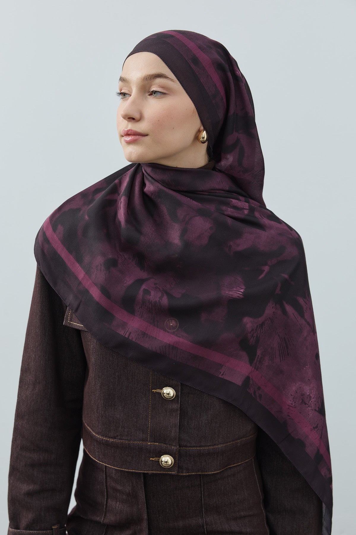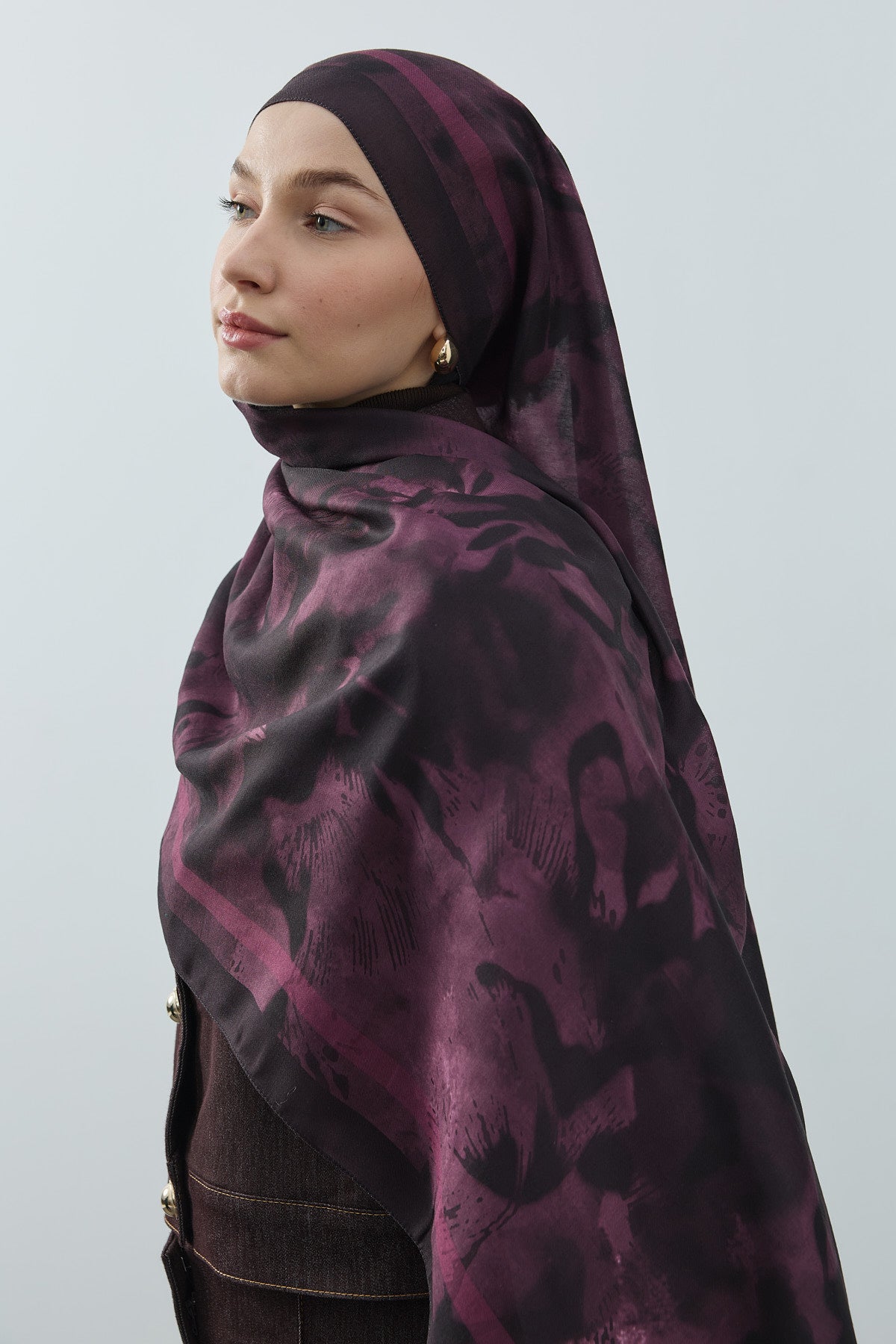 Winter Echoes Mansion Garden Desen Şal – Mürdüm, sadece bir aksesuar değil, köşk bahçelerinin derin ve gizemli ruhunu modern yaşamın zarafetiyle buluşturur.