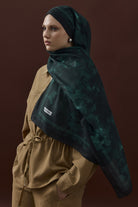 Winter Echoes Mansion Garden Desen Şal – Zümrüt Yeşili, sadece bir aksesuar değil, köşk bahçelerinin derin ve gizemli ruhunu modern yaşamın zarafetiyle buluşturur.