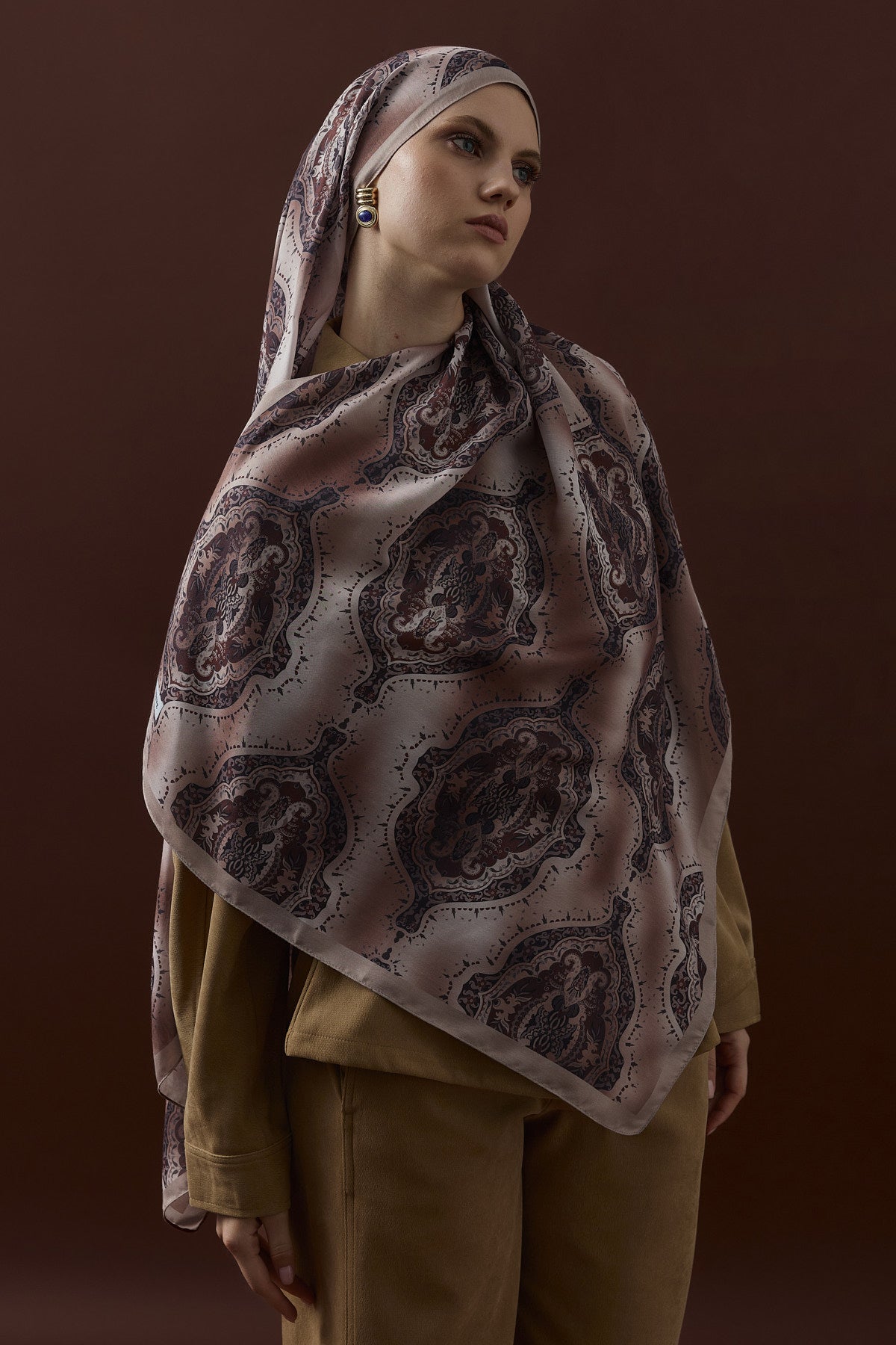 Winter Echoes Palace Texture Desen Şal – Krem, desenin incelikli ton geçişiyle saray dokusunu stilinize taşır.