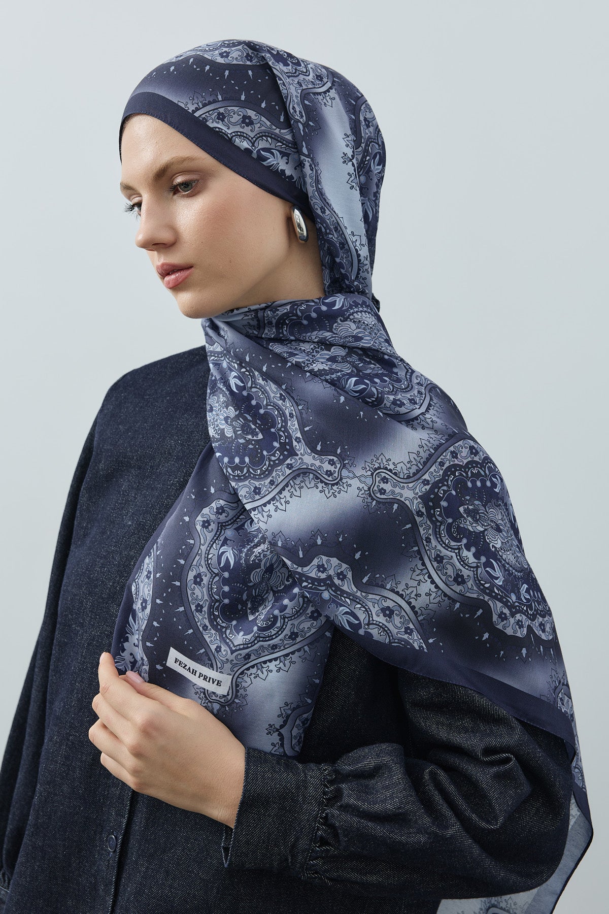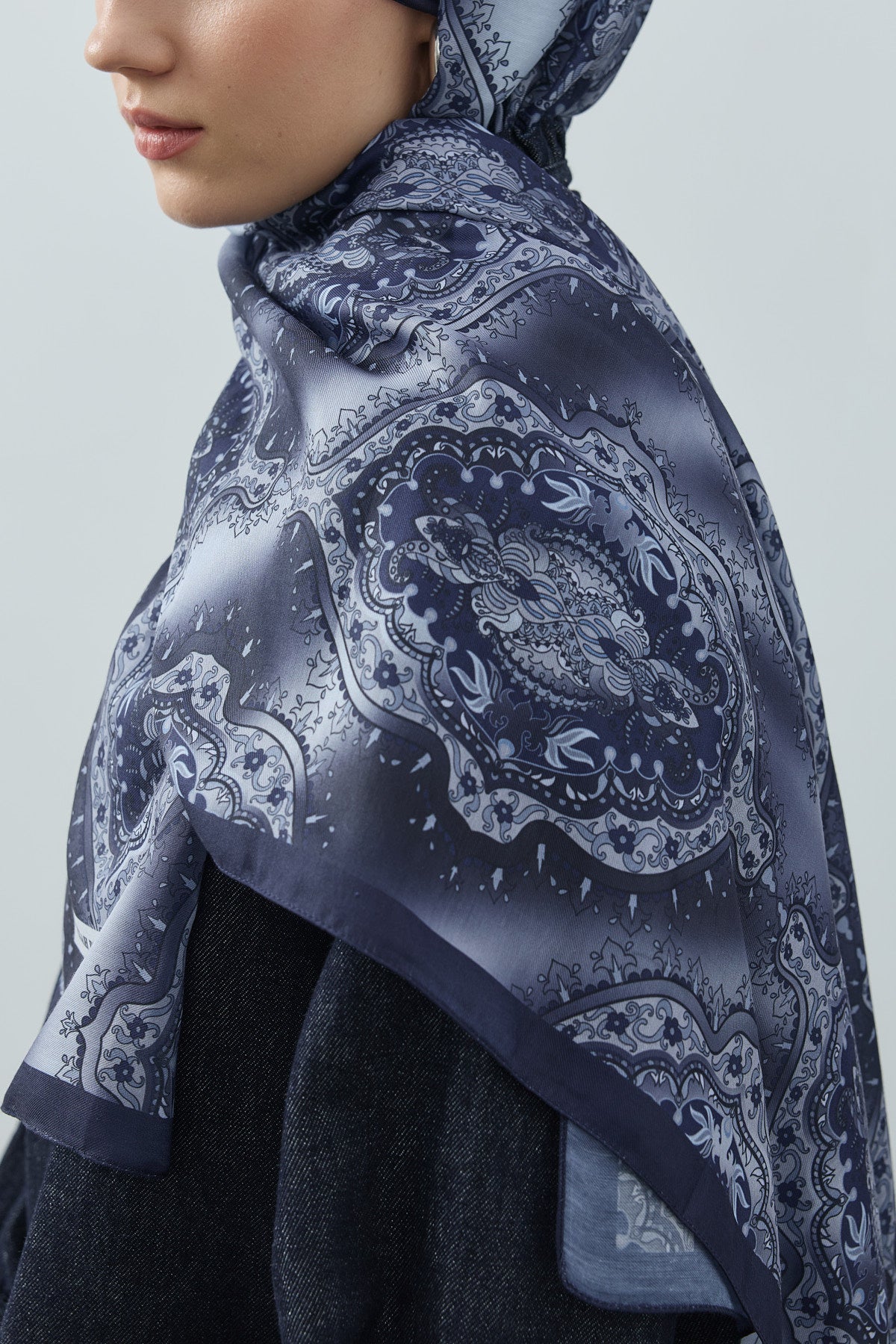 Winter Echoes Palace Texture Desen Şal – Lacivert, sadece bir aksesuar değil; saray ihtişamının zarafetini stilinize taşıyan bir sanat eseri gibidir.
