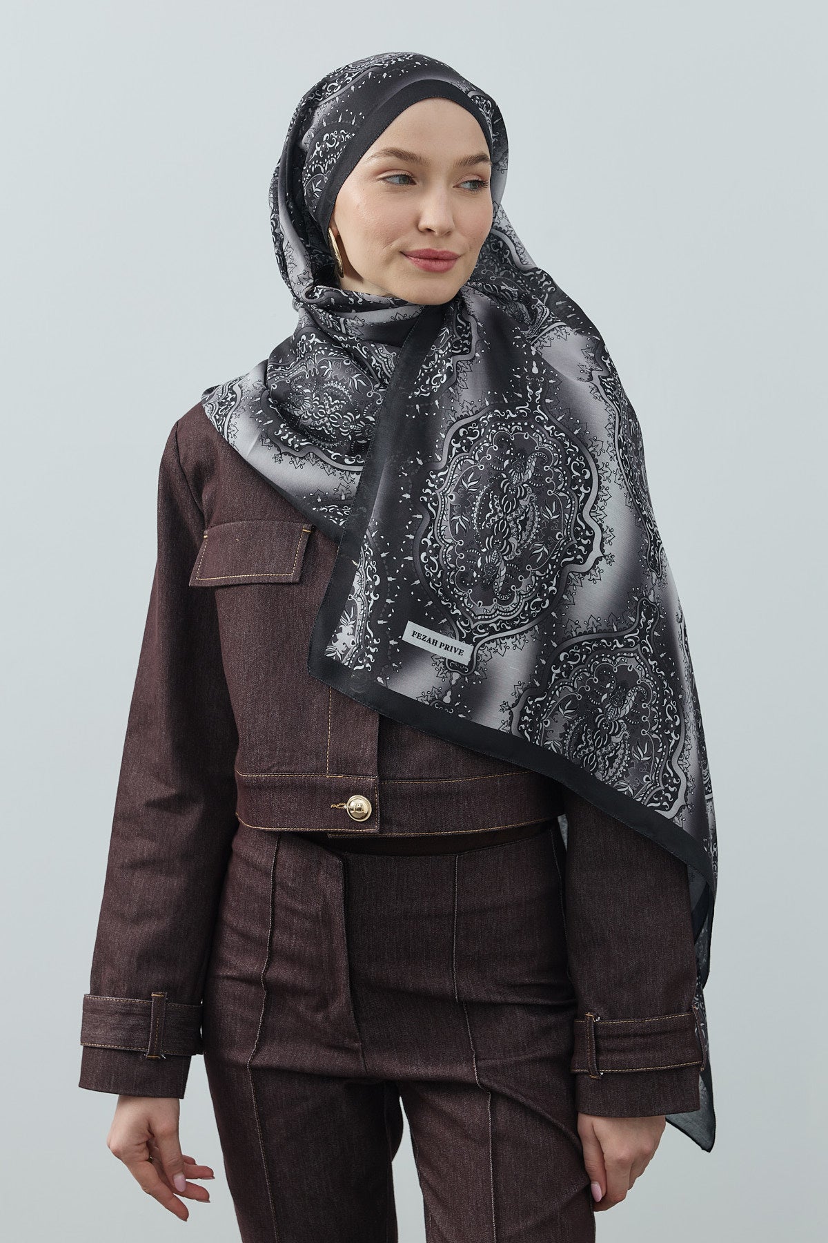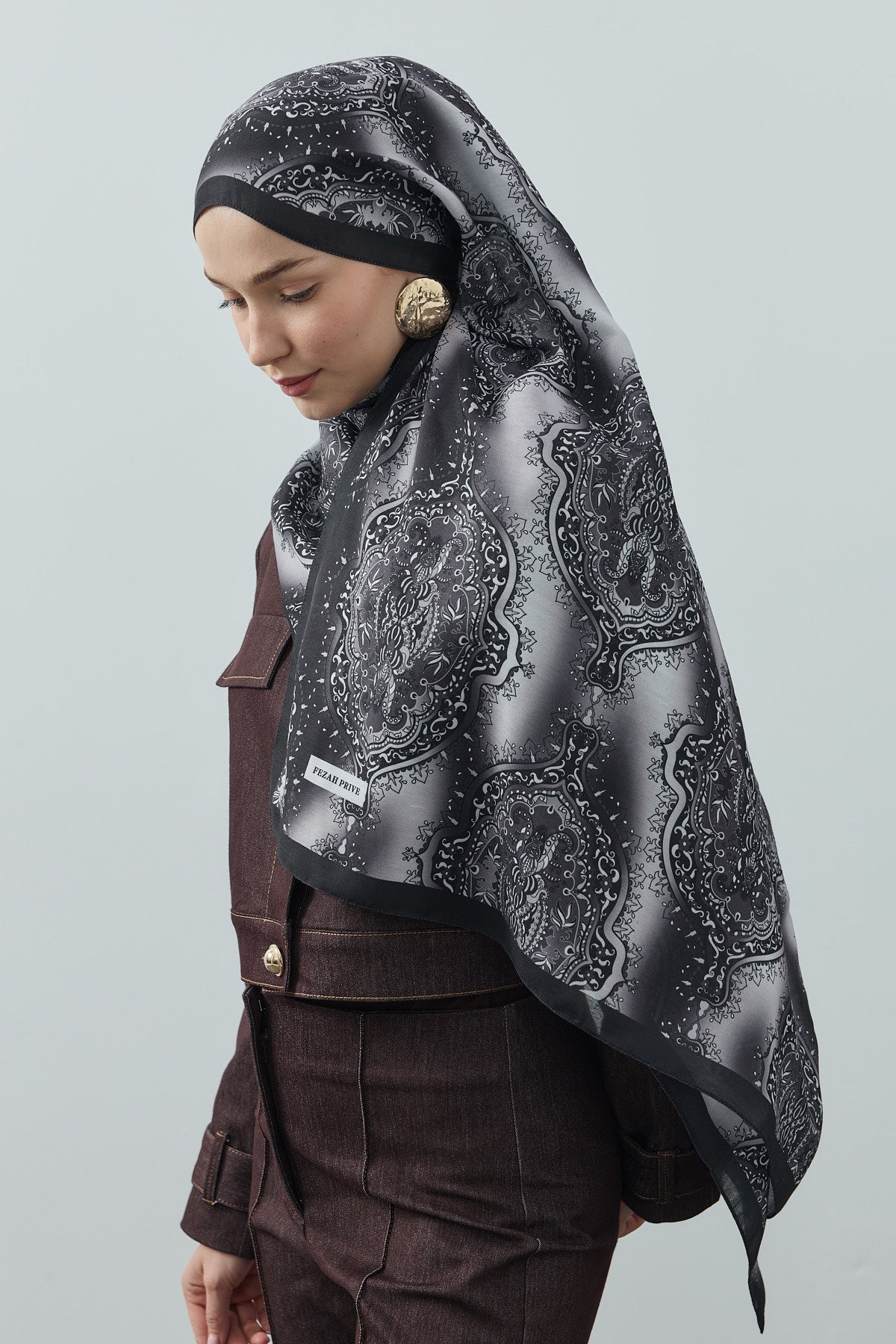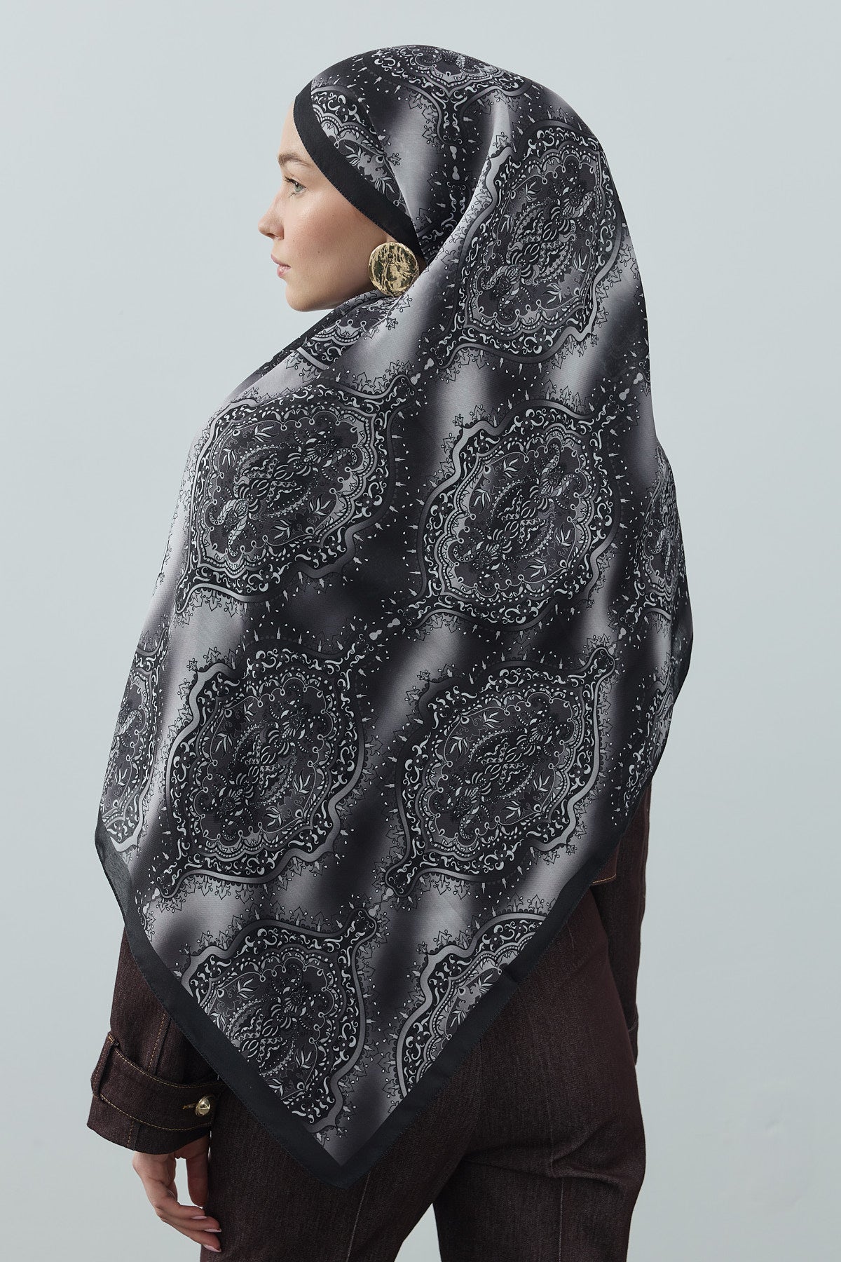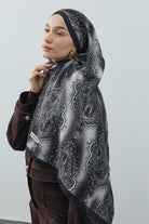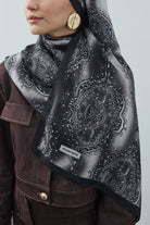 Winter Echoes Palace Texture Desen Şal – Siyah, yalnızca bir aksesuar değil; degradeli saray desenlerinin modern şıklıkla buluştuğu bir ifadedir.