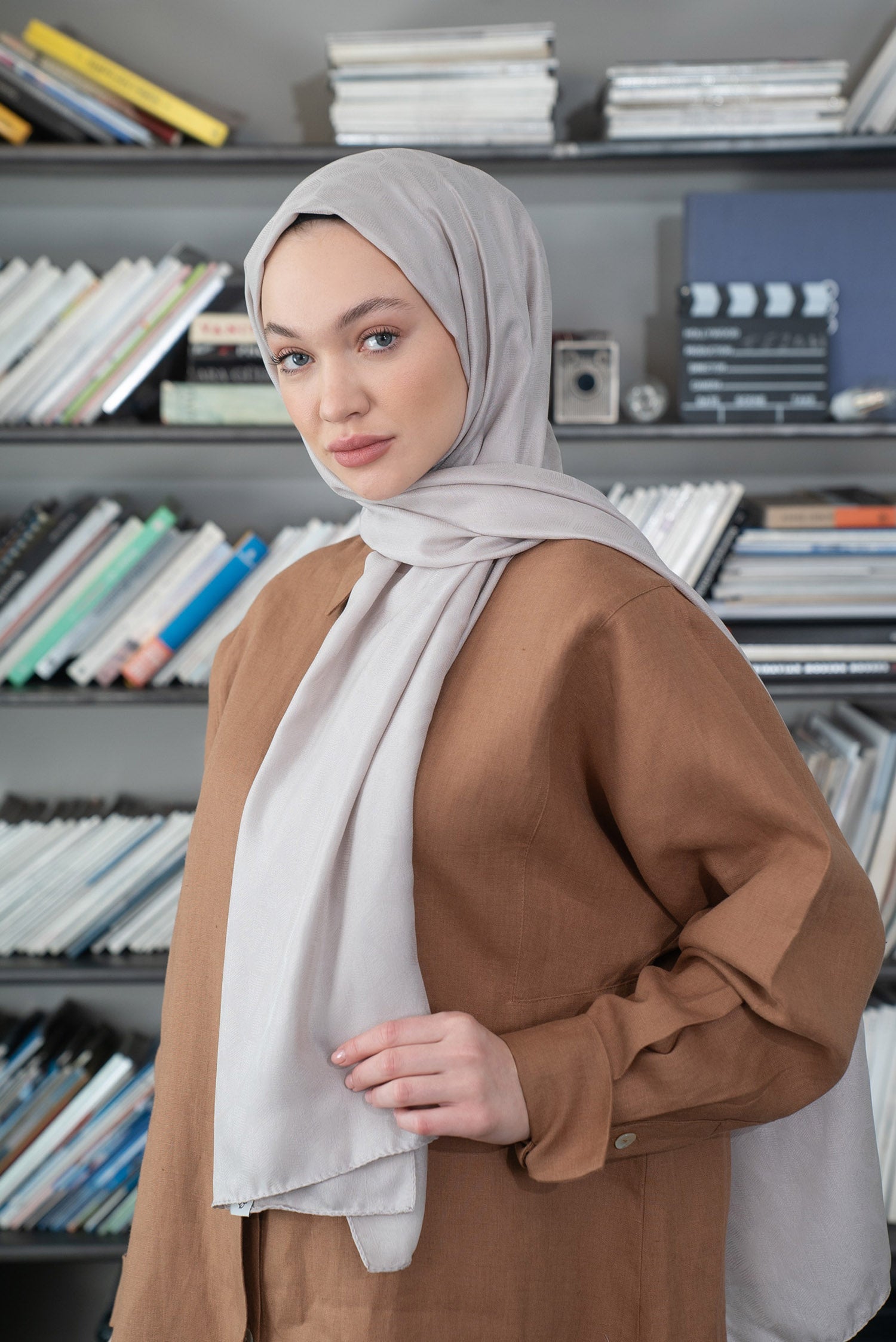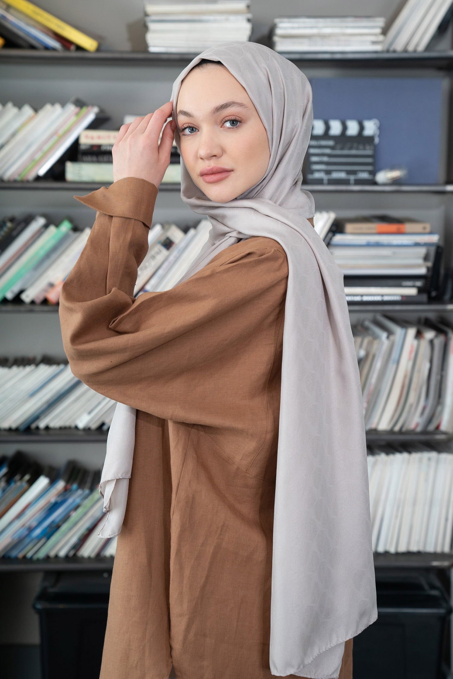 Yaprak Desen İpeksi Jakar Şal Gri