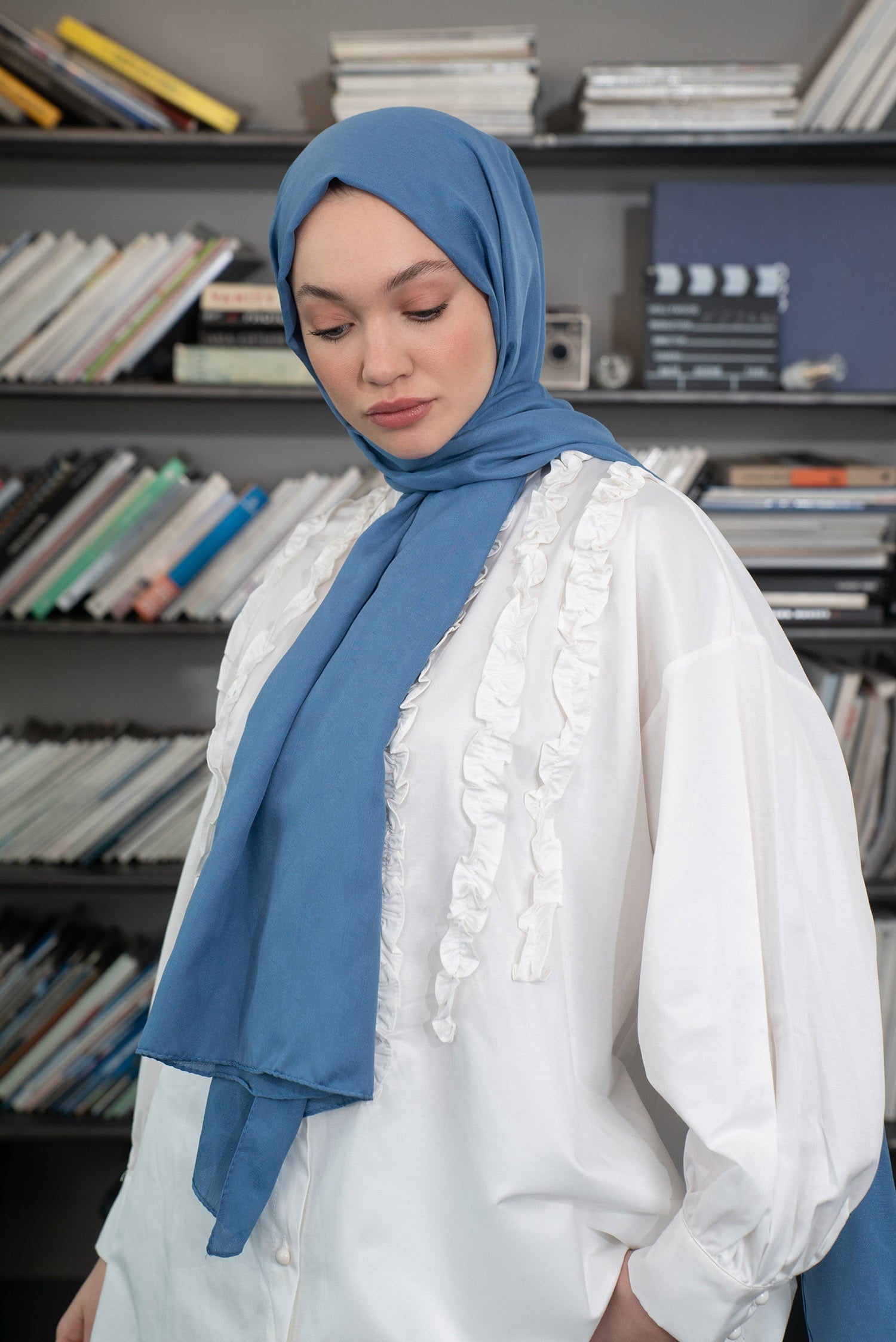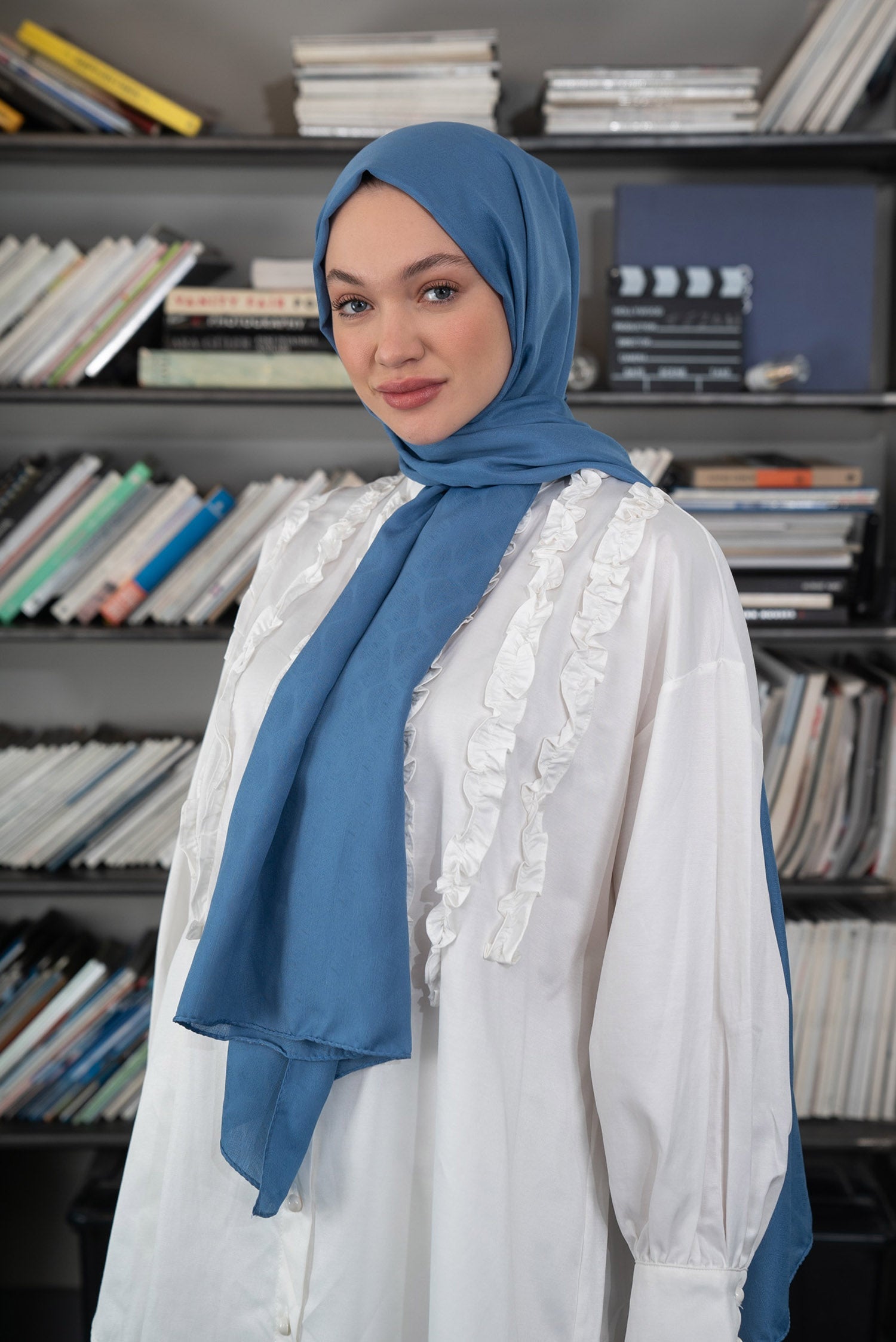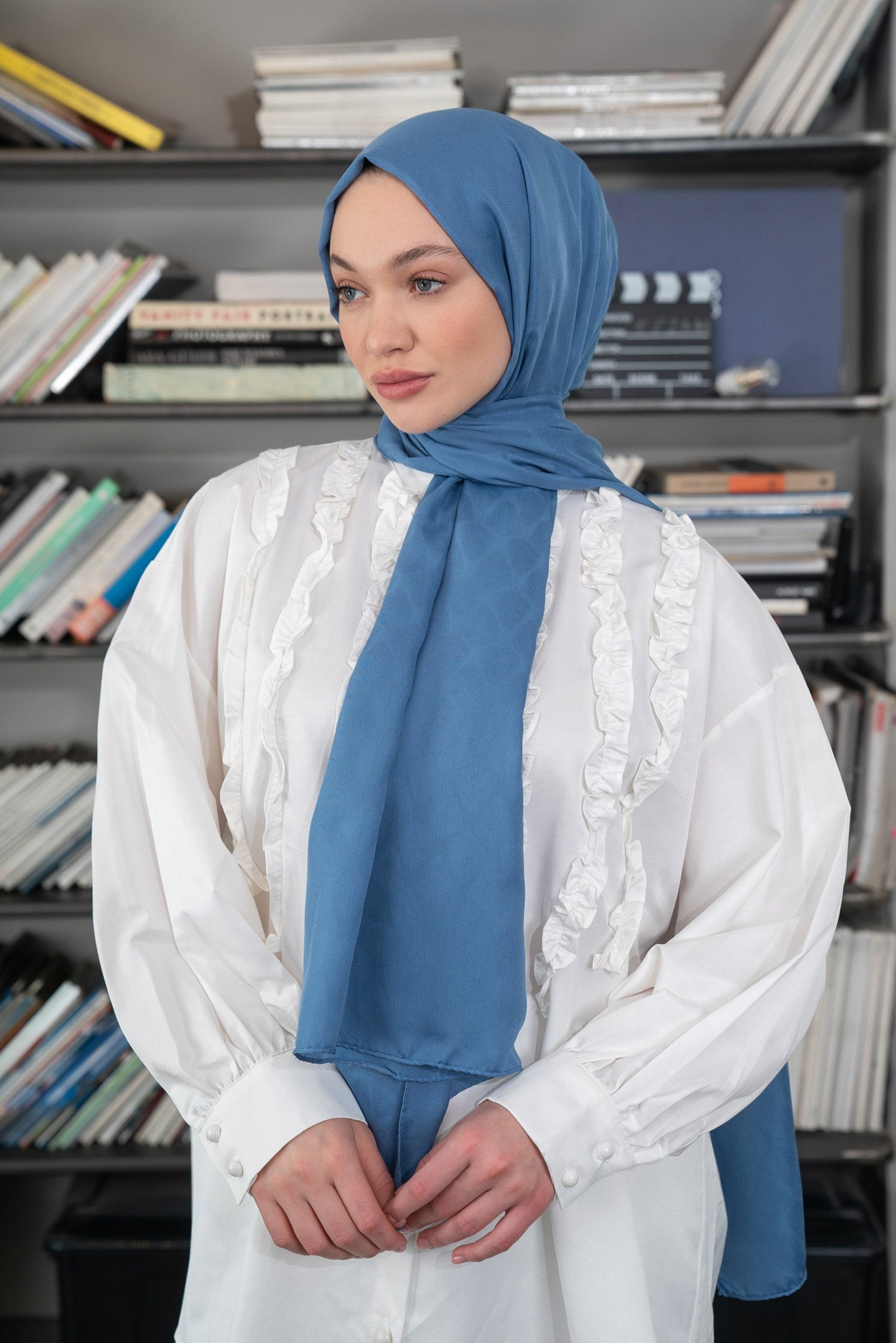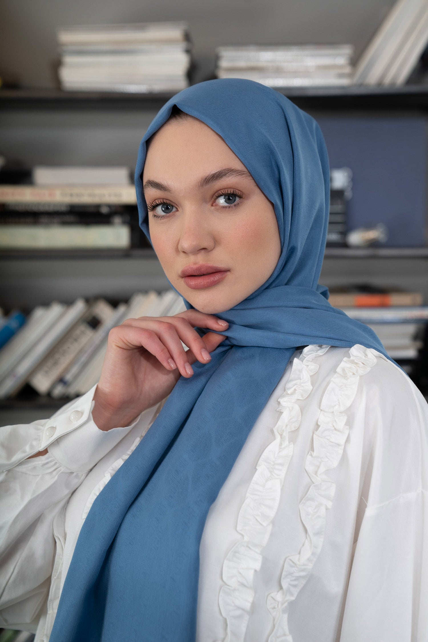 Yaprak Desen İpeksi Jakar Şal İndigo