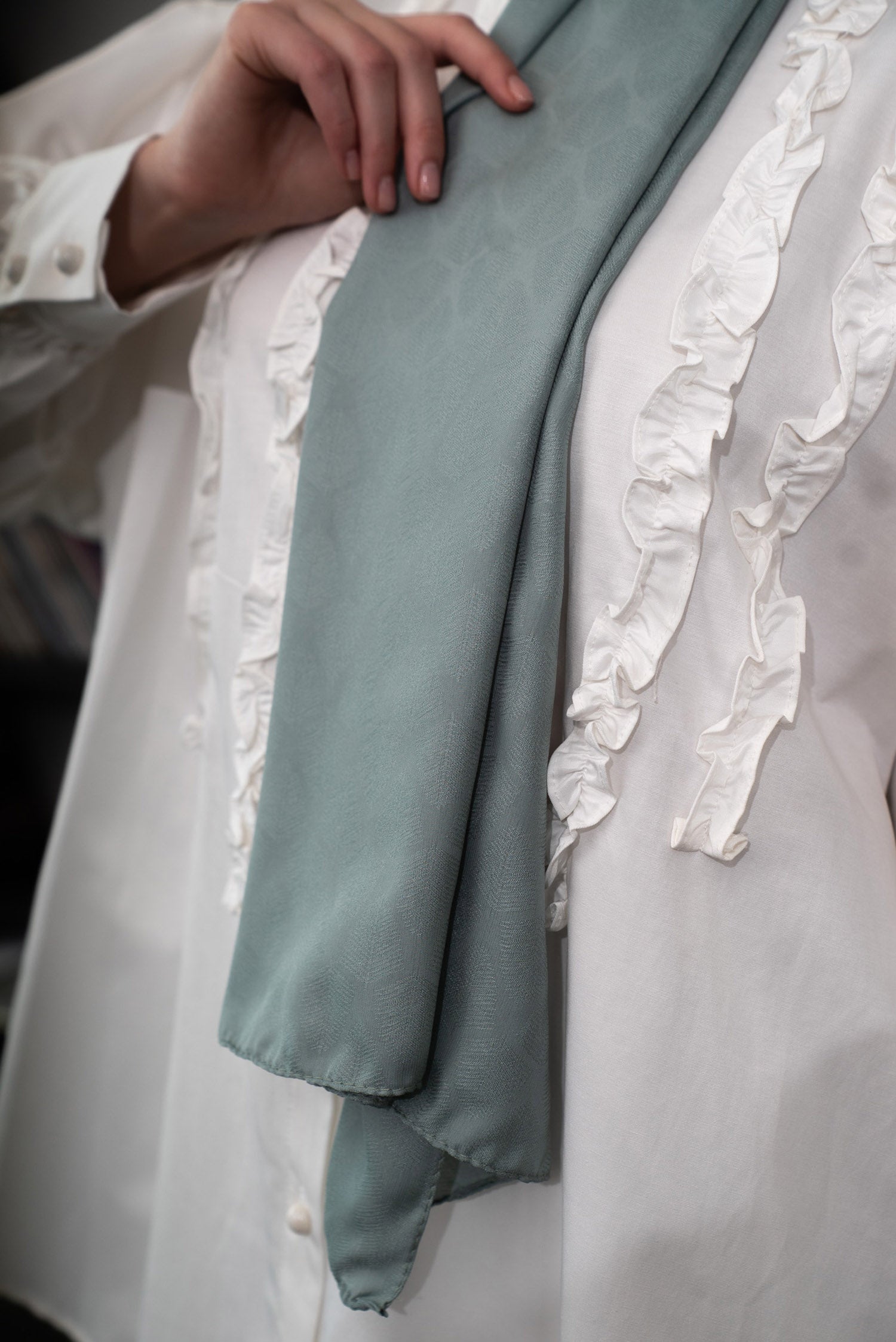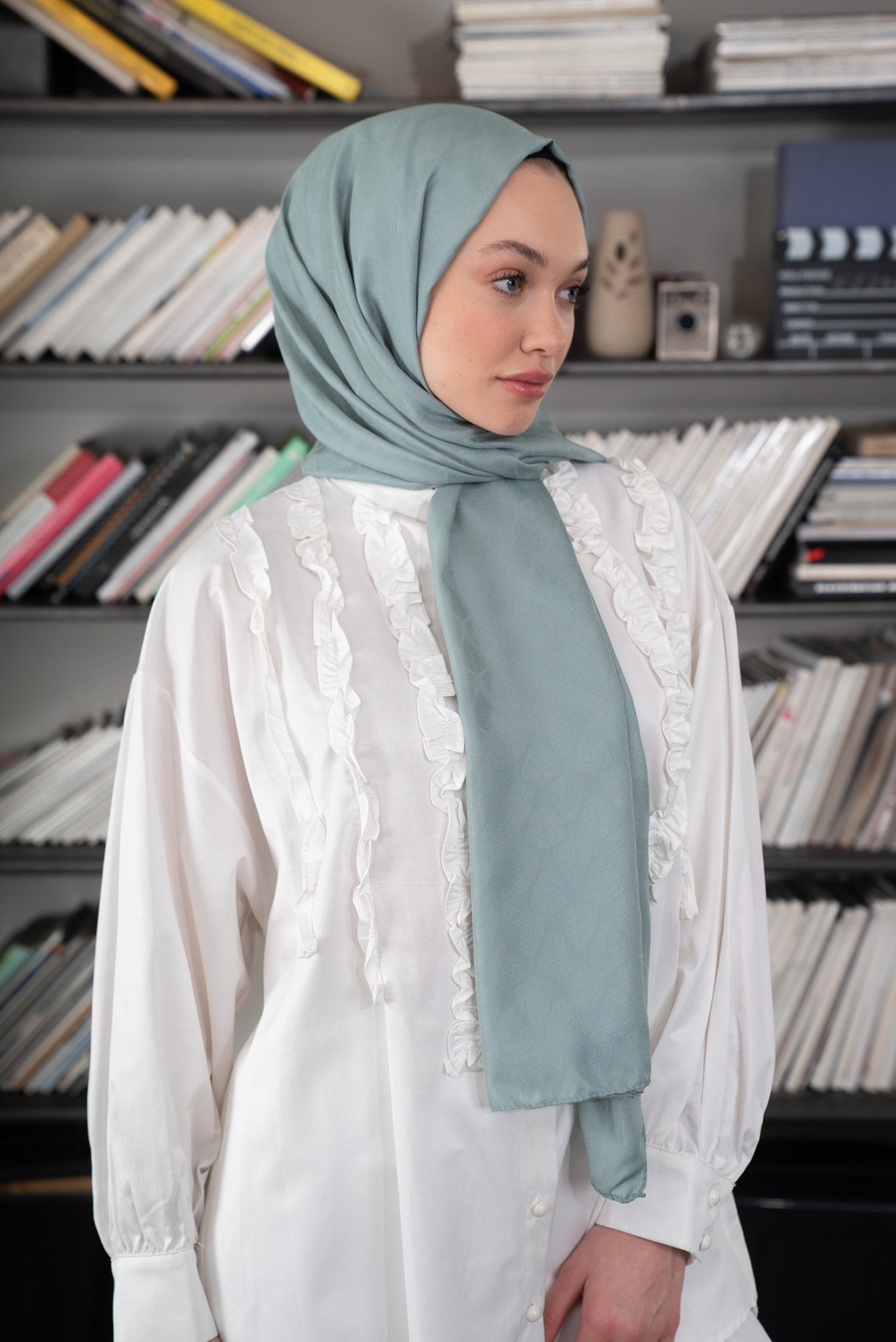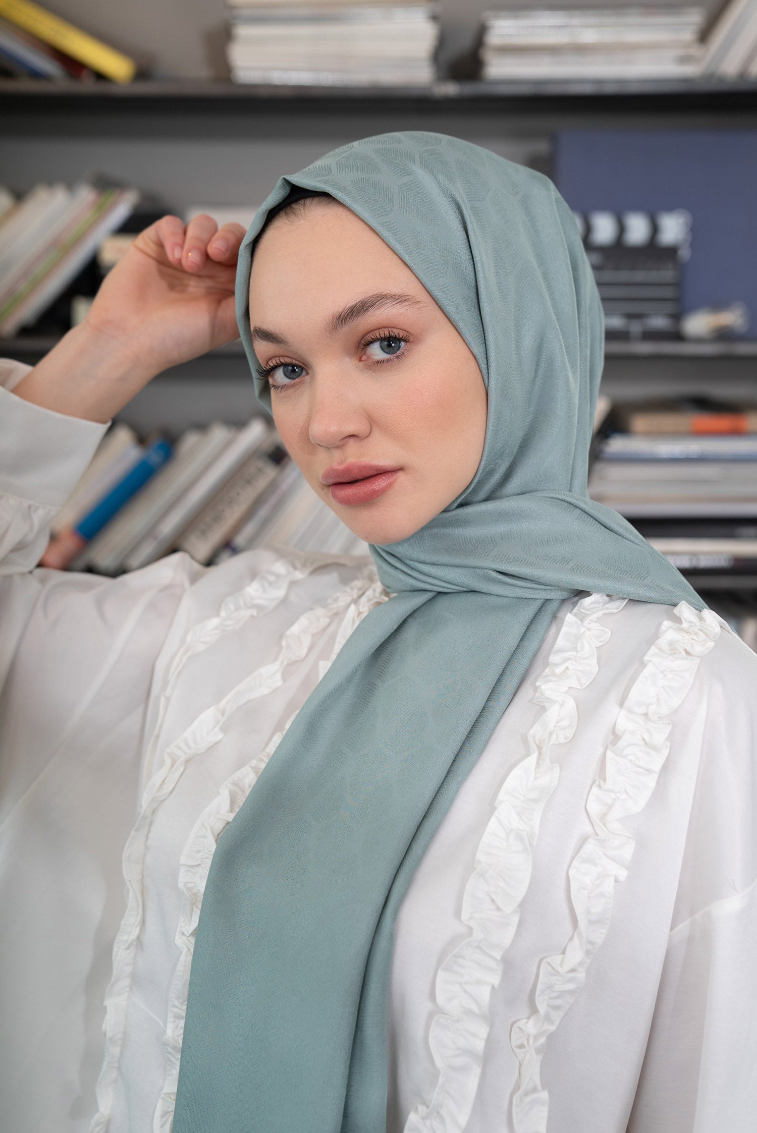 Yaprak Desen İpeksi Jakar Şal Mint