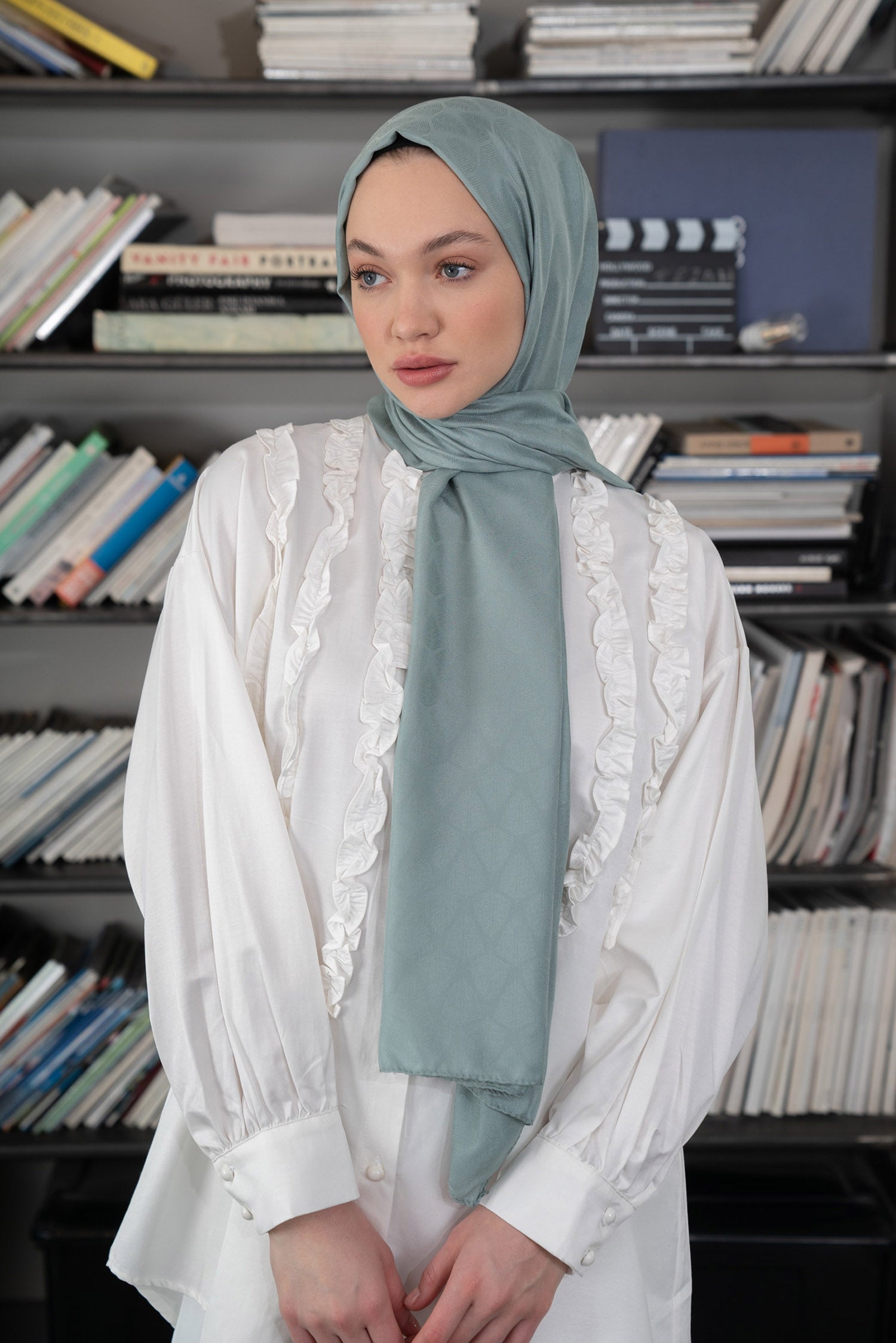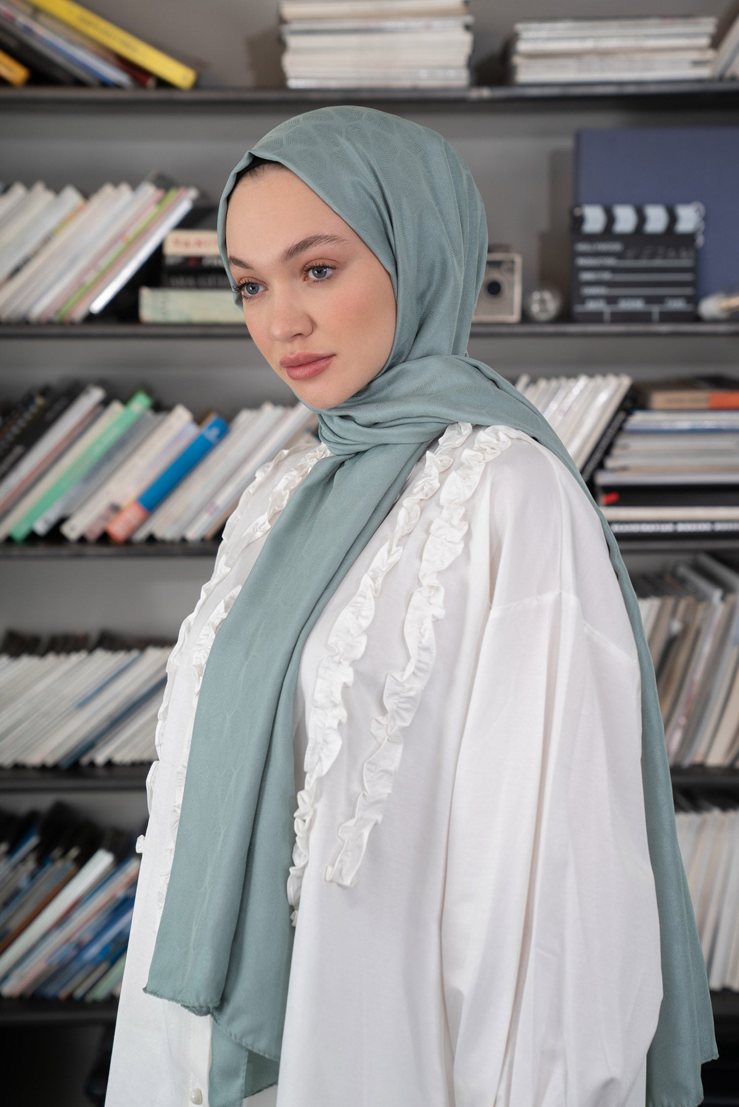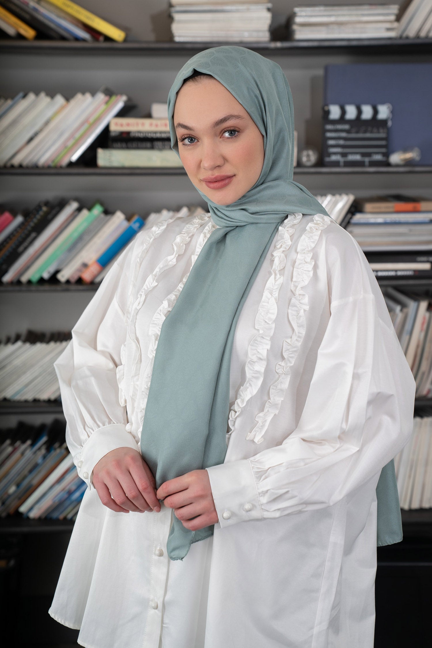 Yaprak Desen İpeksi Jakar Şal Mint