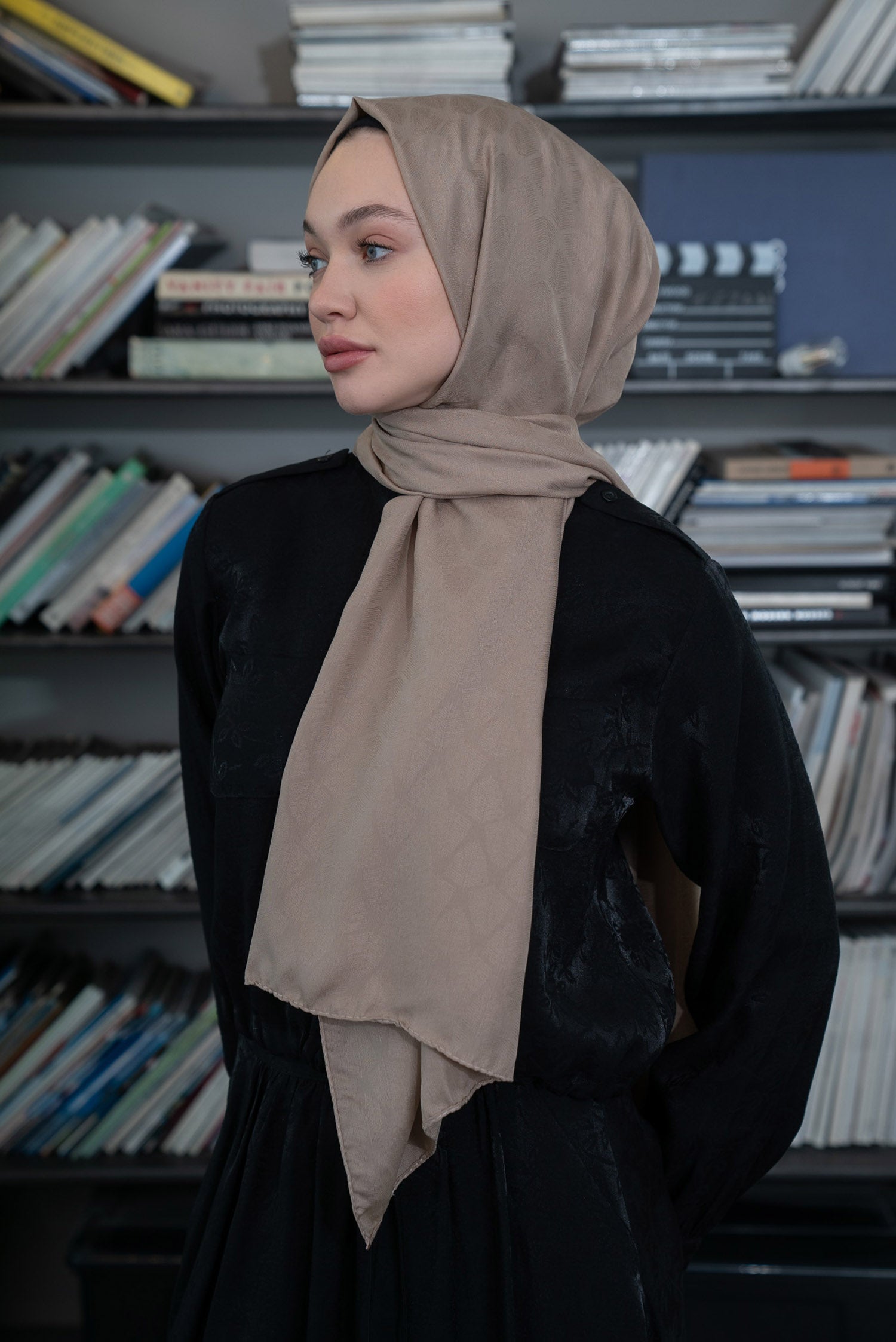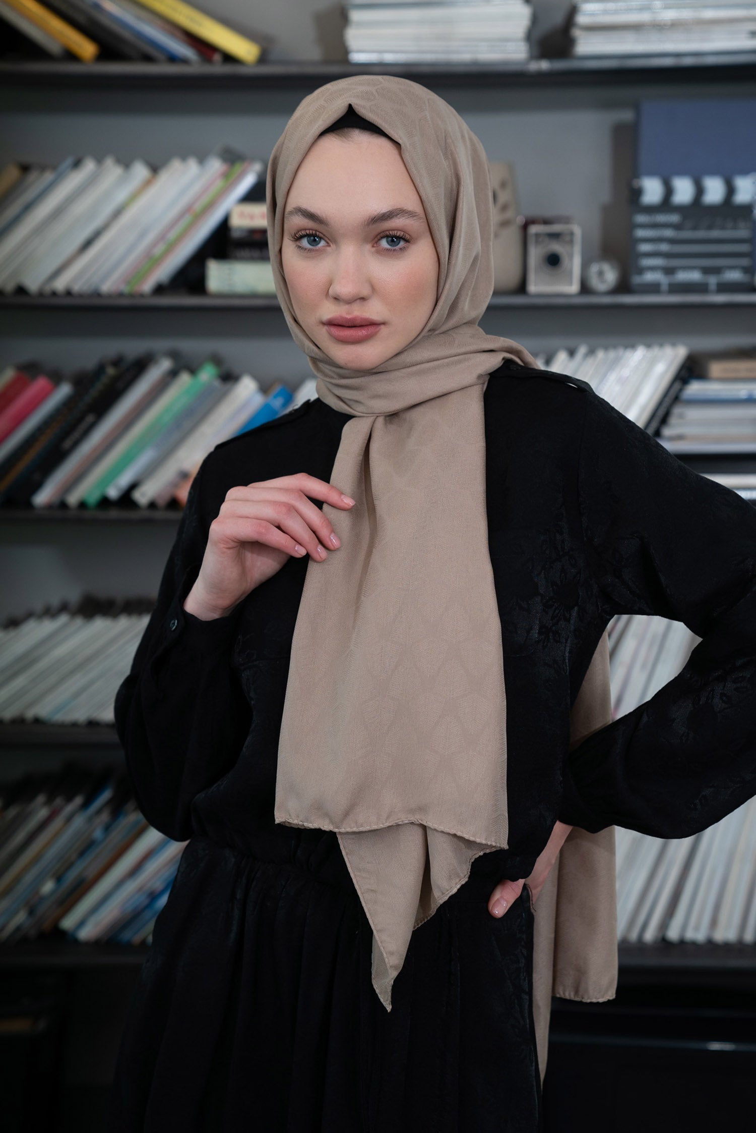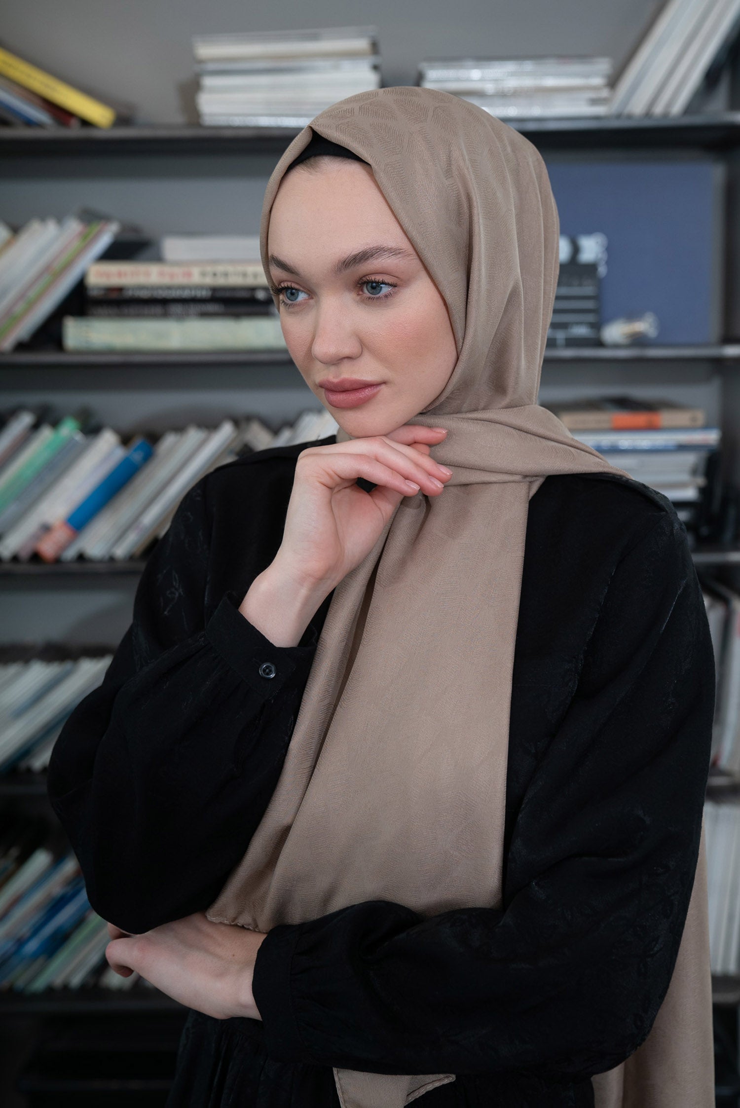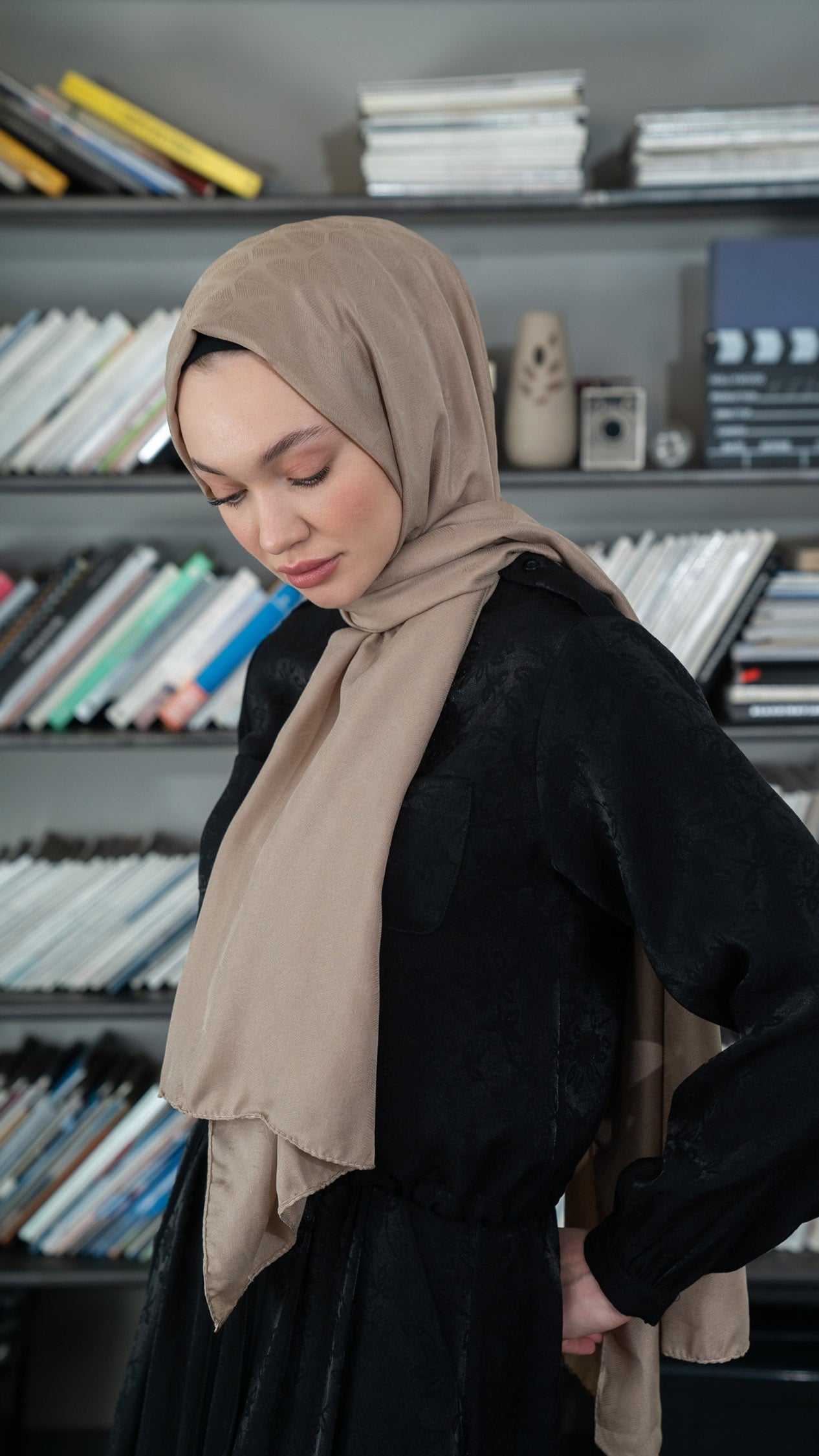 Yaprak Desen İpeksi Jakar Şal Natural Bej