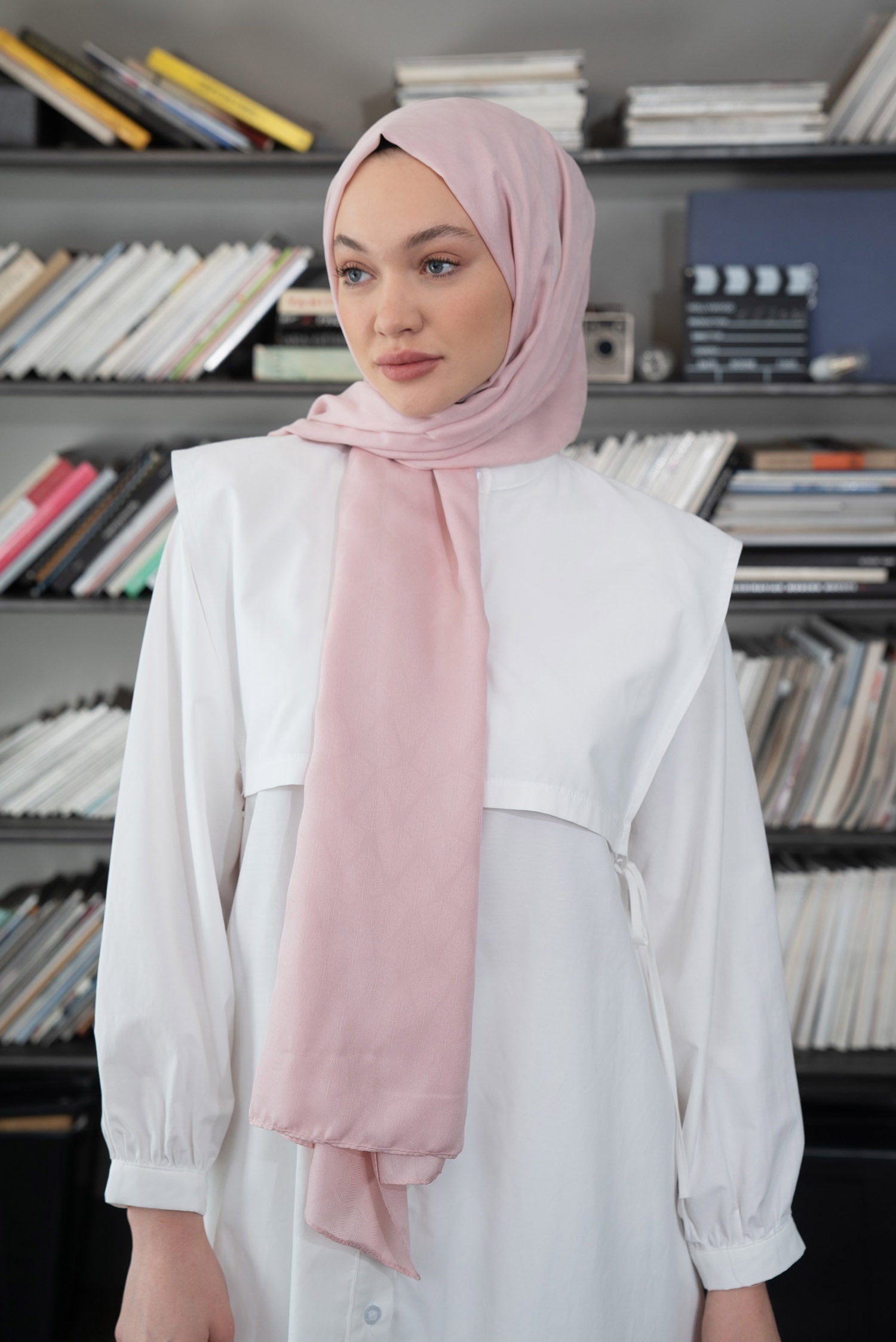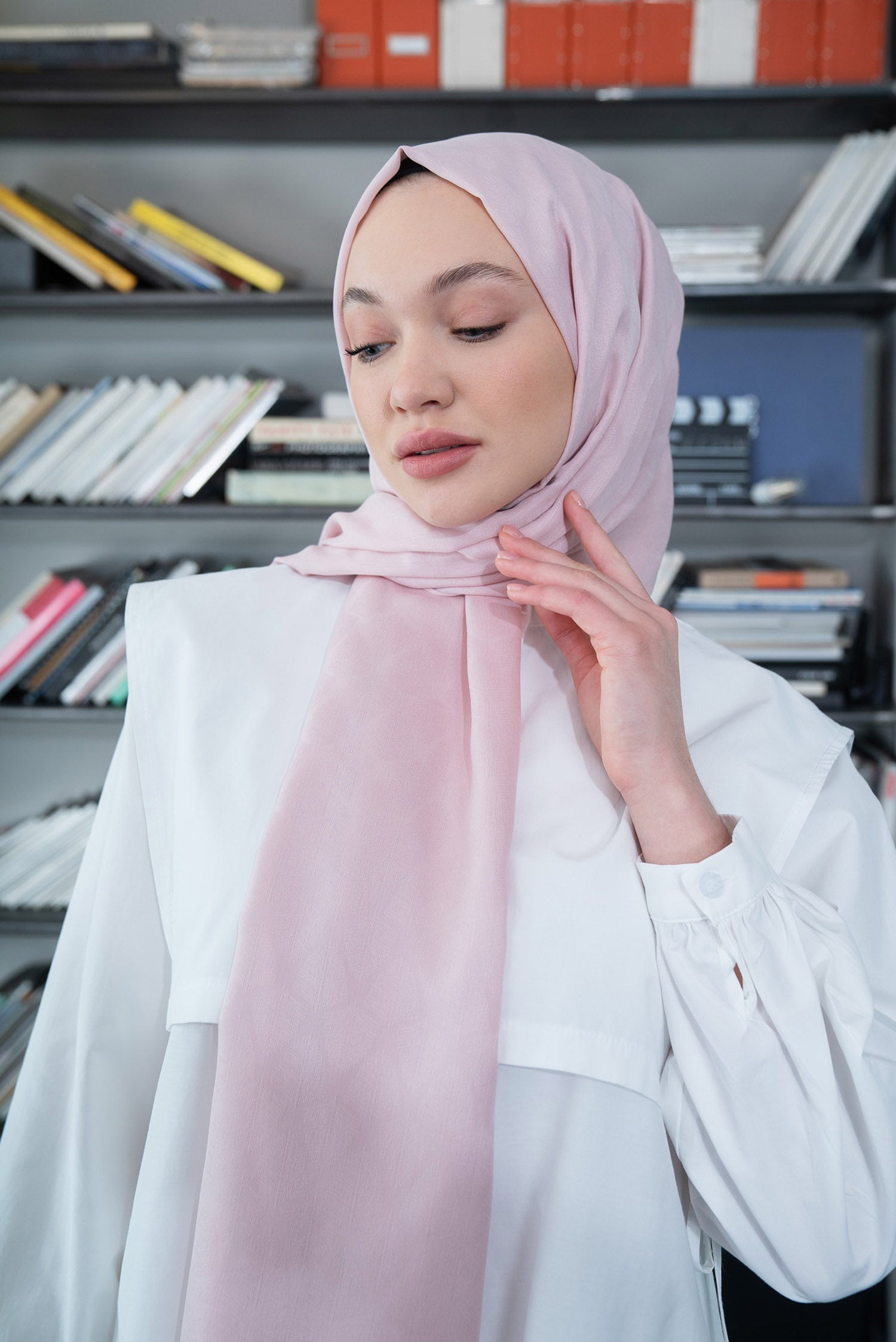 Yaprak Desen İpeksi Jakar Şal Pudra