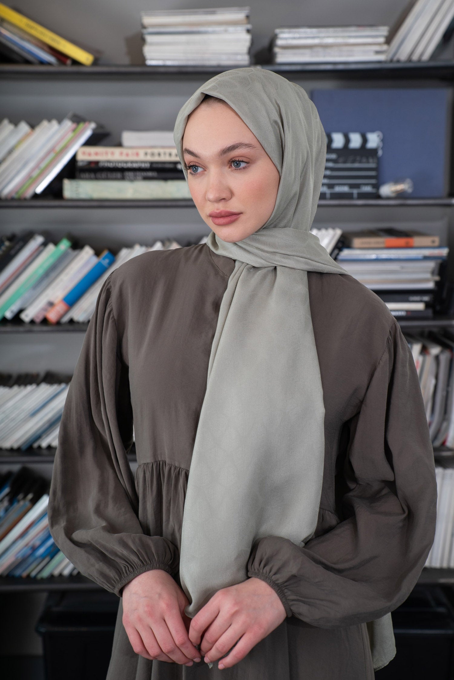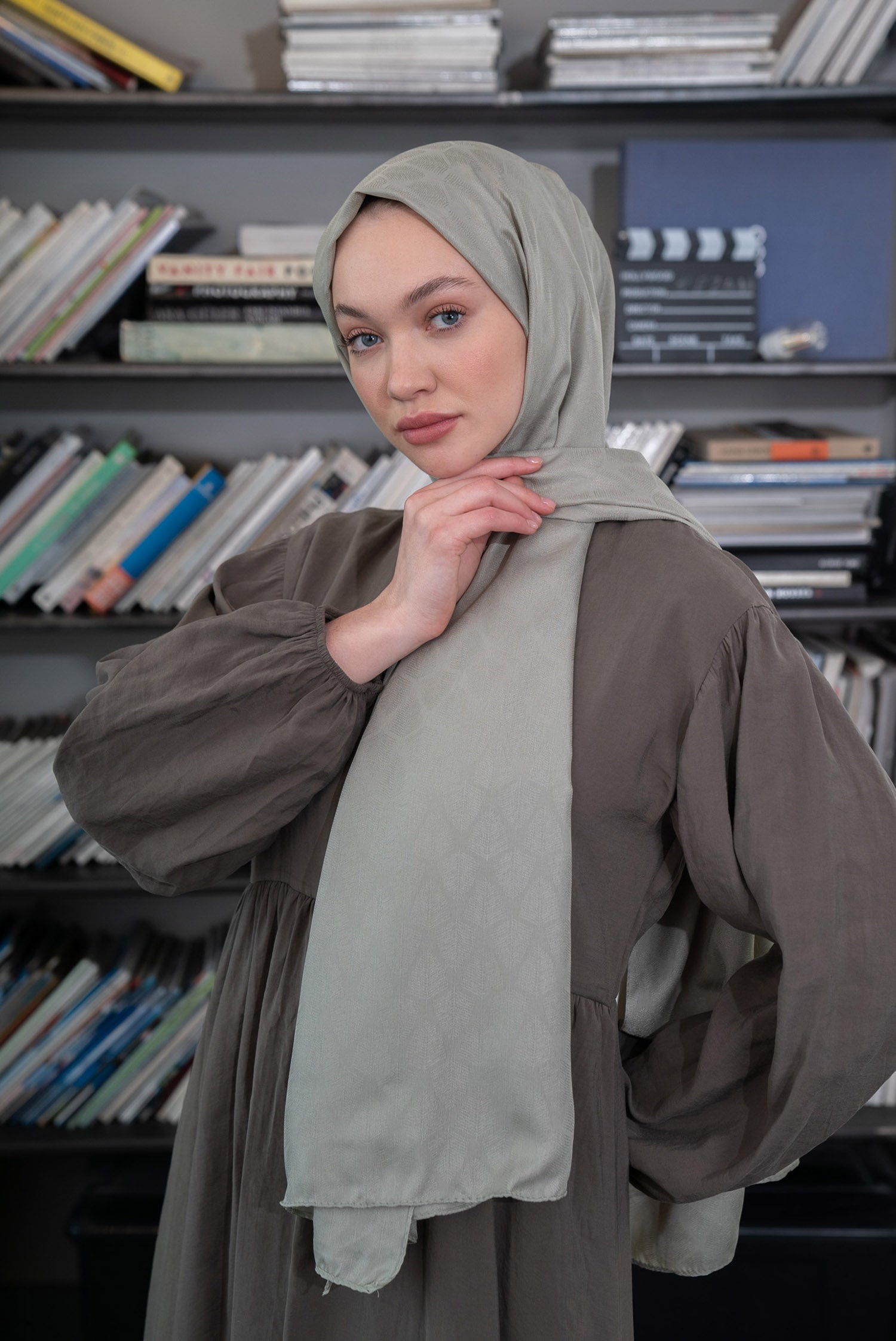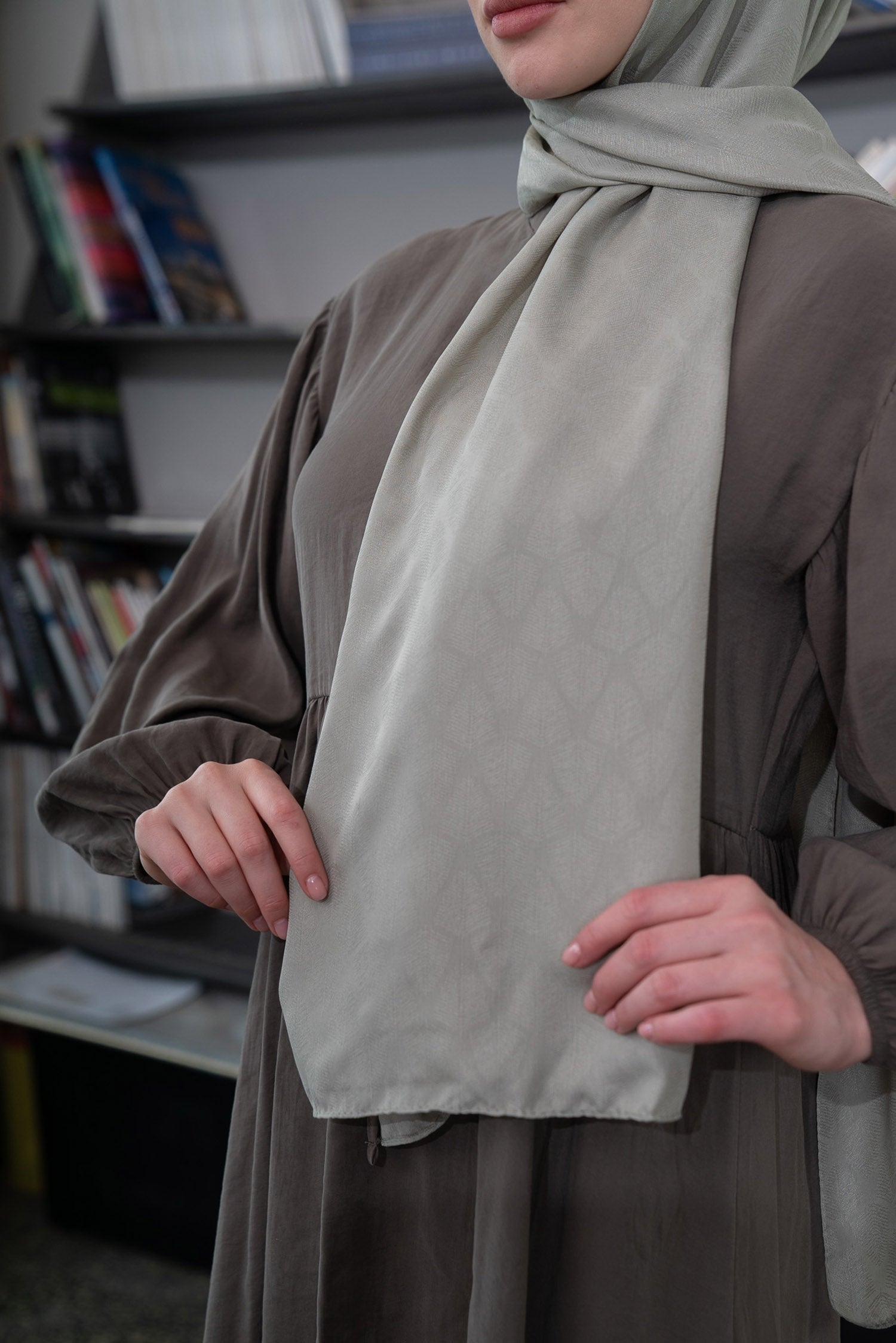 Yaprak Desen İpeksi Jakar Şal Soğuk Yeşil
